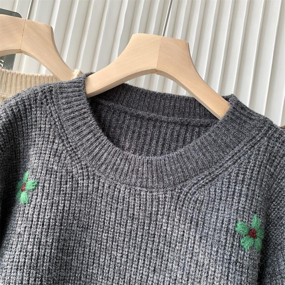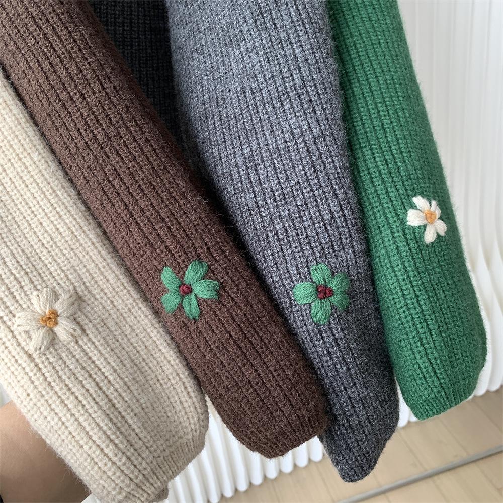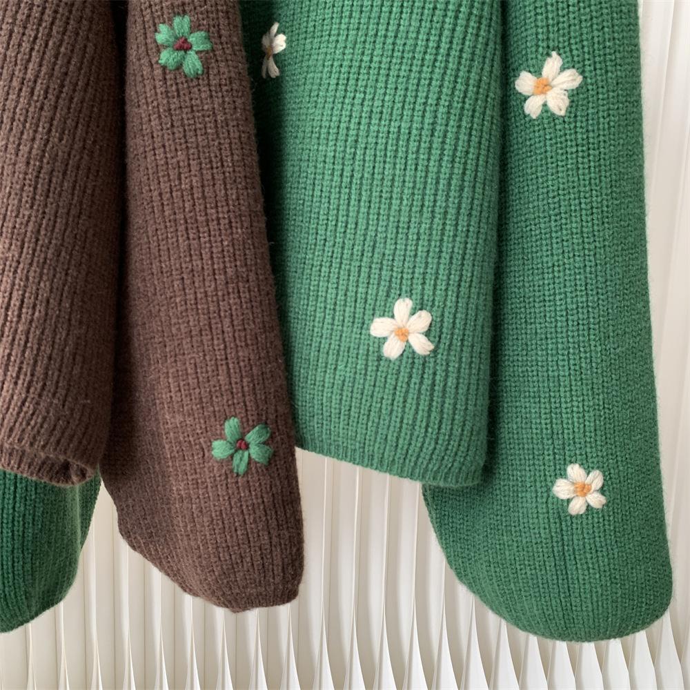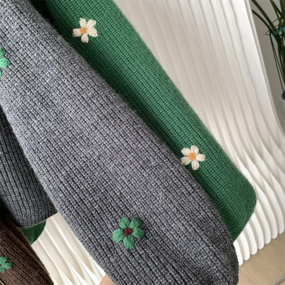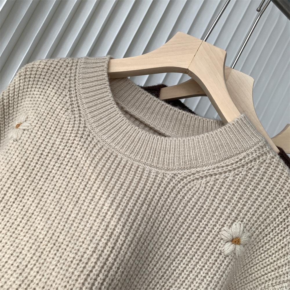 Suéter vintage con bordado de flores para mujer, otoño e invierno 2024, nuevo, holgado, estilo perezoso, suéter de punto de alta gama estilo coreano.