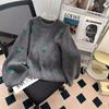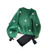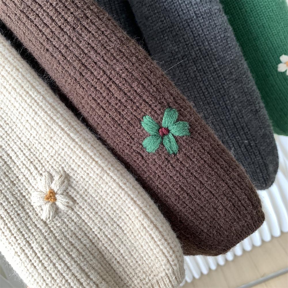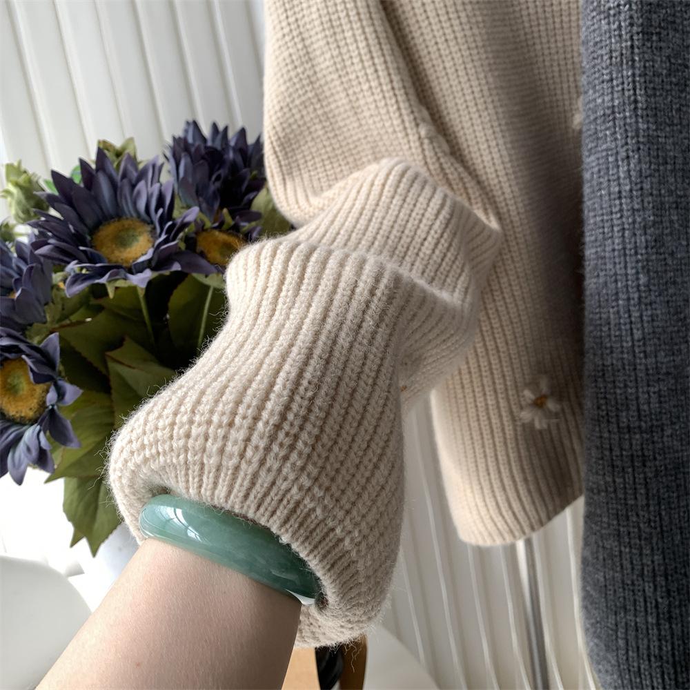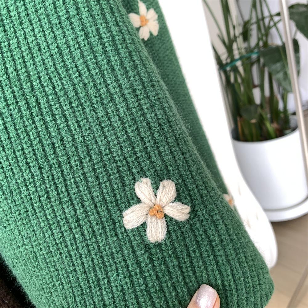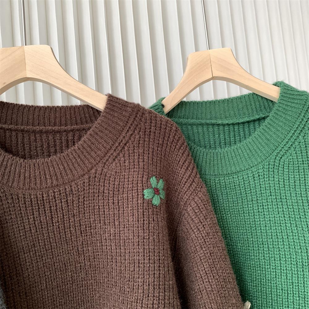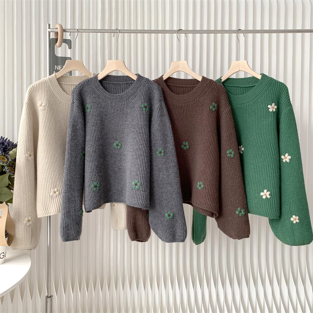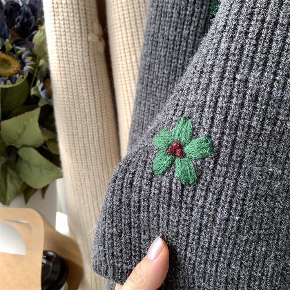 Suéter vintage con bordado de flores para mujer, otoño e invierno 2024, nuevo, holgado, estilo perezoso, suéter de punto de alta gama estilo coreano.