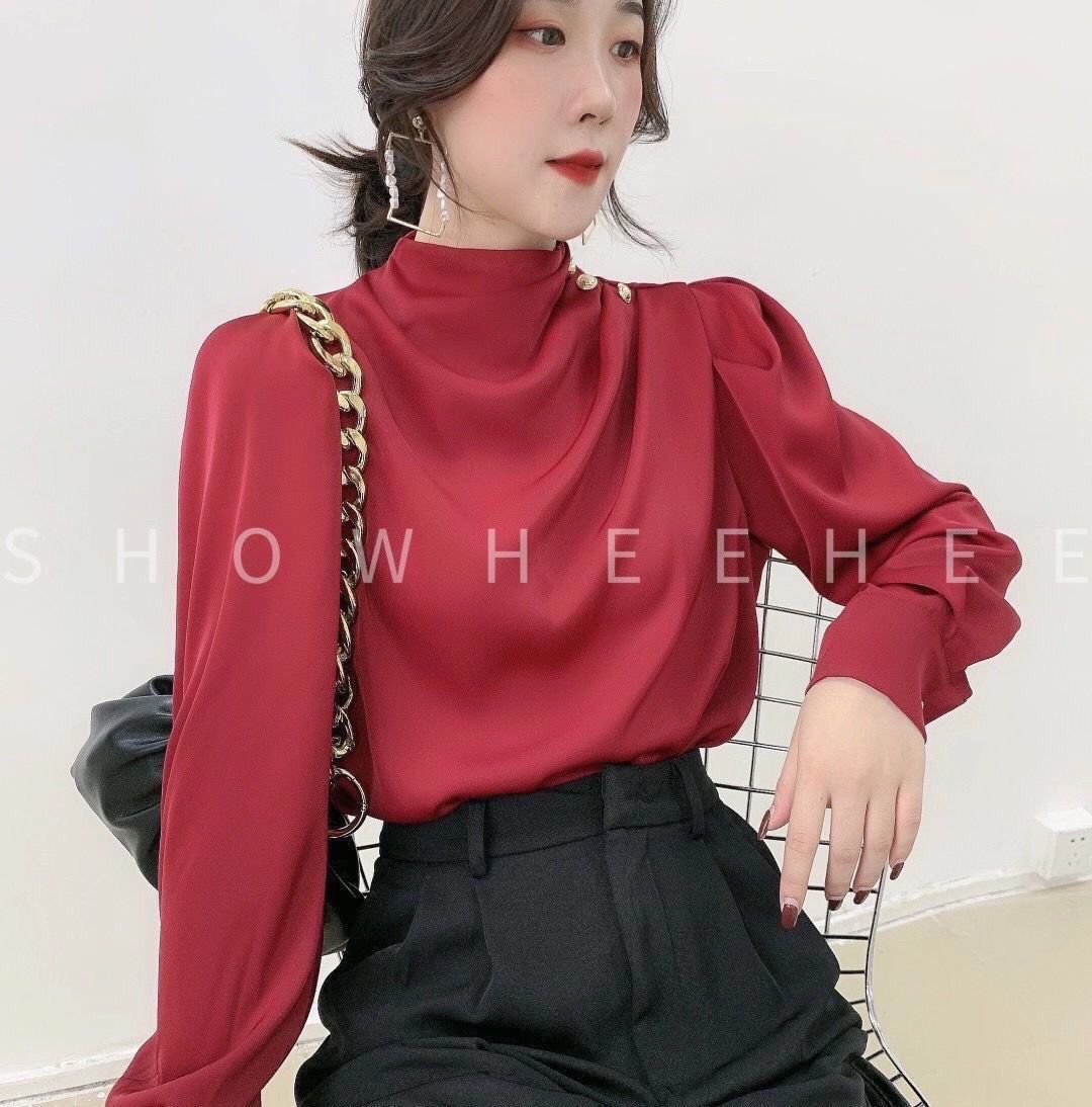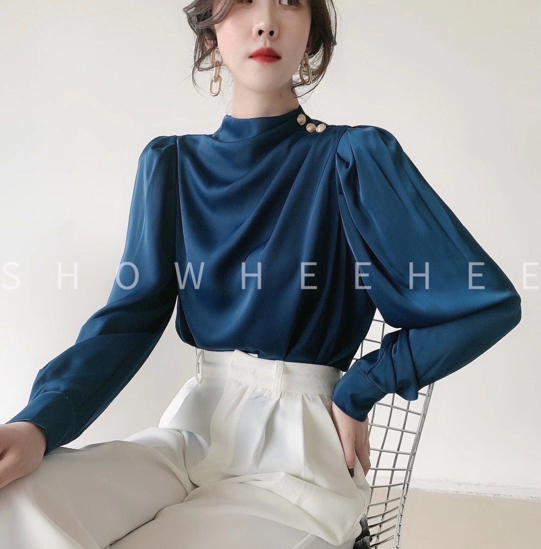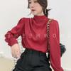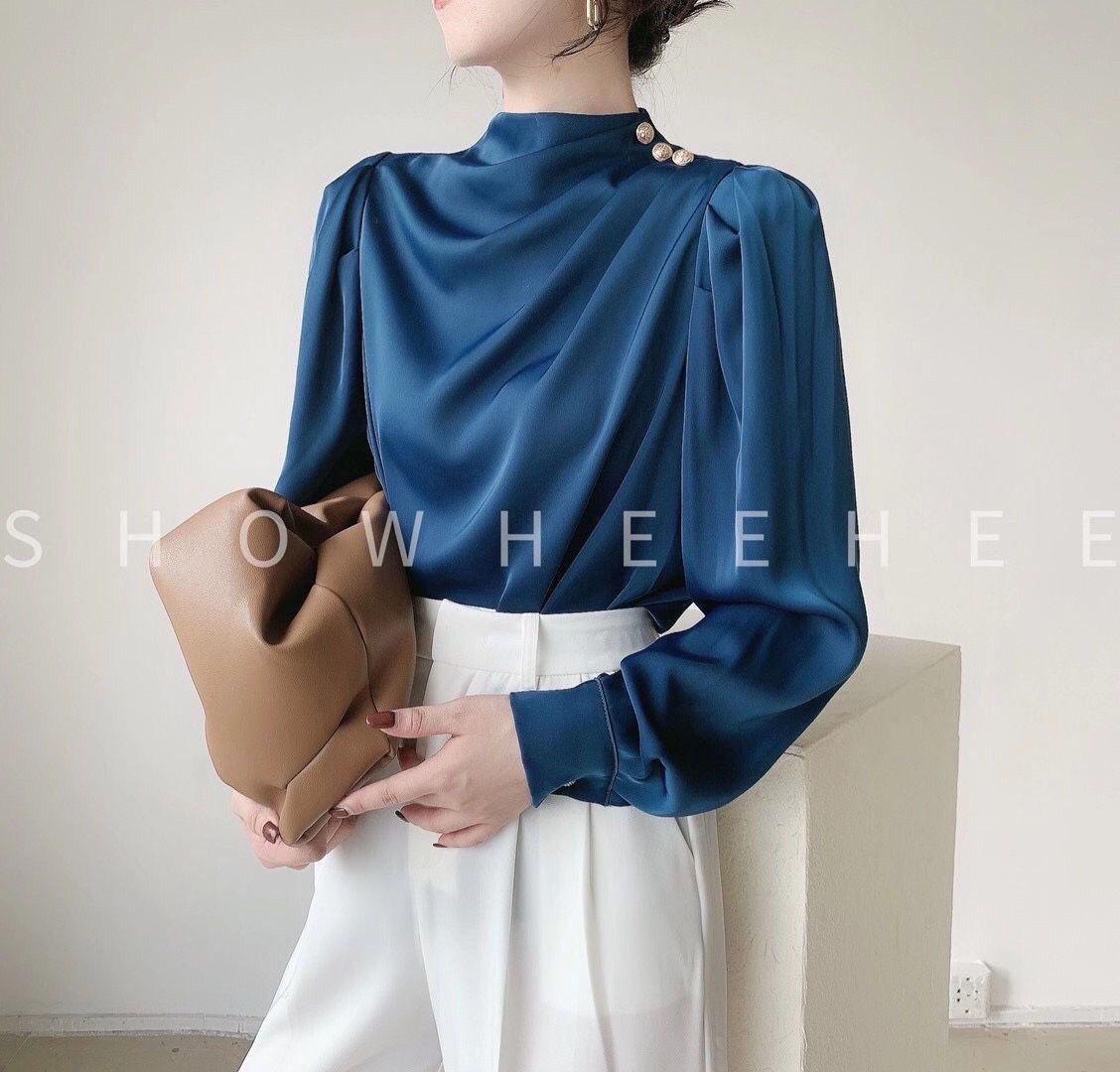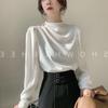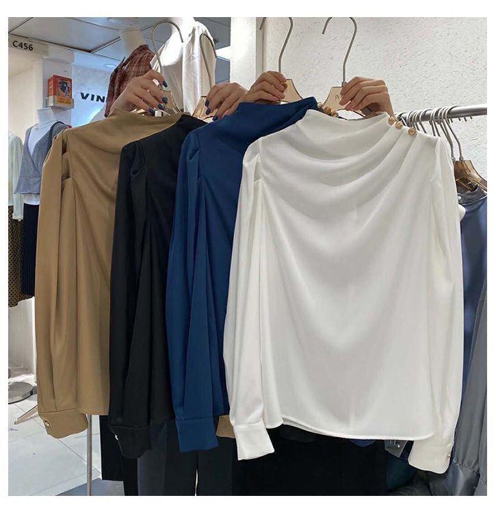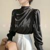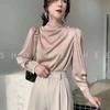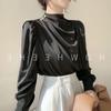 Camisa de mujer con diseño de nicho, estilo retro de Hong Kong, satén, acrílico, profesional, elegante, a la moda, con cuello, para otoño.
