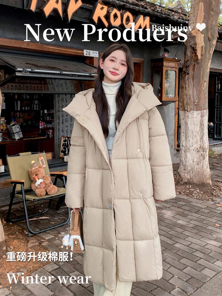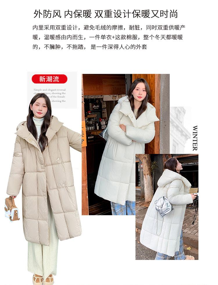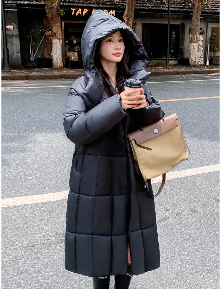 Chaqueta al por mayor acolchada de algodón para mujer con capucha otoño e invierno 2024 nueva moda abrigo largo acolchado de algodón chaqueta acolchada de algodón holgada abrigo pan