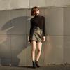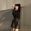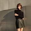 MisswAwA DAnA [ins Modelo Trendy]. Falda de Cintura con Capullo de Flor] Otoño E Invierno Look Adelgazante Cintura Alta Falda de Cuero Falda Línea A Falda de Cadera