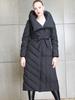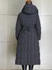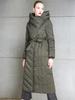 Chaqueta Elegante de Plumón para Mujer Larga Ajustada Adelgazante Invierno Engrosada Diseño Irregular Cierre con Cremallera Capucha Plumón de Pato Blanco