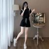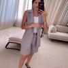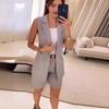 Conjunto de dos piezas de moda informal de verano 2024 para mujer, color sólido, sin mangas, con solapa y pantalones cortos elegantes.