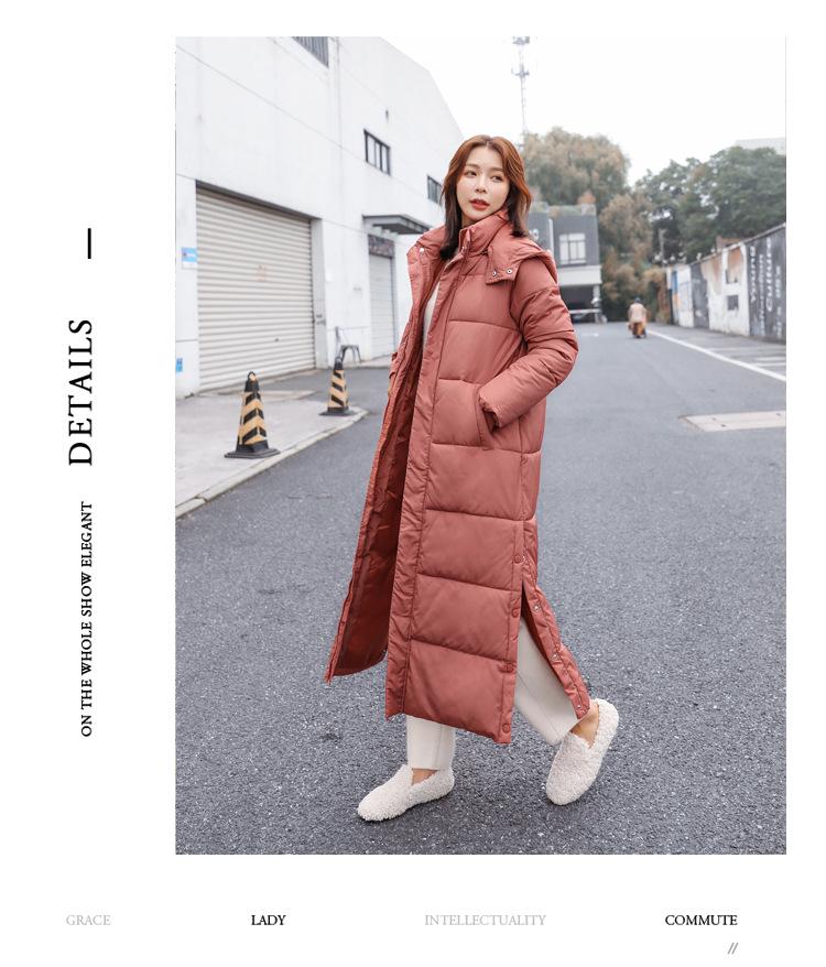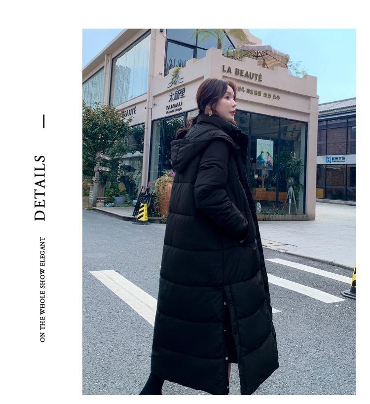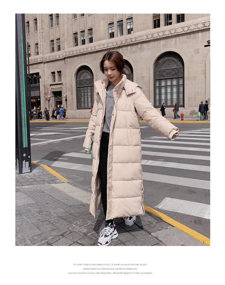 Abrigo largo acolchado de algodón por encima de la rodilla para mujer, invierno 2022, nuevo abrigo acolchado de algodón grueso con capucha desmontable y corte ajustado de moda de estilo coreano