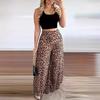 Ropa de Verano para Mujer Europea y Americana 2024 Chaleco Corto de Moda Estampado de Leopardo Casual Cintura Elástica Suelta Pantalón de Pierna Ancha Traje
