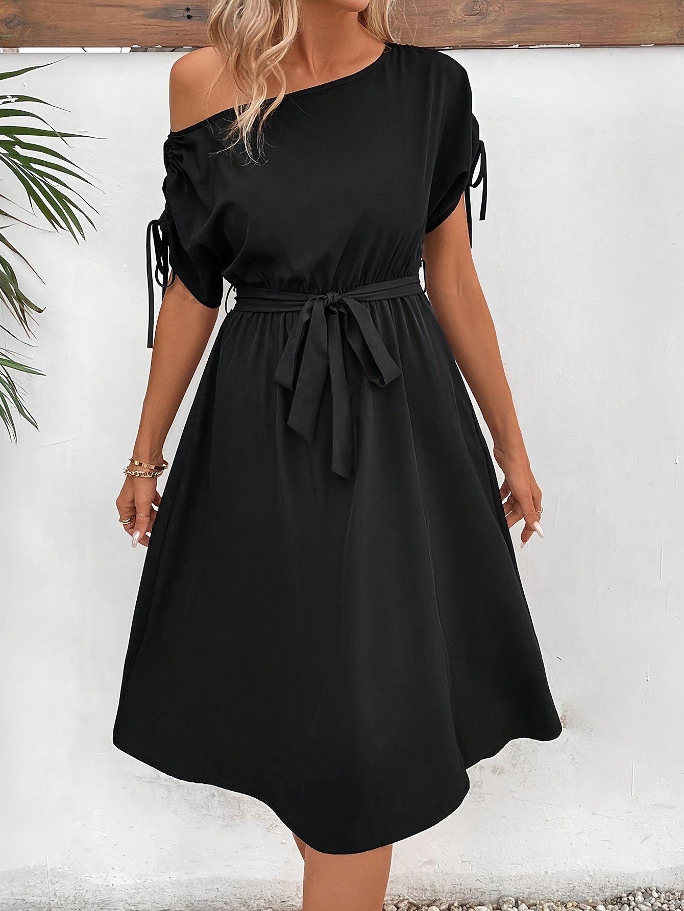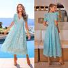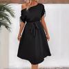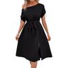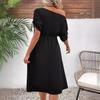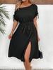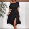 5081 en stock fuente de mercancías de comercio exterior vestido elegante de moda de color sólido de manga corta para mujer de primavera y verano
