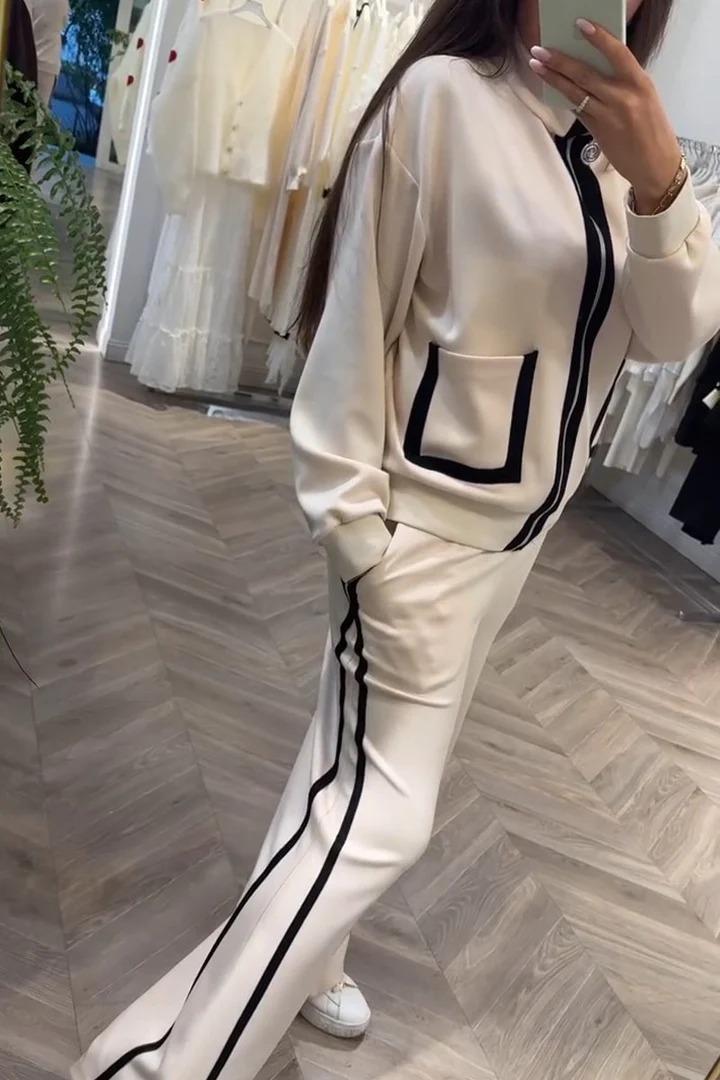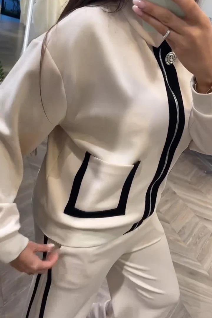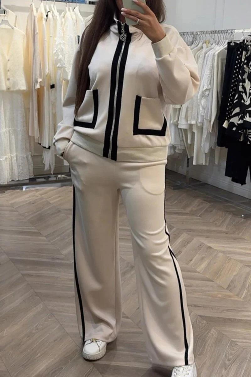 2024 primavera y otoño nuevo traje de comercio exterior de Amazon, pantalones casuales de moda a juego con las piernas, estilo occidental, cremallera de dos piezas para mujer