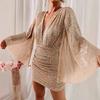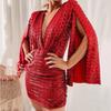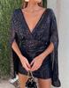 2025 Nuevo Otoño Europeo y Americano Sexy Cuello en V Cubre Caderas Falda Corta Asimétrica Vestido de Lentejuelas