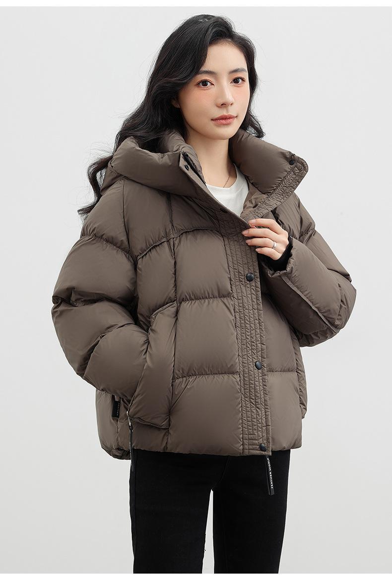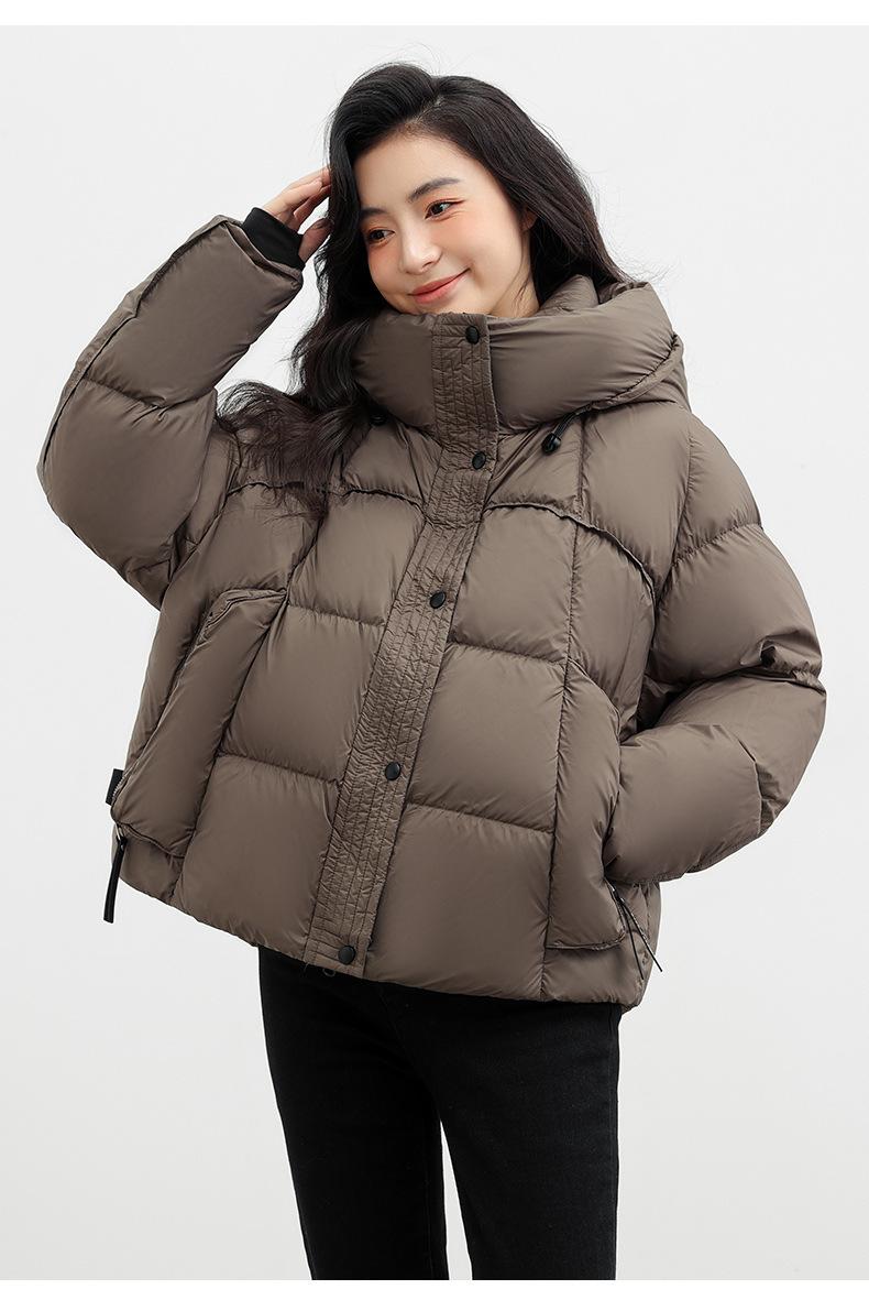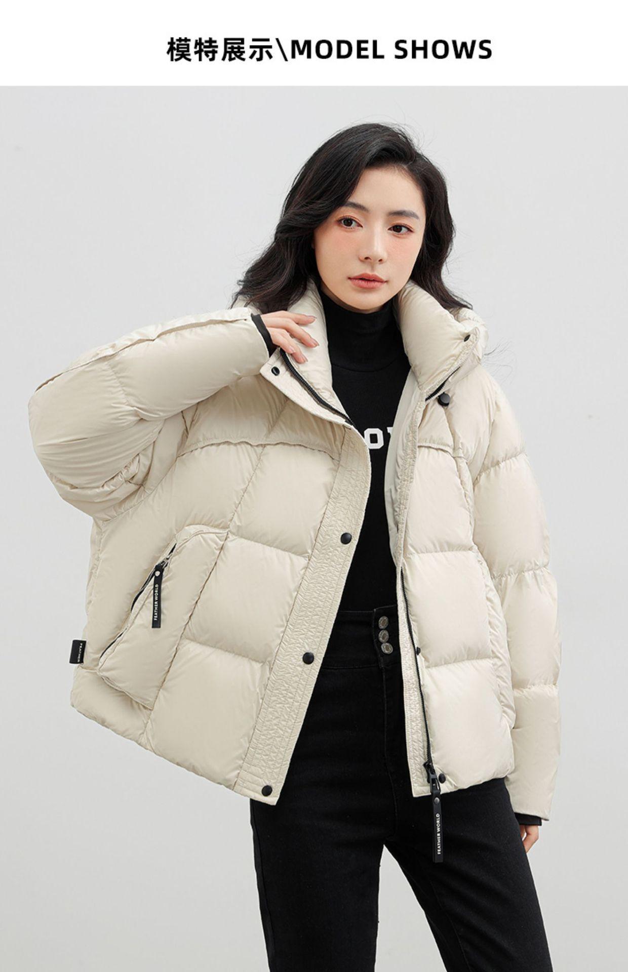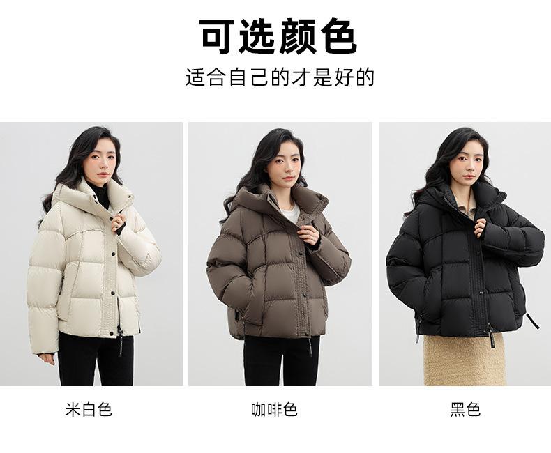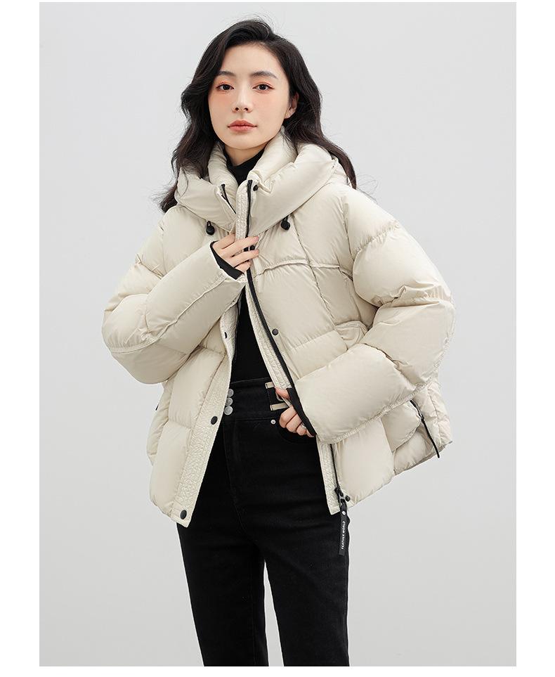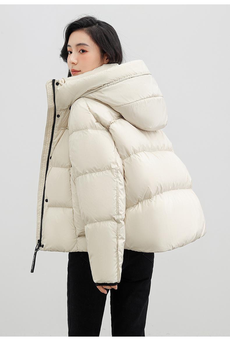 Nuevo Plumífero Corto para Mujer Otoño e Invierno Transfronterizo Plumón de Pato Blanco con Capucha Suelto Combinable Engrosado Cálido Chaqueta Acolchada Trendy