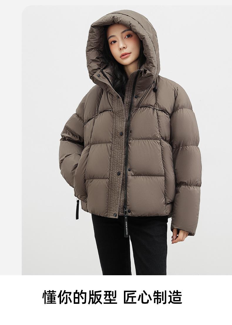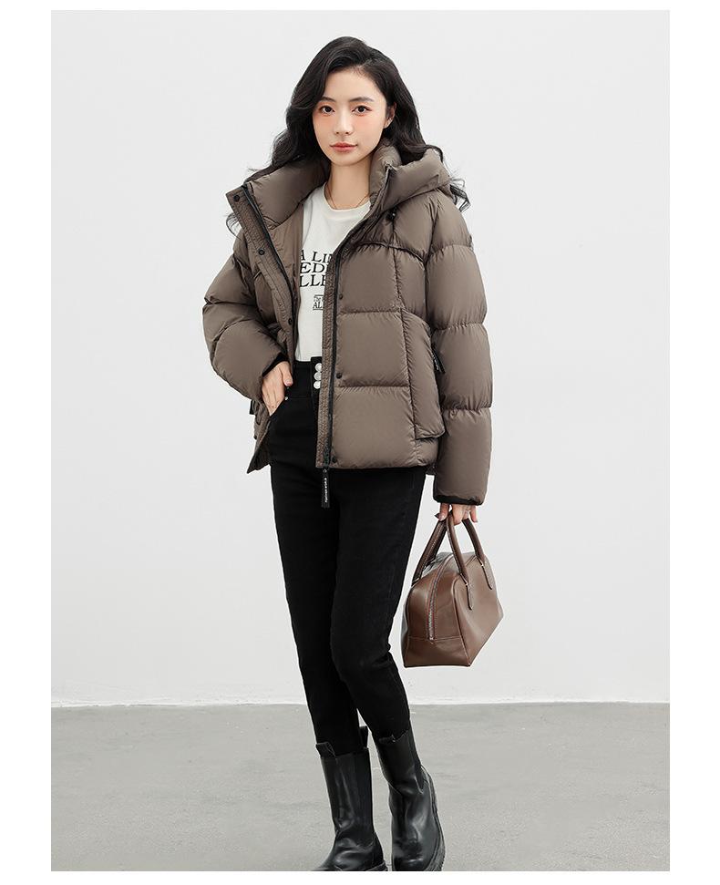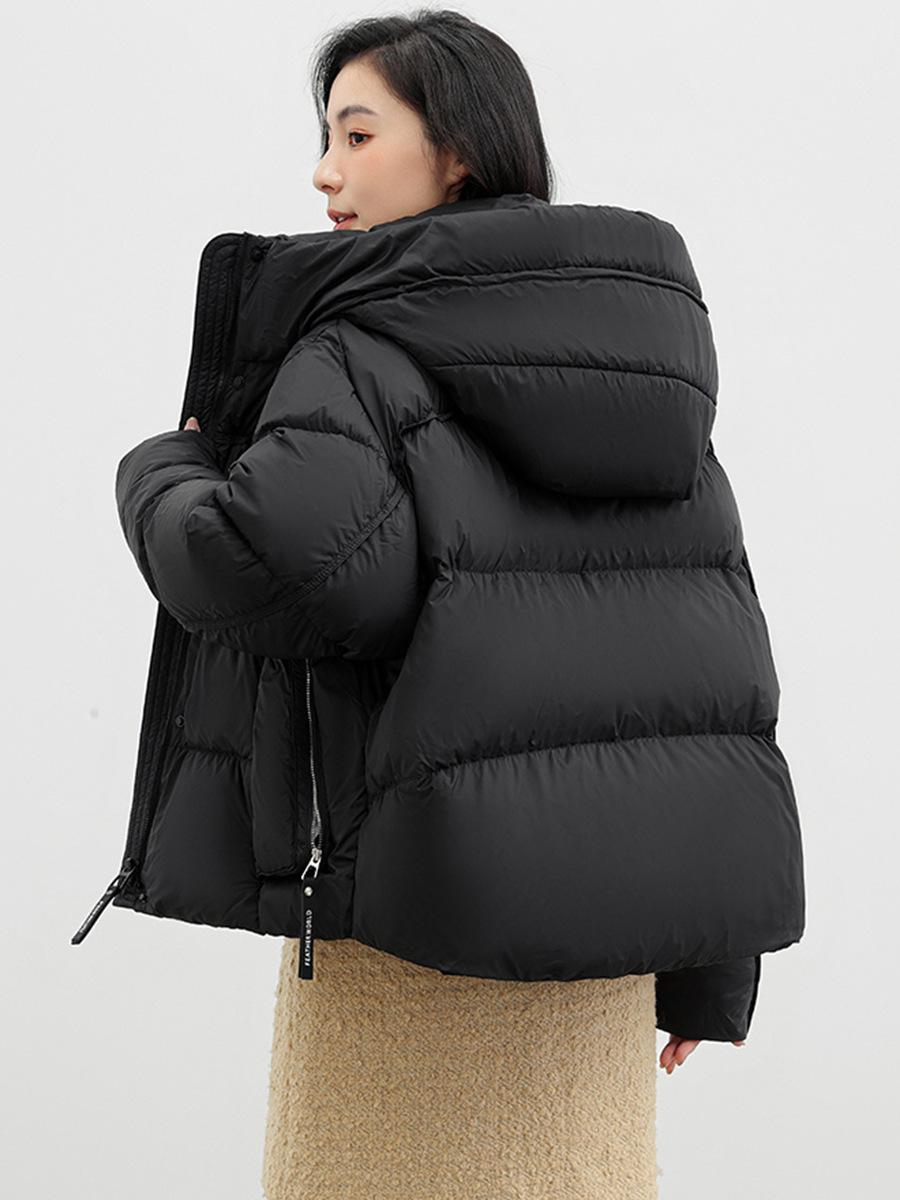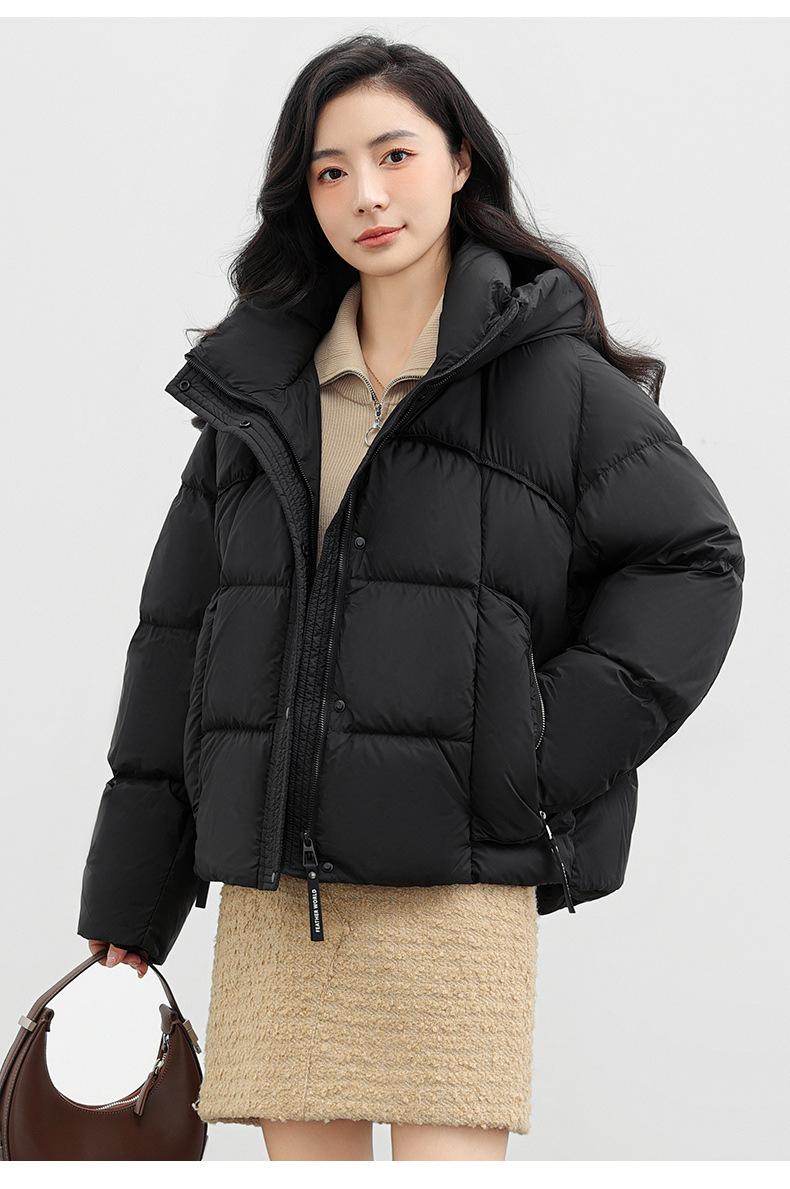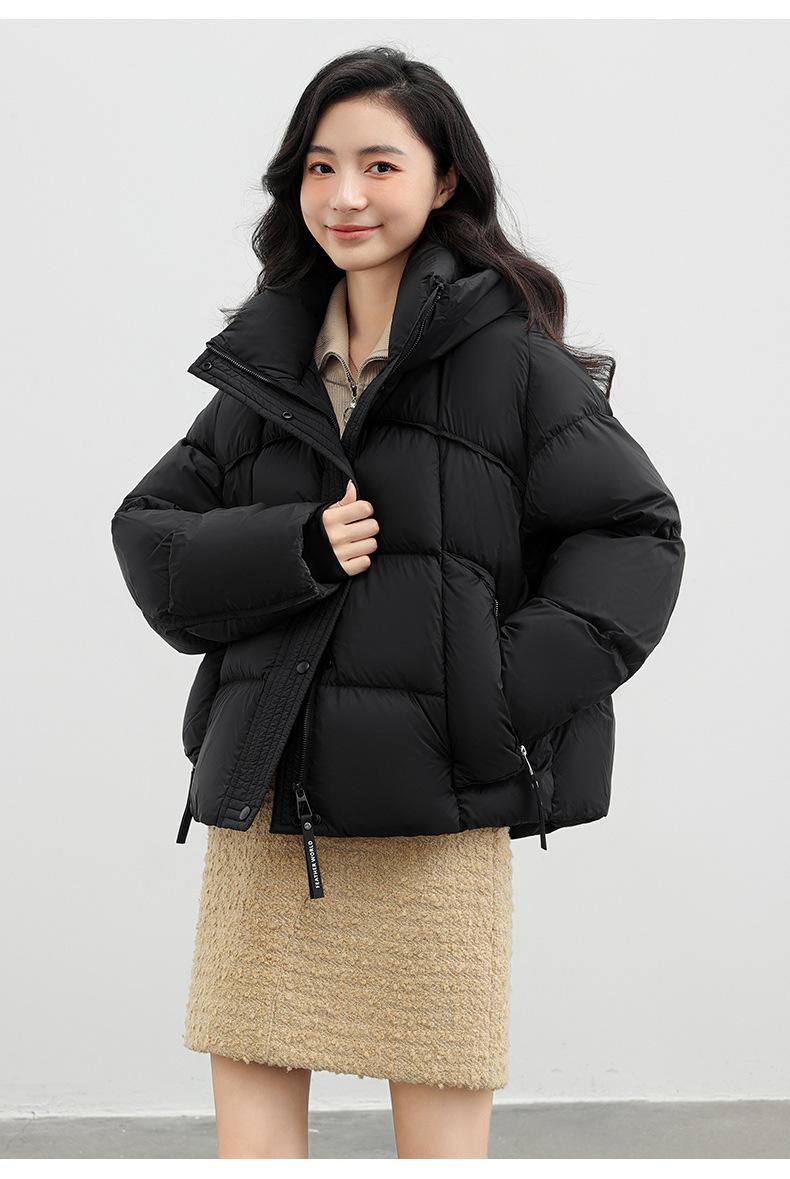Nuevo Plumífero Corto para Mujer Otoño e Invierno Transfronterizo Plumón de Pato Blanco con Capucha Suelto Combinable Engrosado Cálido Chaqueta Acolchada Trendy