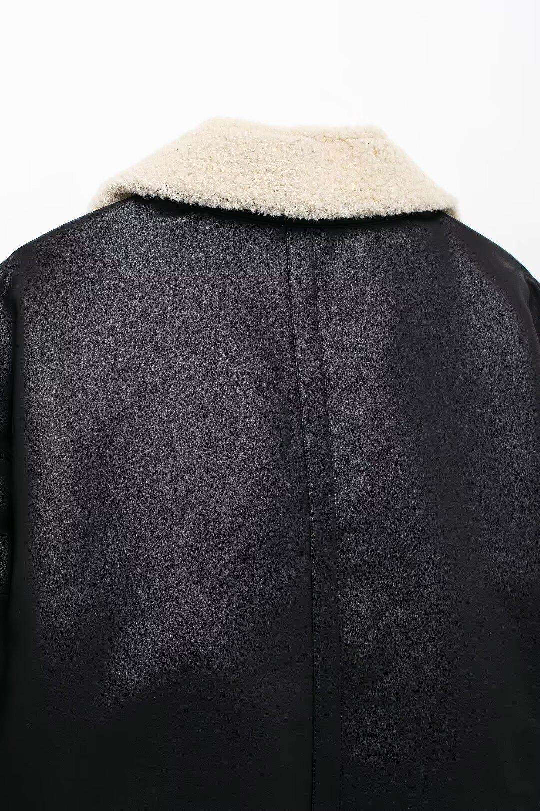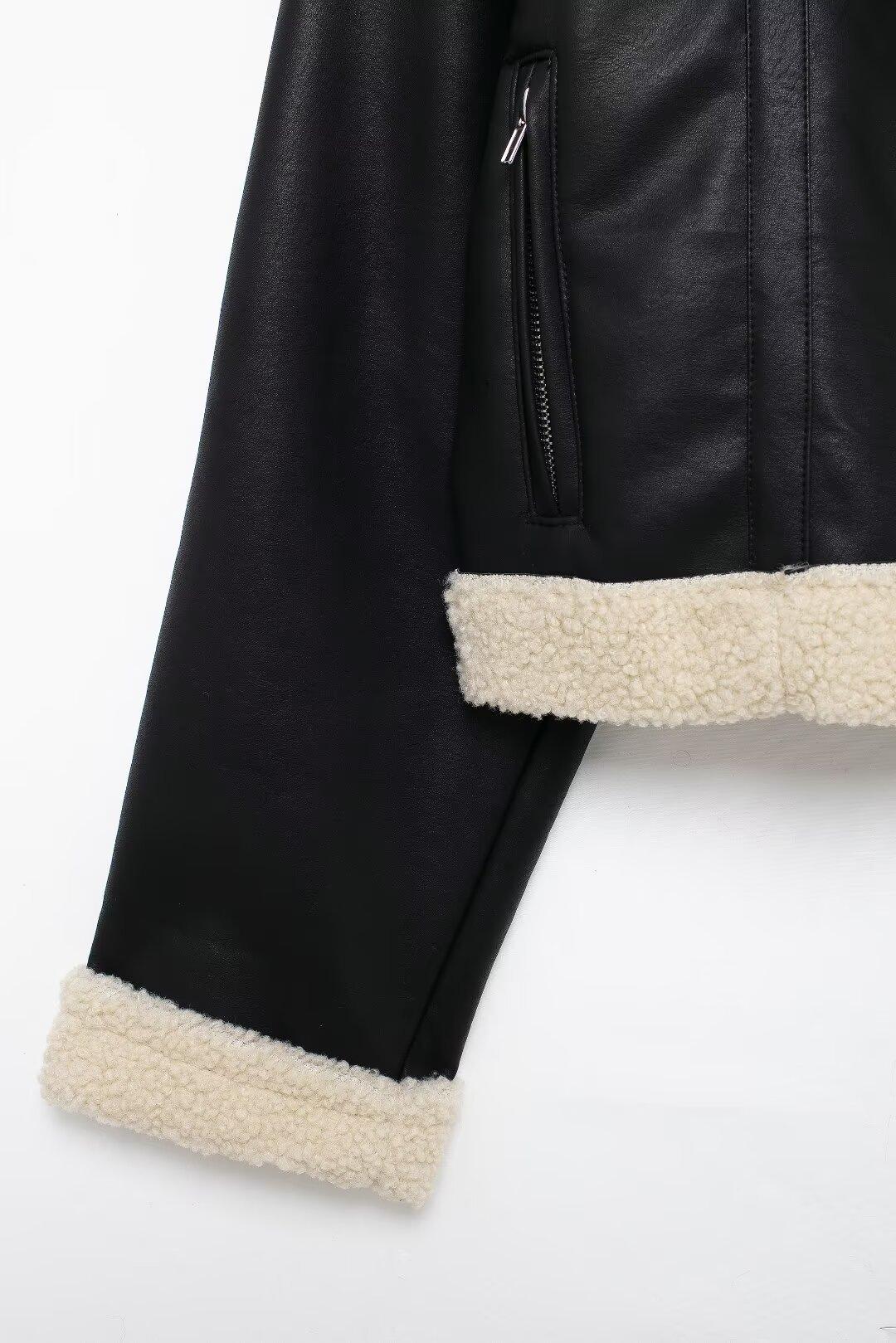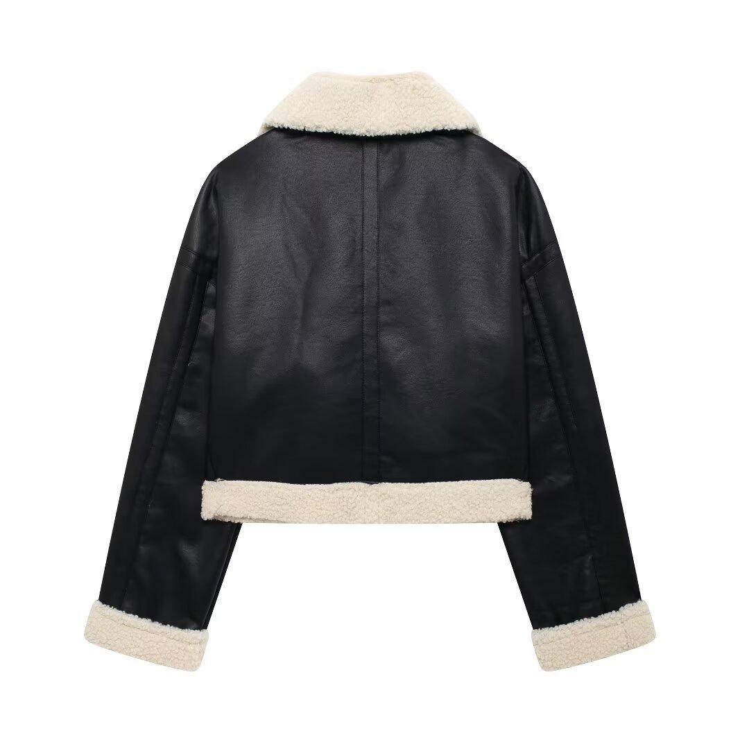 Chaqueta de invierno 2024 con solapa de lana de cordero para mujer, nueva chaqueta de moda con comercio exterior de Europa y Estados Unidos al por mayor