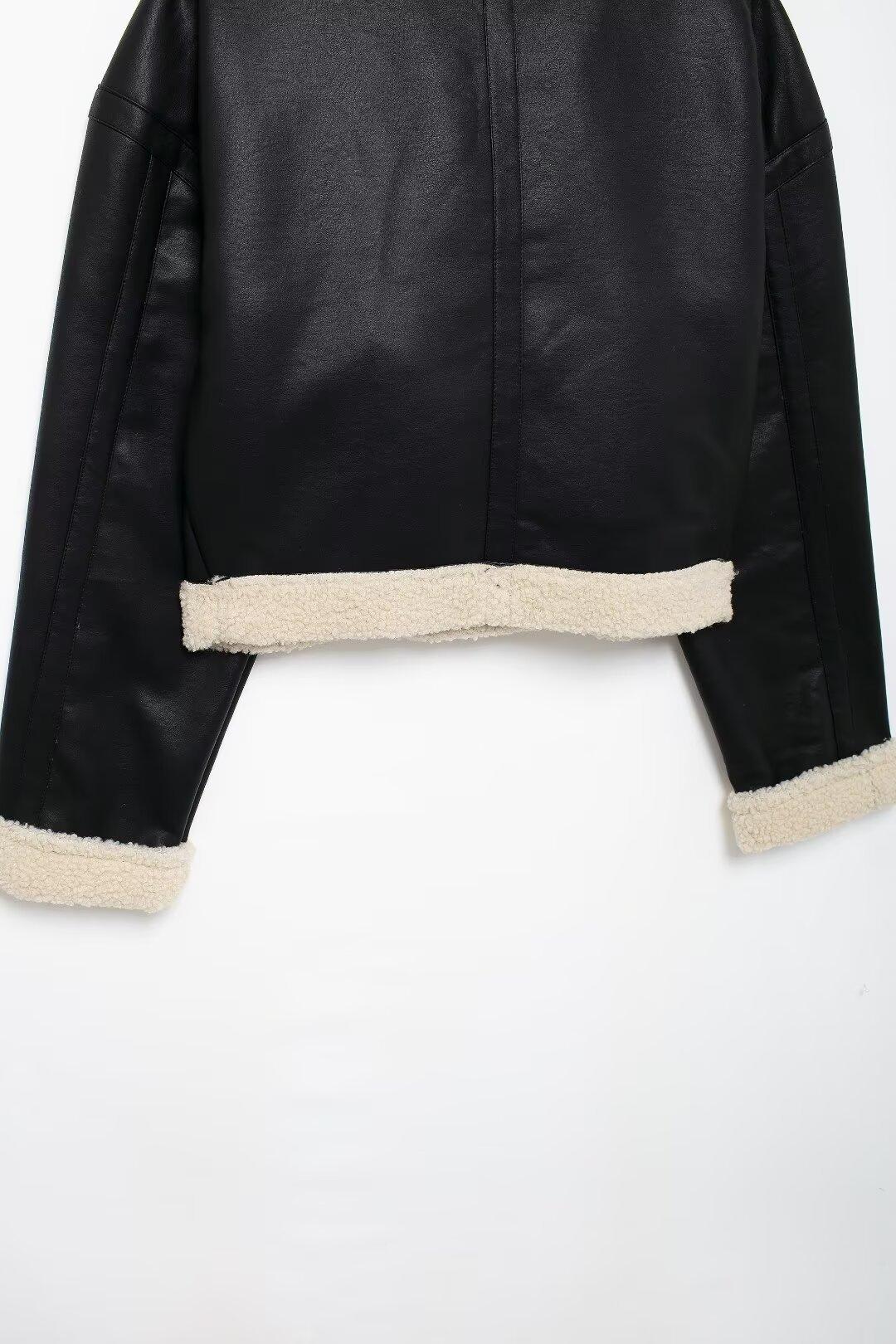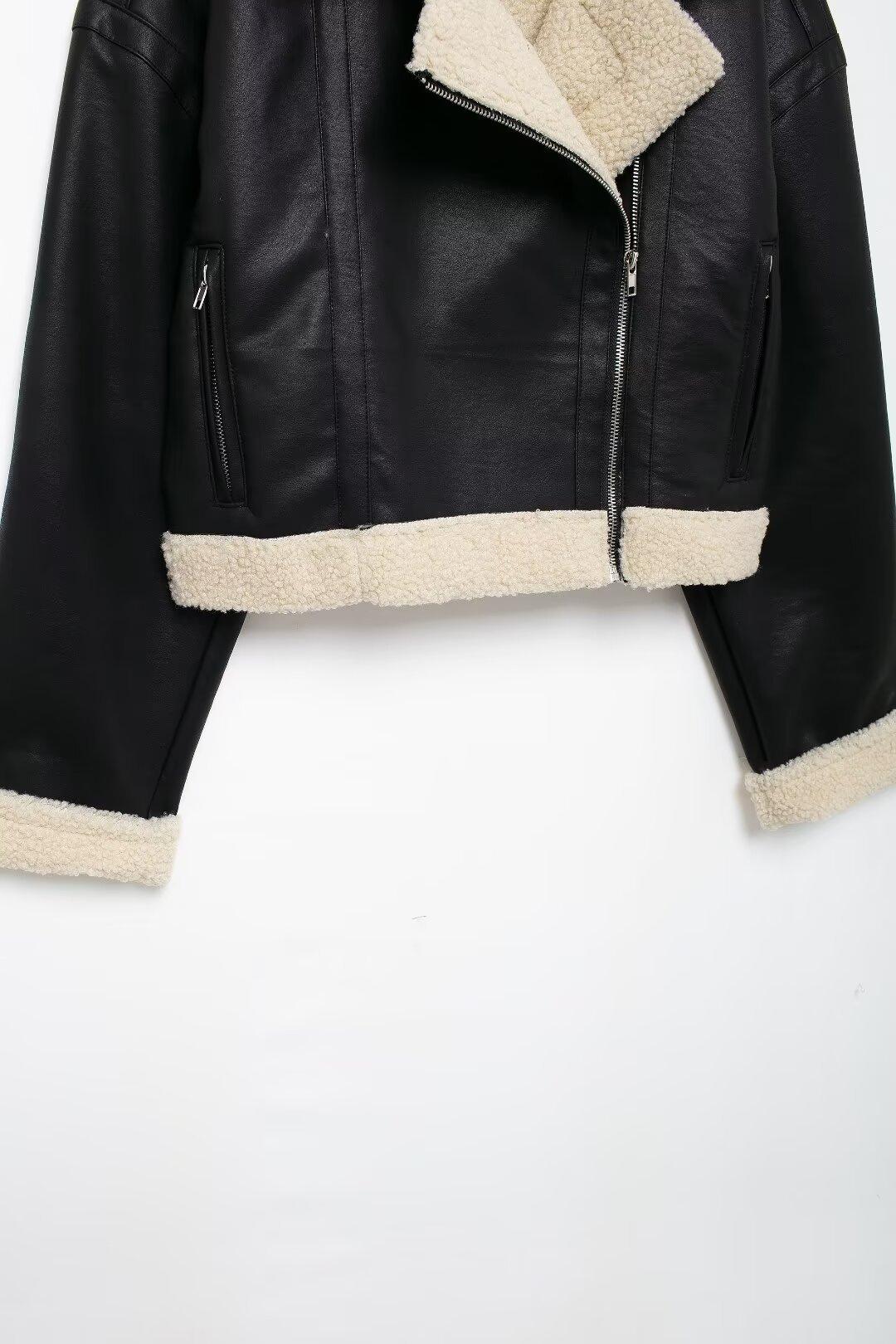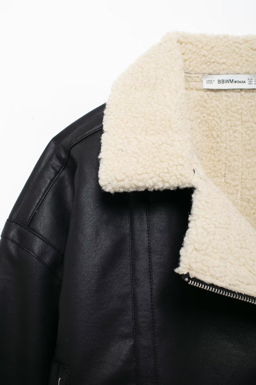 Chaqueta de invierno 2024 con solapa de lana de cordero para mujer, nueva chaqueta de moda con comercio exterior de Europa y Estados Unidos al por mayor