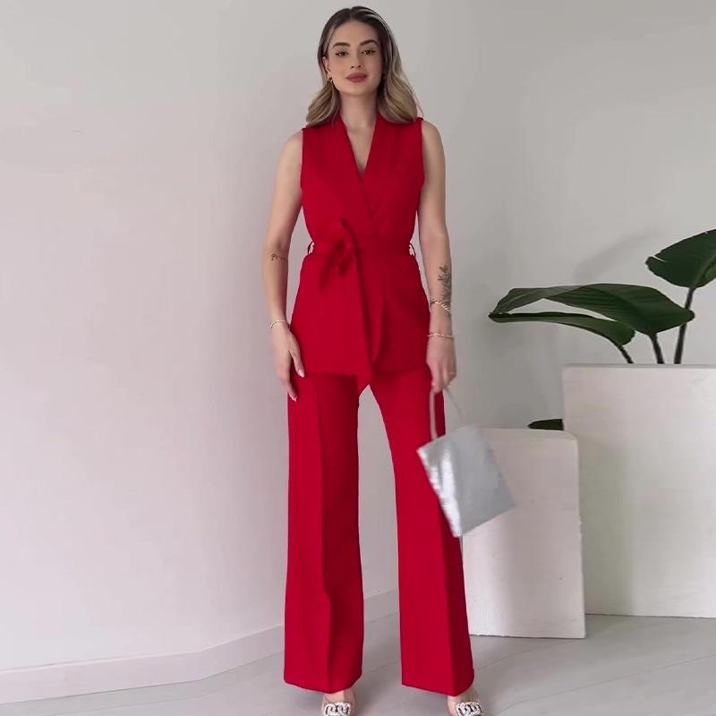 Traje casual de moda transfronteriza de Amazon 2024, chaleco y pantalón para mujer