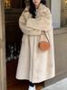 Eco-friendly Imitación de Piel Visón Vellón Largo Suelto Grueso Visón Europeo Traje de una Pieza Cuello Abrigo de Piel para Mujer