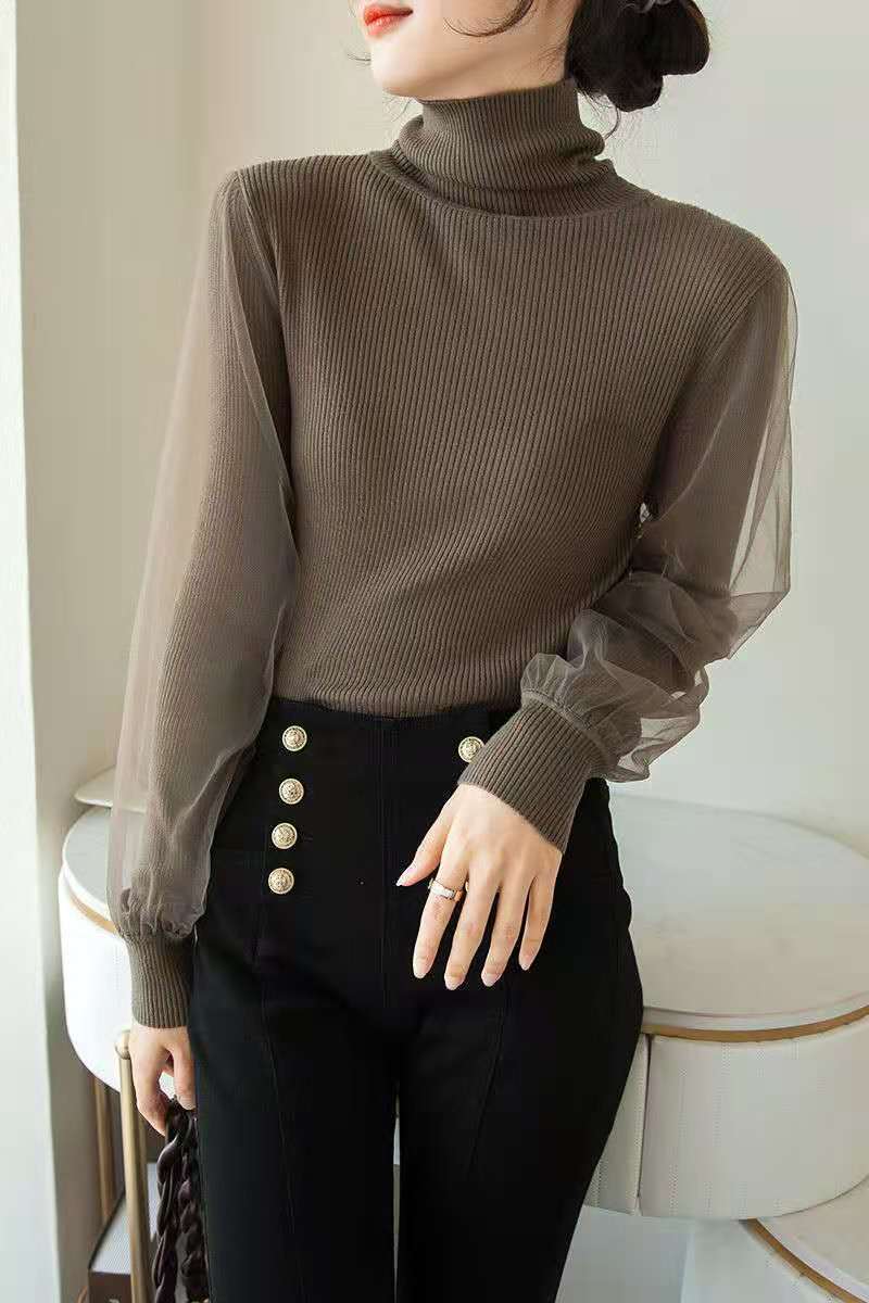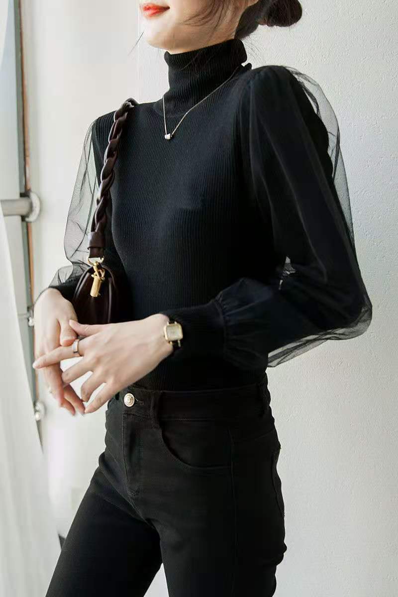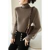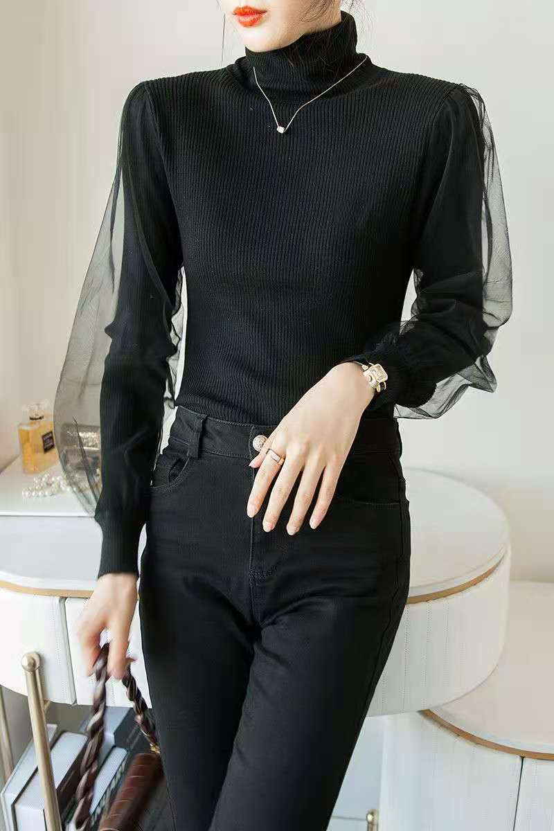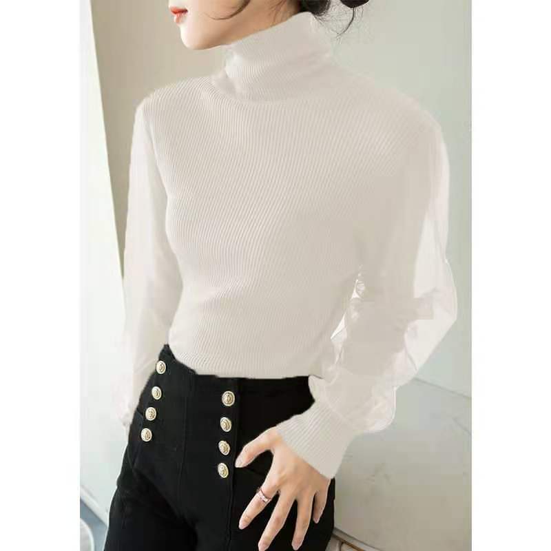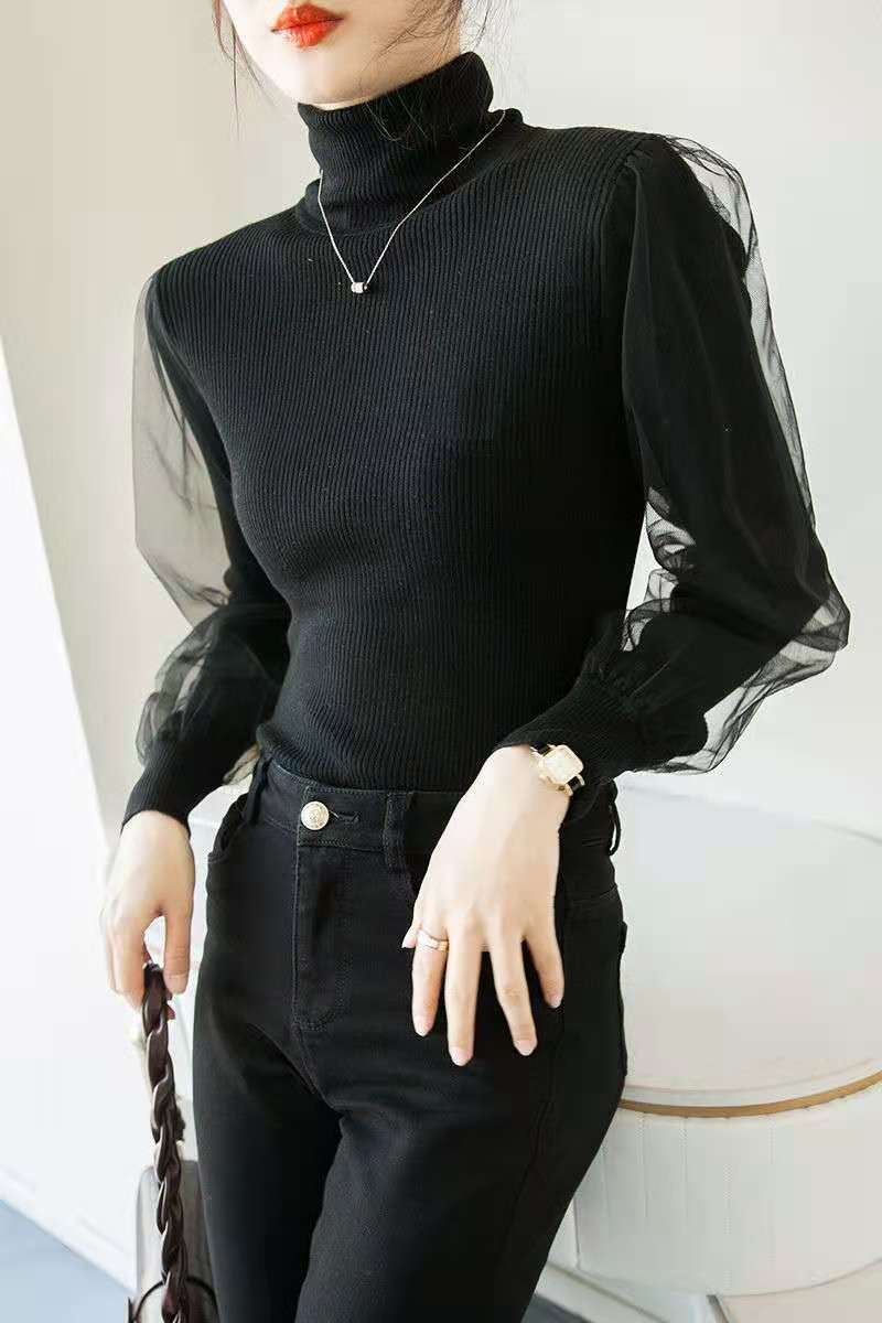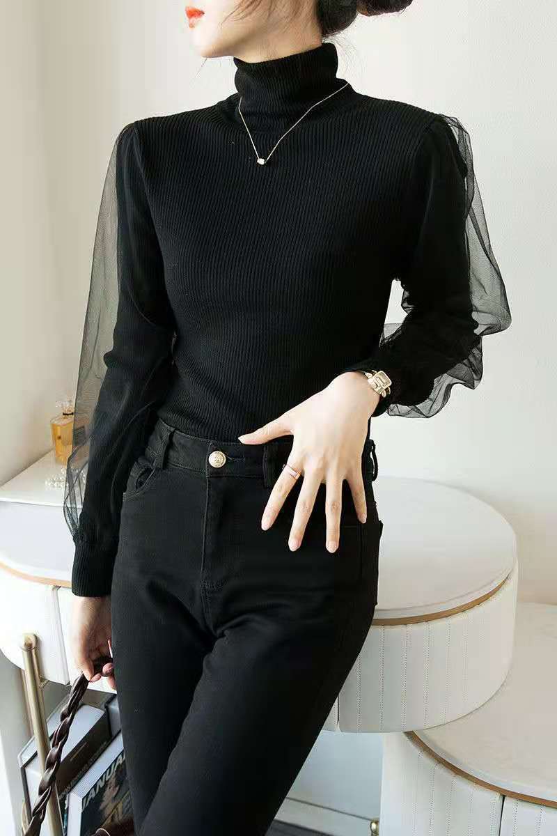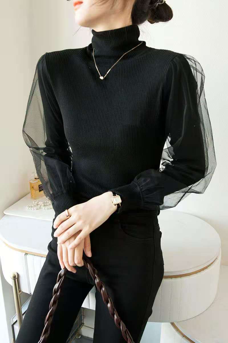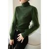 Suéter de cuello alto en stock otoño e invierno encaje malla de alta gama tejido camisa base de invierno para mujer versátil a la moda