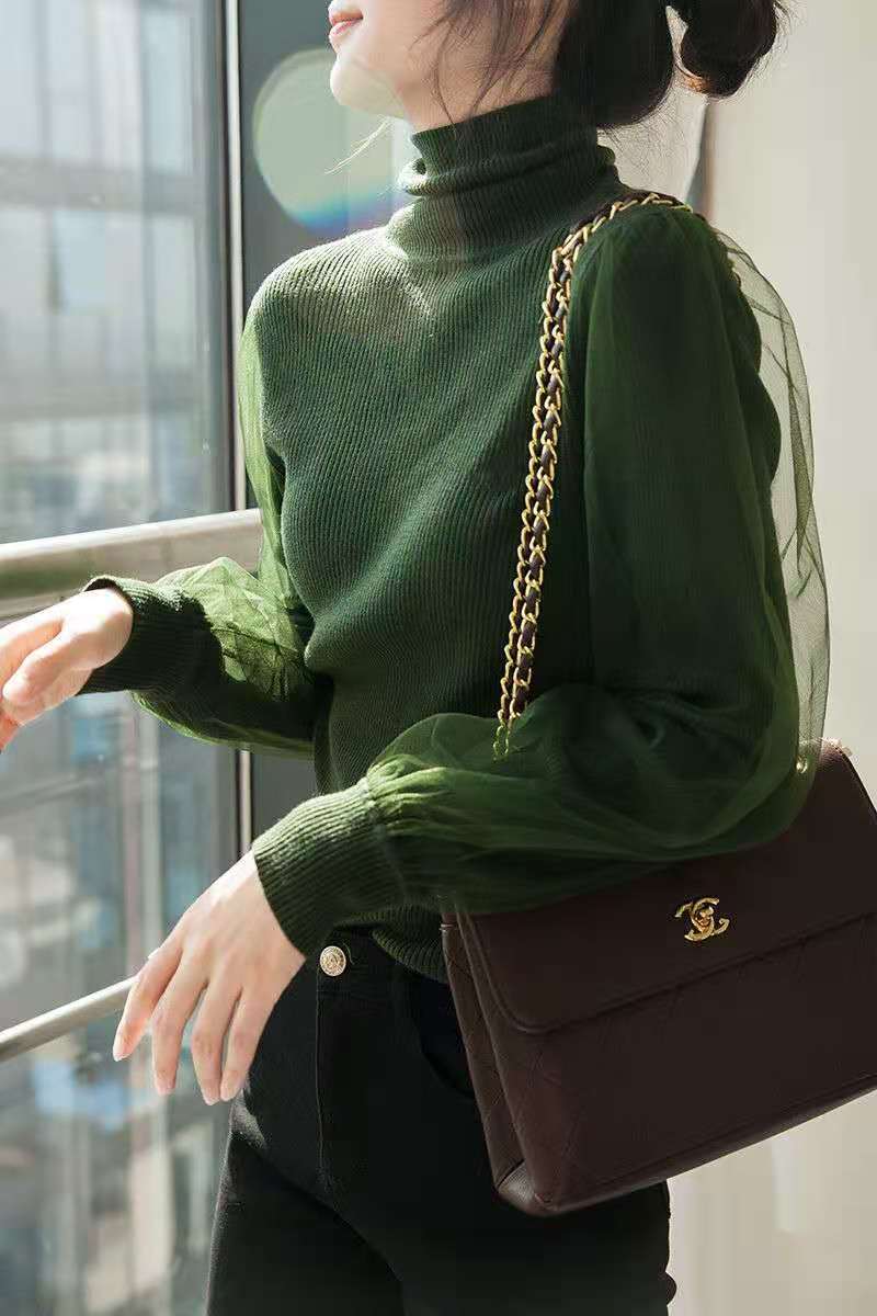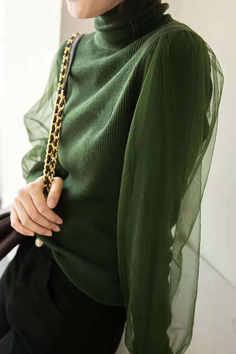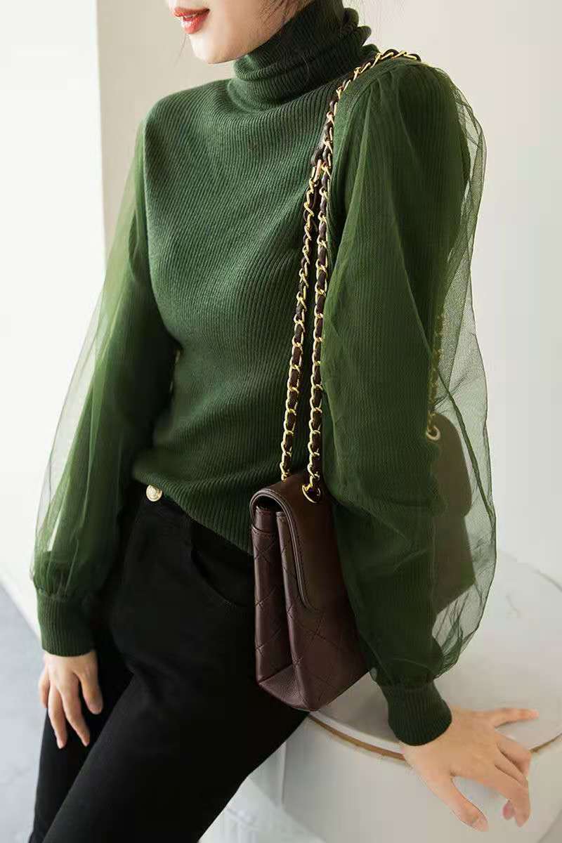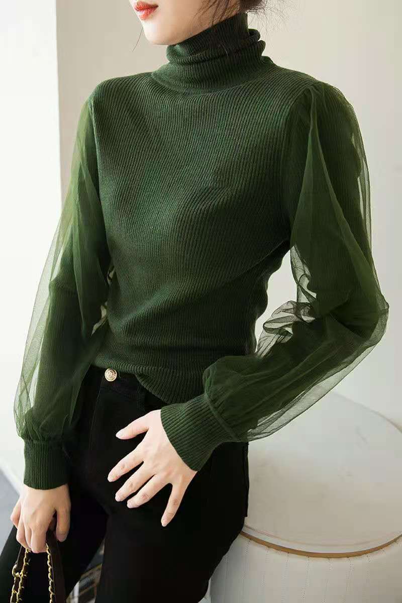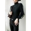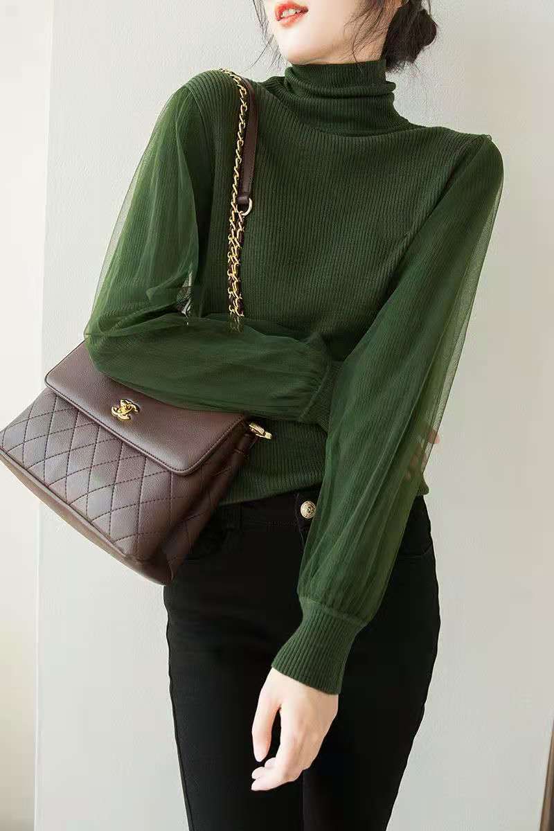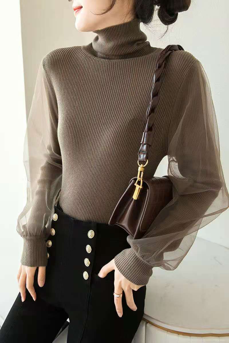 Suéter de cuello alto en stock otoño e invierno encaje malla de alta gama tejido camisa base de invierno para mujer versátil a la moda