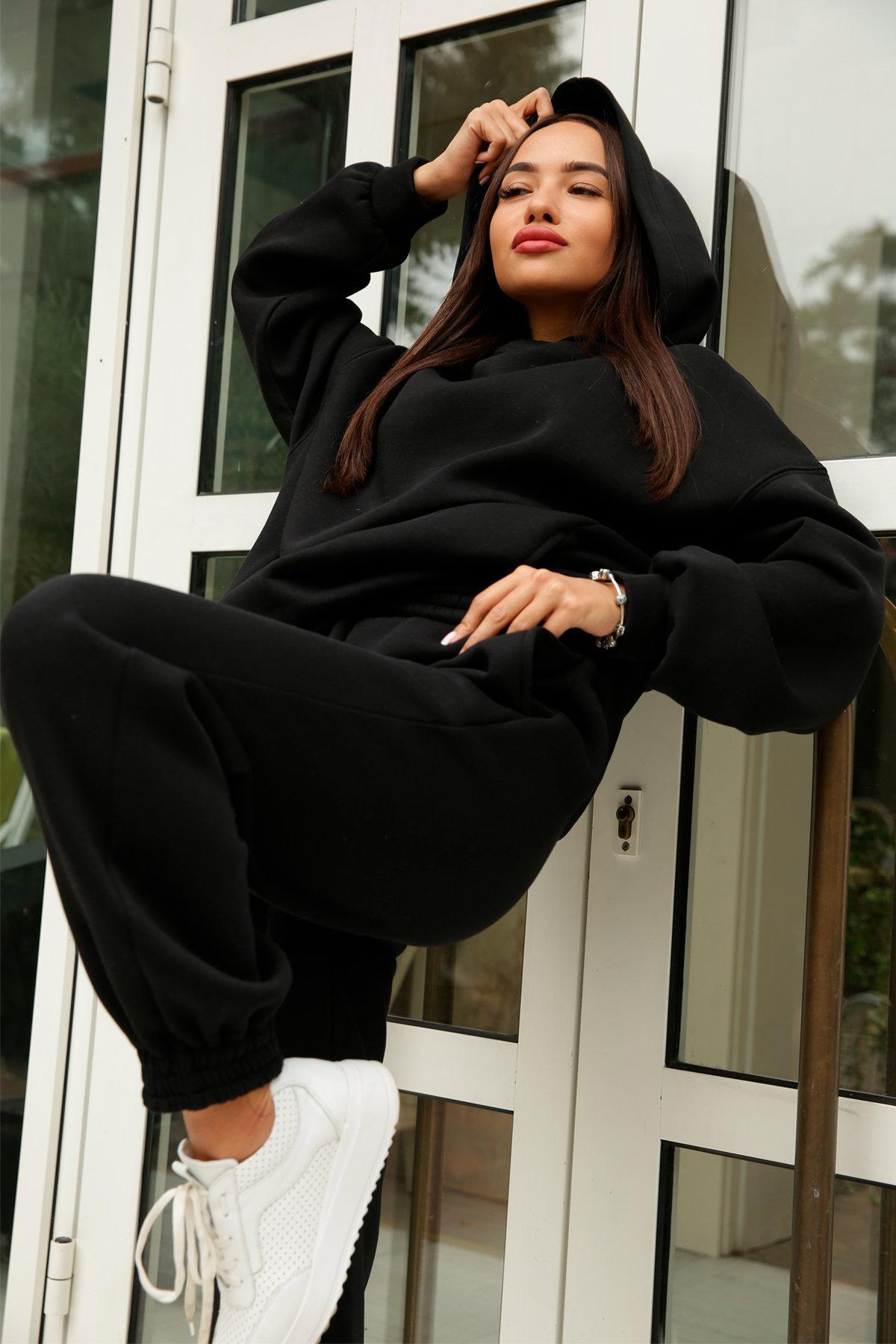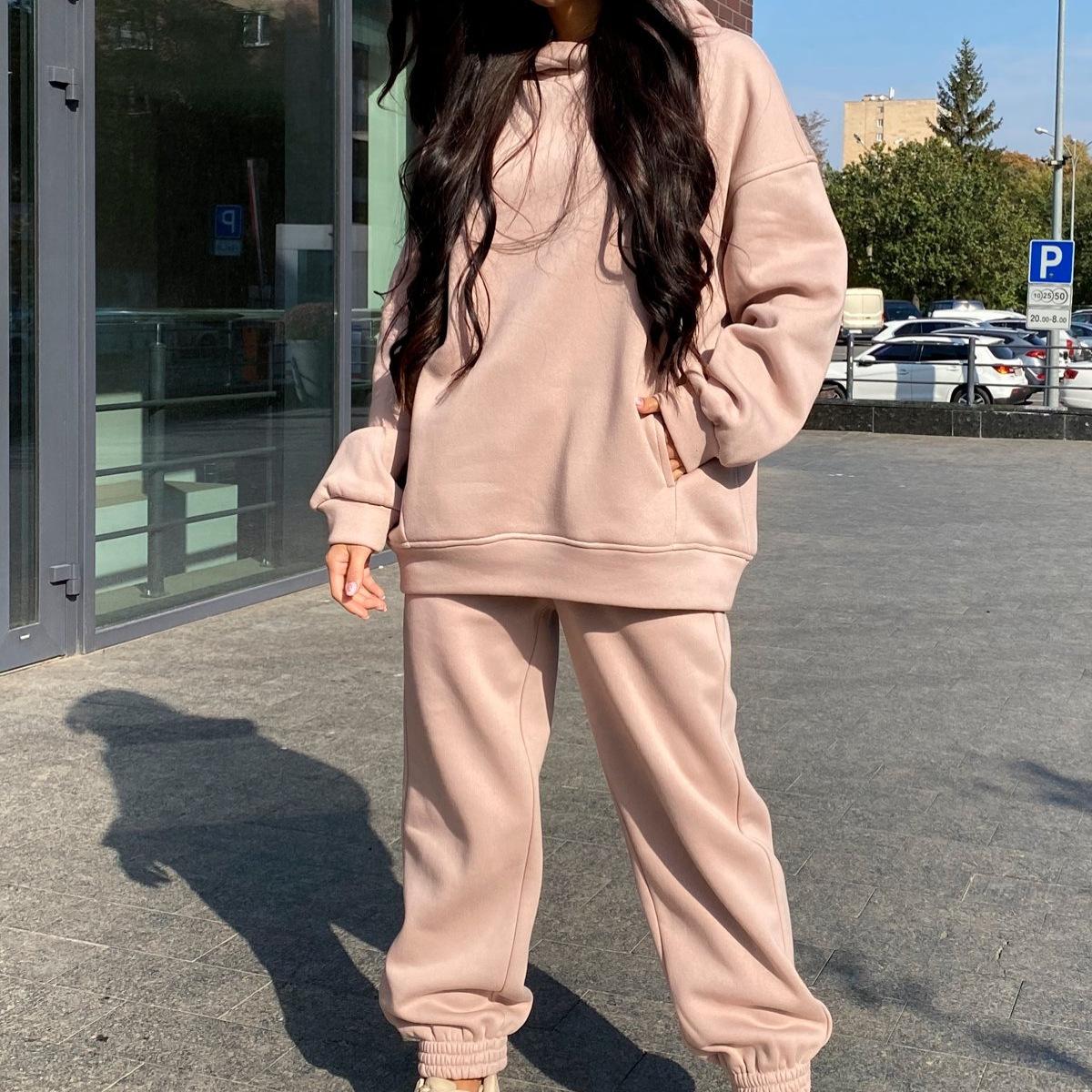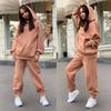 Conjunto de dos piezas de sudadera con capucha casual de moda para mujer, nuevo para otoño e invierno 2025, Amazon Europeo y Americano Transfronterizo, color puro.