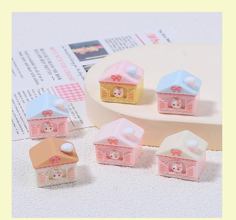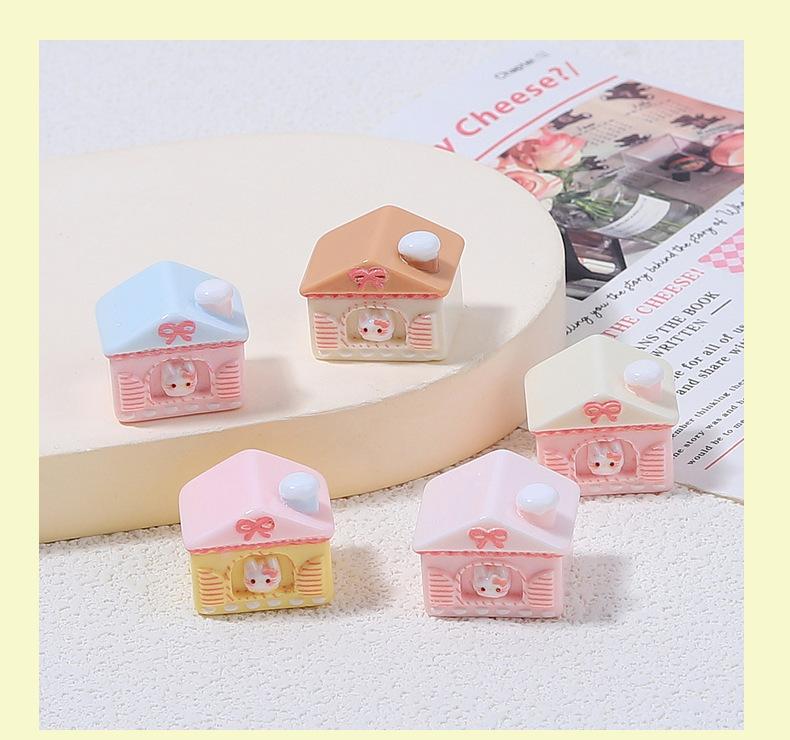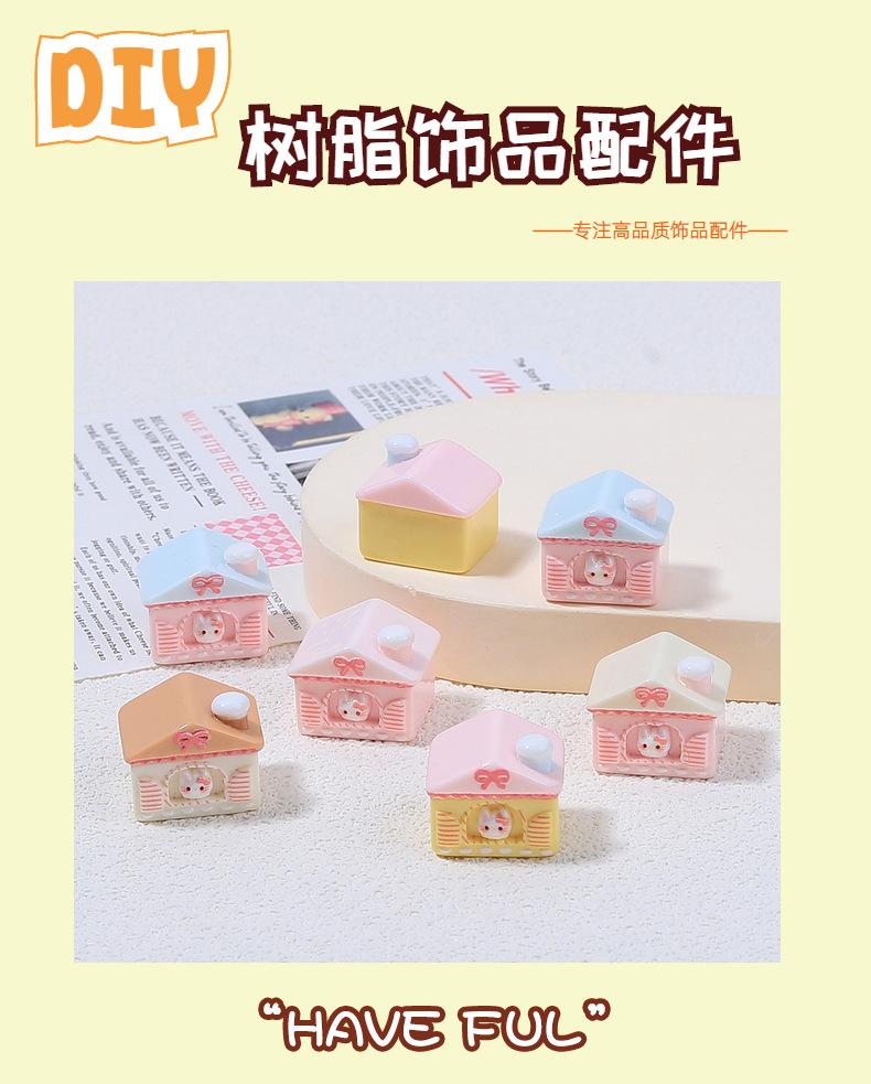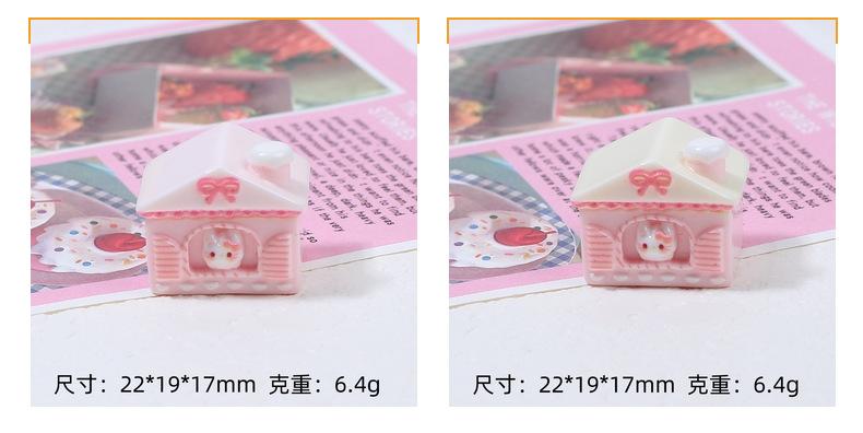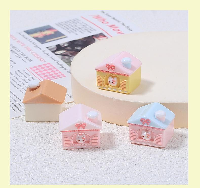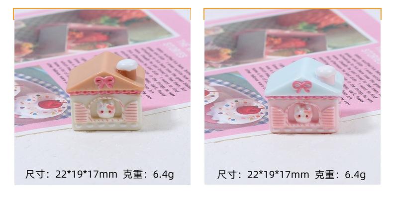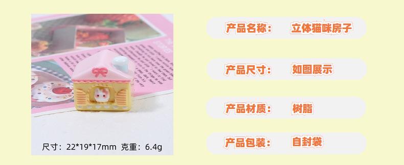 Casa de gato tridimensional de dibujos animados hecha a mano, bonitos adornos pequeños, accesorios de goma color crema, accesorios de resina, materiales de joyería