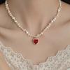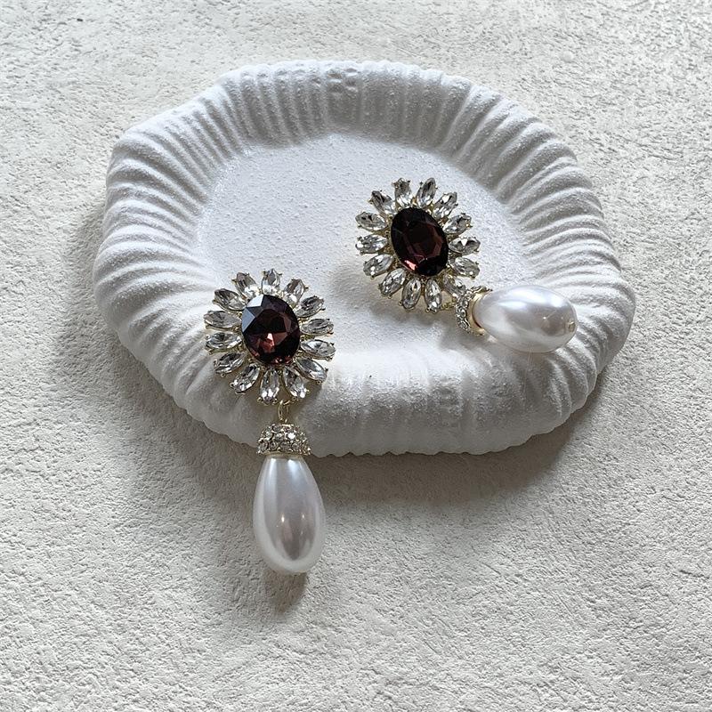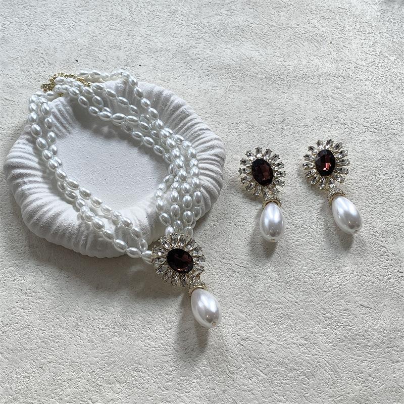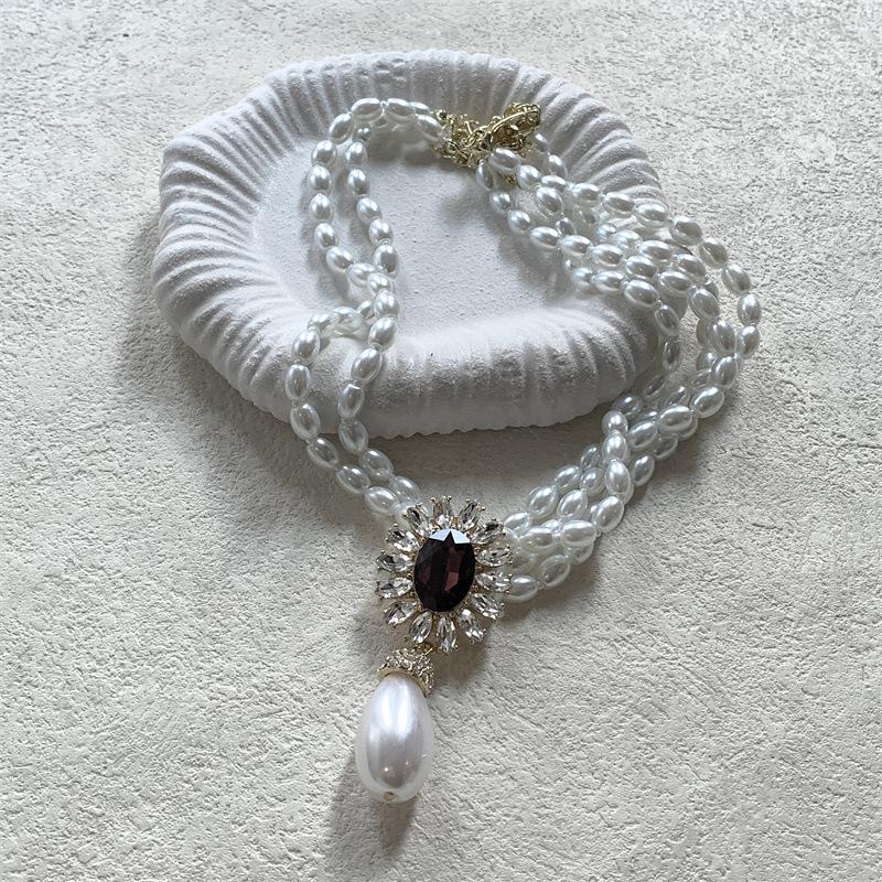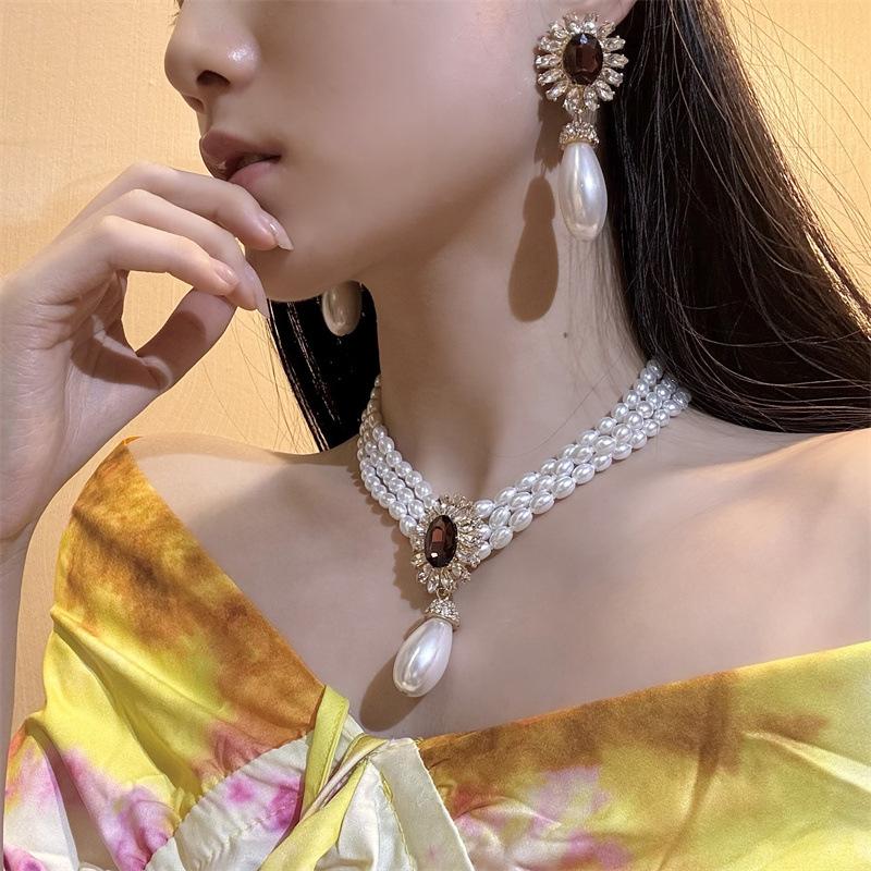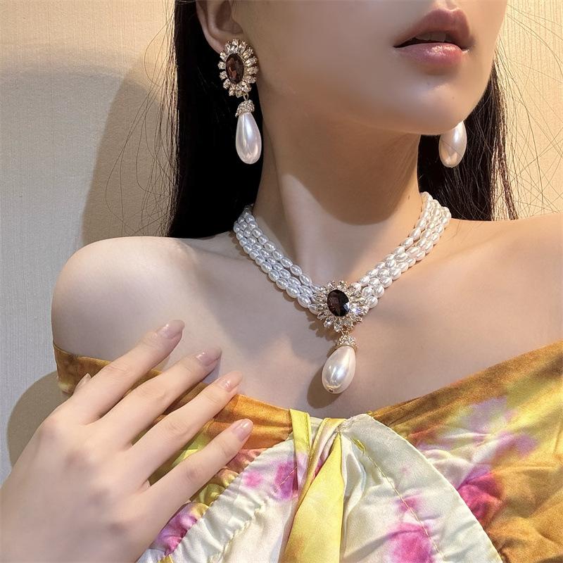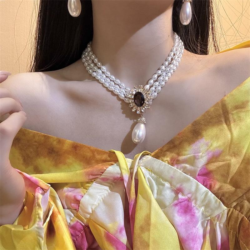 Collar de perlas con forma de gota de agua y diamantes con destellos de flores europeas y americanas, cadena de clavícula de nicho de lujo ligero, elegante cadena de cuello estilo corte.