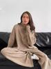 Traje de Suéter de Cuello Alto Transfronterizo para Mujer Europeo y Americano Otoño e Invierno Nuevo Holgado Casual Perezoso Grueso Tejido Traje de Pantalón