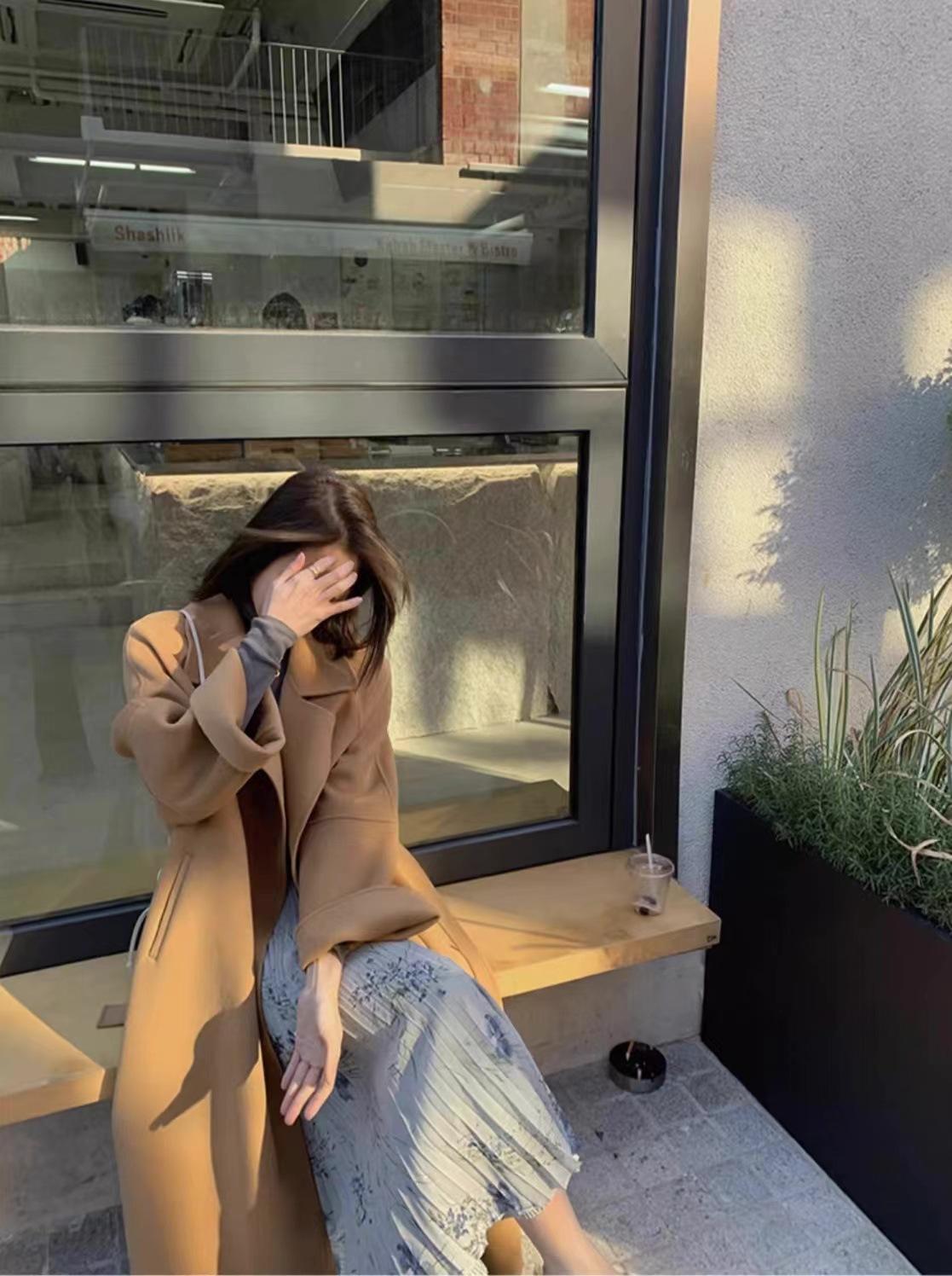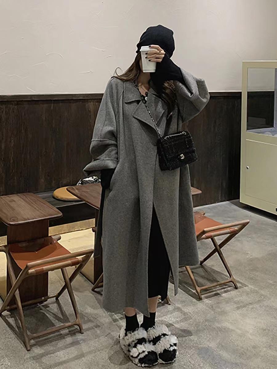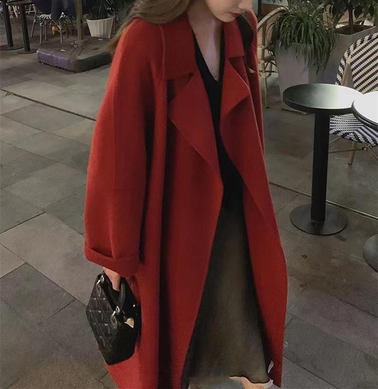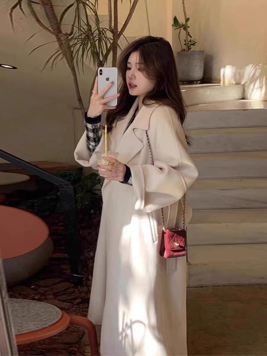 [Sicilia] Nuevo abrigo de lana gruesa estilo coreano para mujer, otoño e invierno, abrigo de lana de gama alta de longitud media estilo coreano