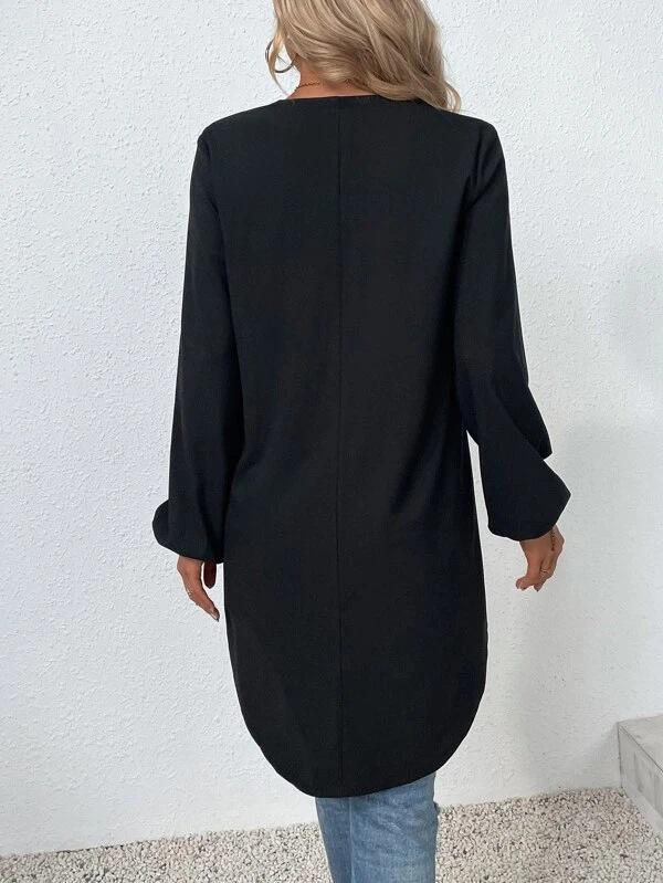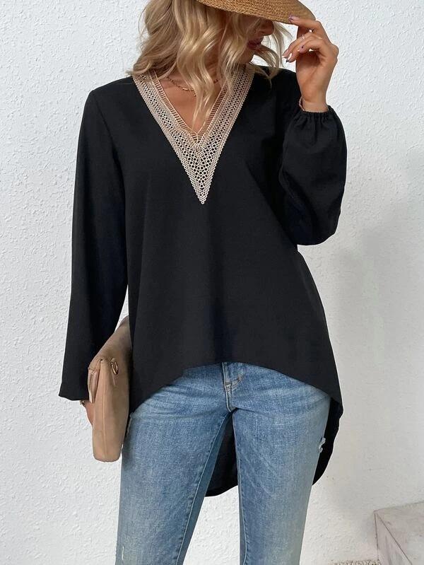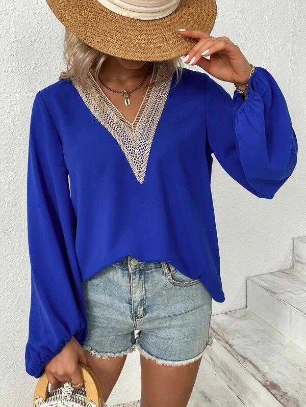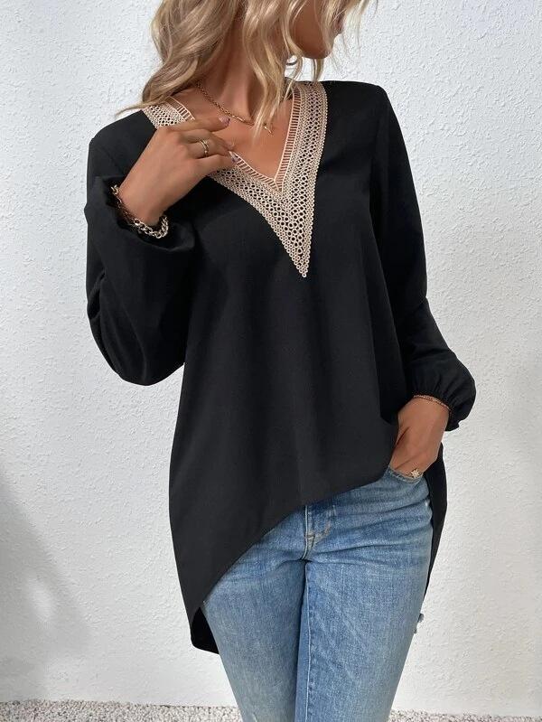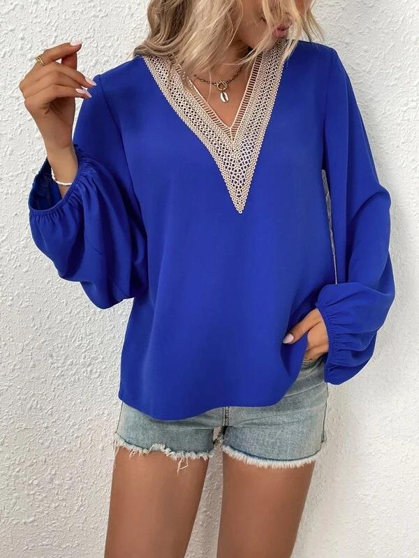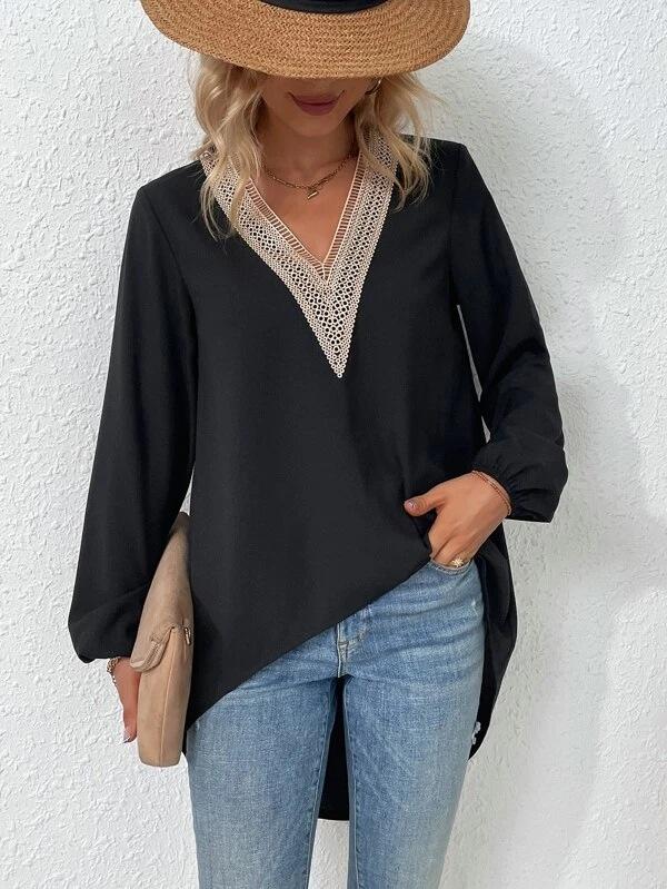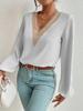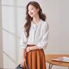 Camisa de gasa holgada elegante de primavera y verano 2024 con borde cruzado, nueva blusa larga con cuello en V y costuras para mujer.