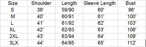 S, M, L, XL, 2XL, 3XL