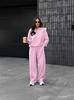 Traje de Terciopelo Rosa Nuevo de Otoño e Invierno 2024 Europeo y Americano Transfronterizo, Suéter Deportivo de Punto y Pantalones de Pierna Ancha Dos Piezas