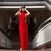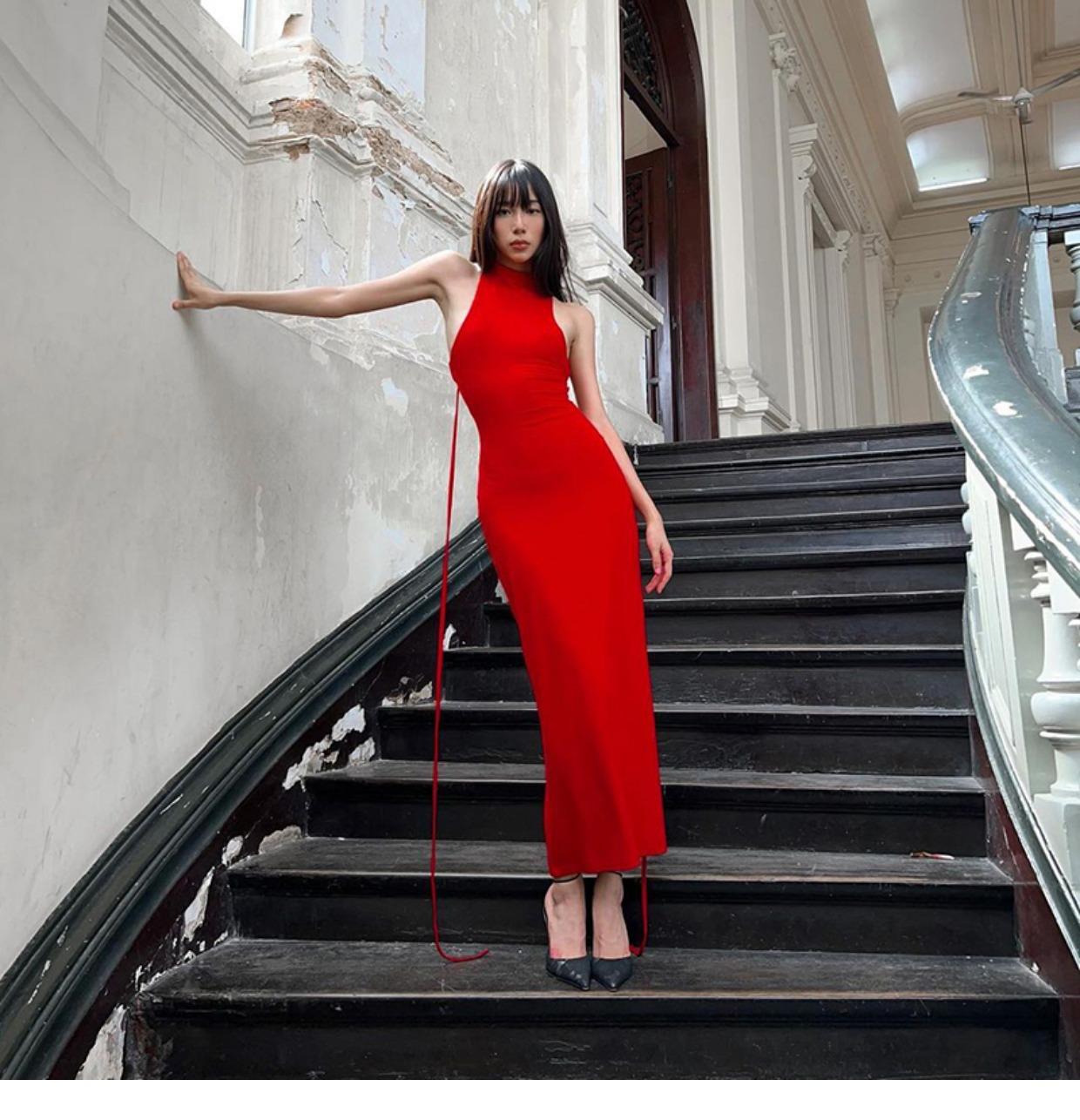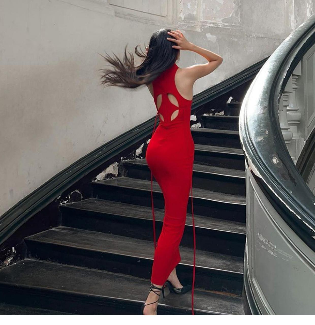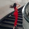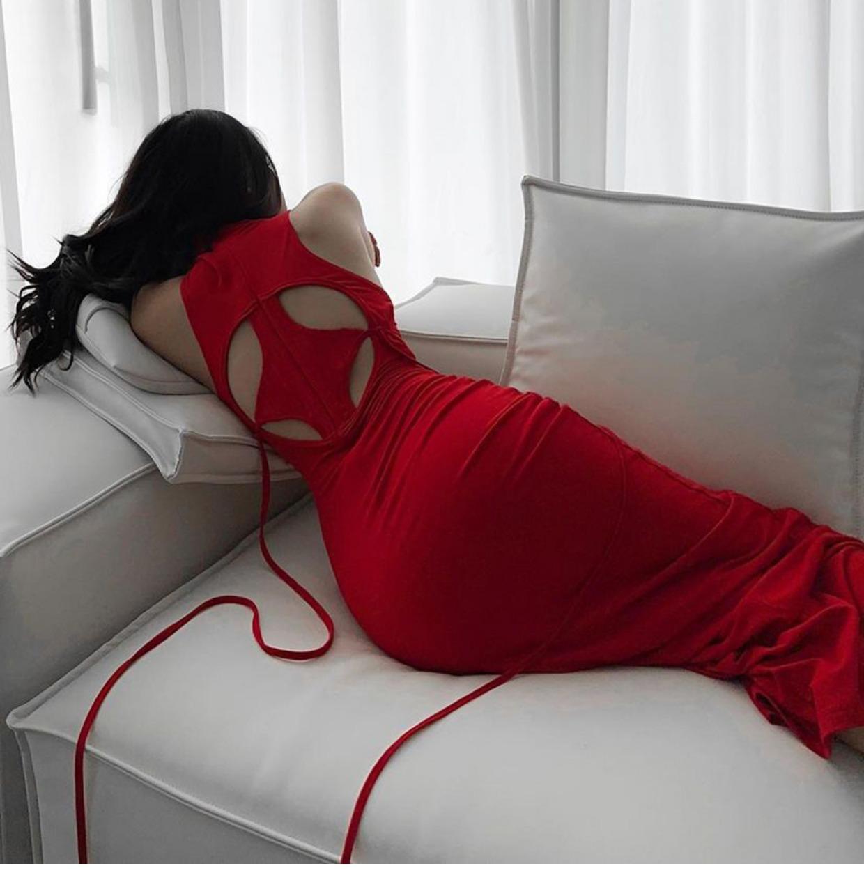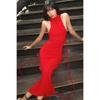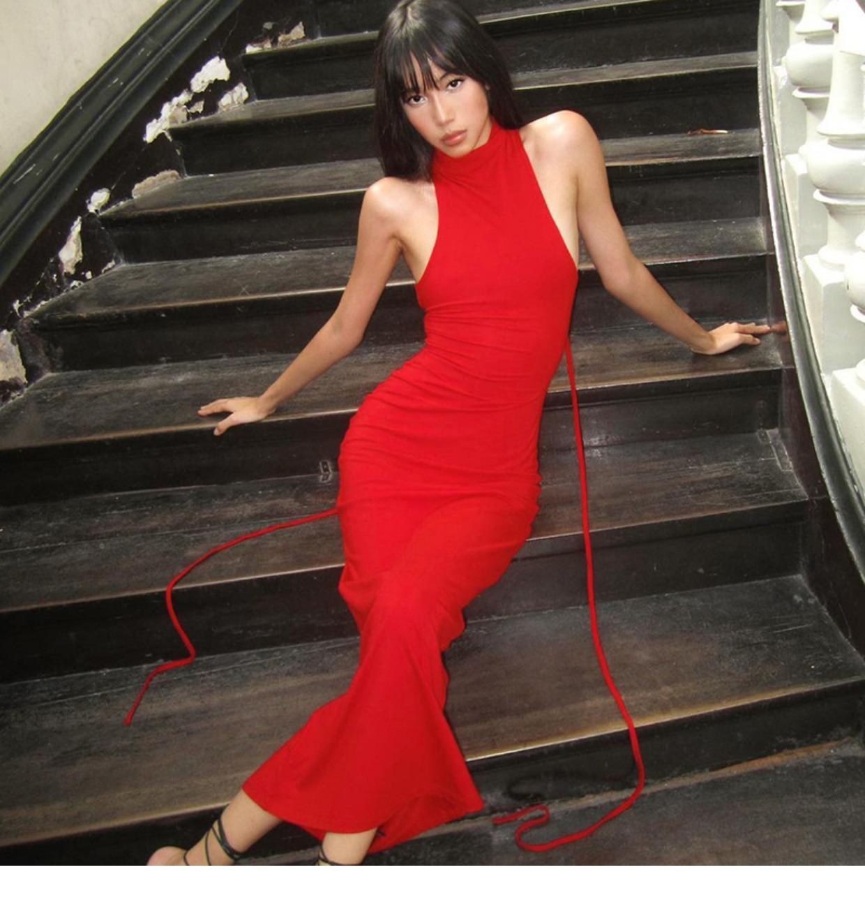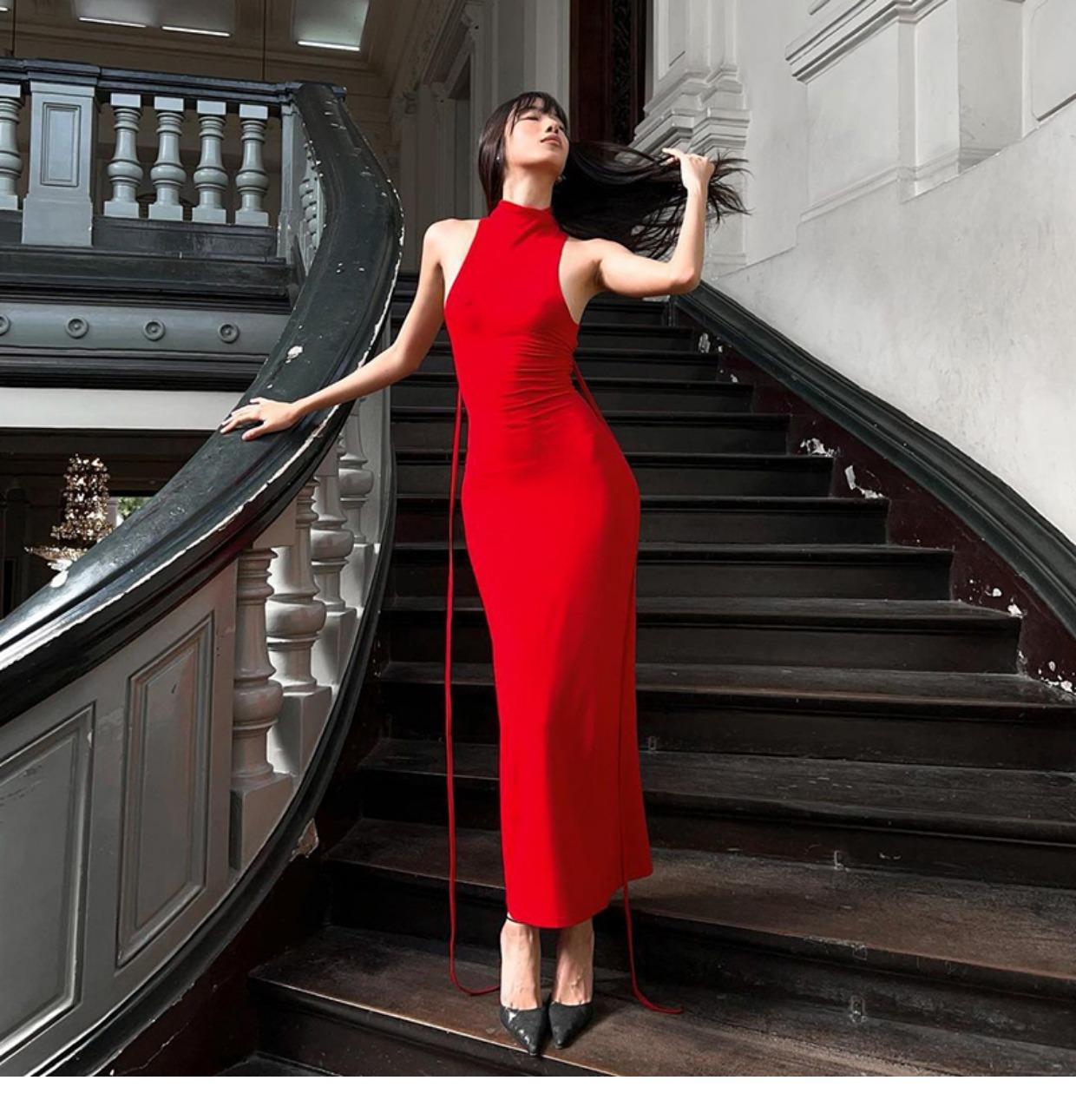 Vestido ajustado con cuello halter, espalda descubierta y aberturas, 2023, nuevo diseño rojo con ins, estilo nicho