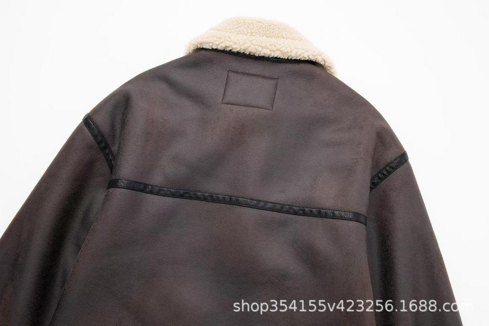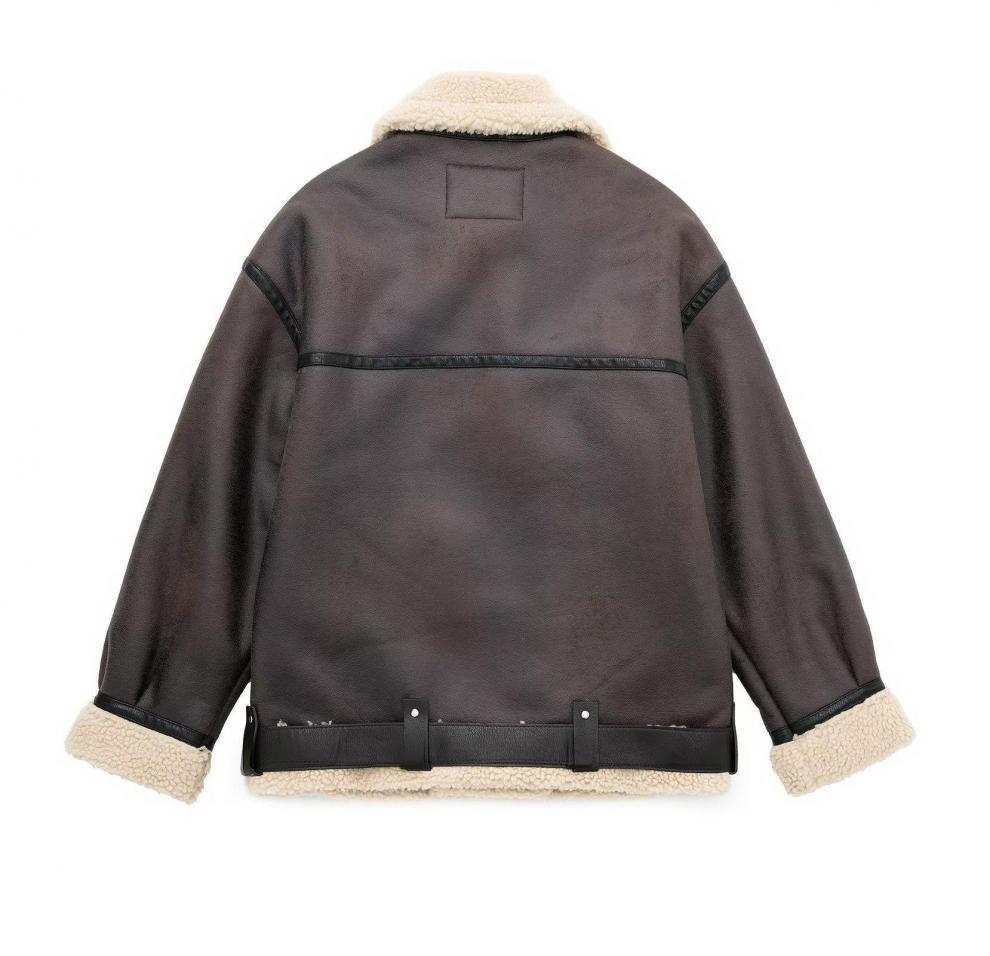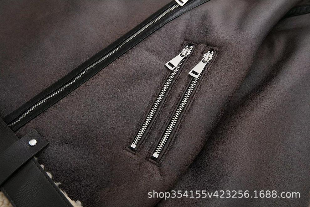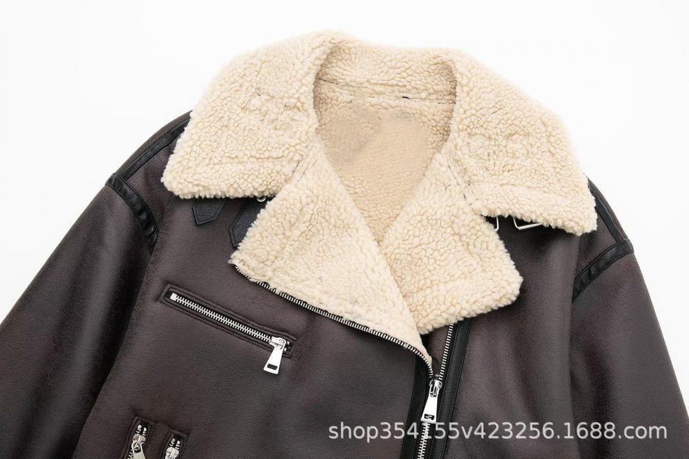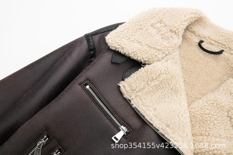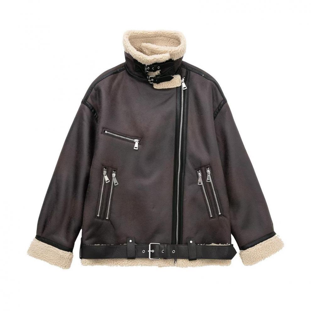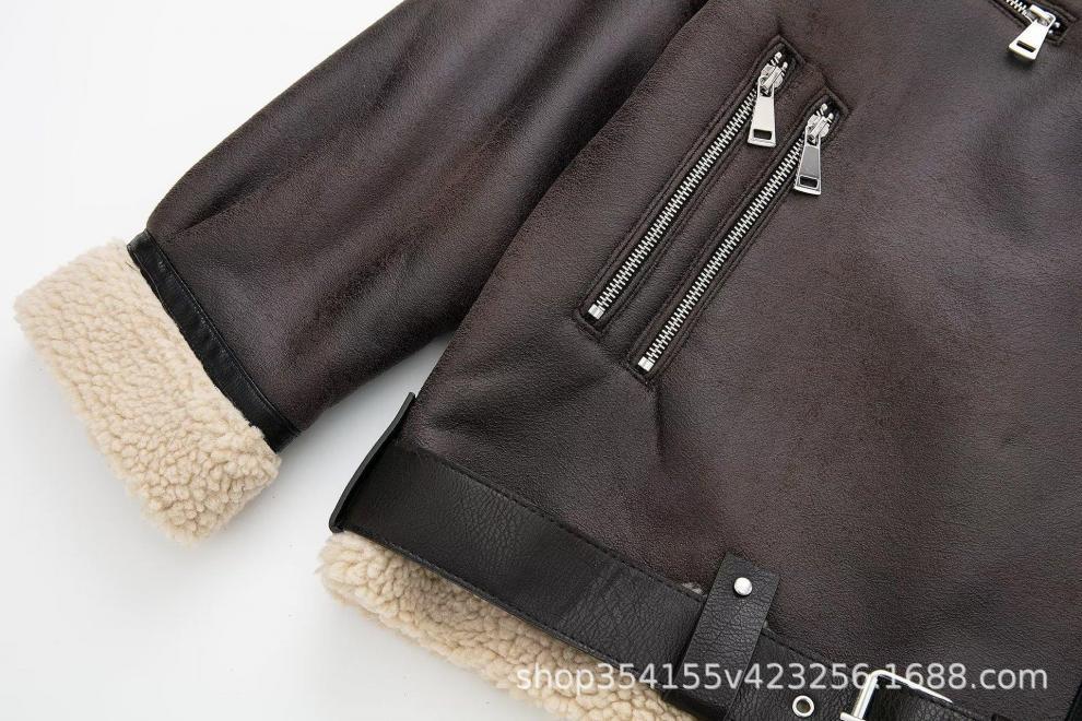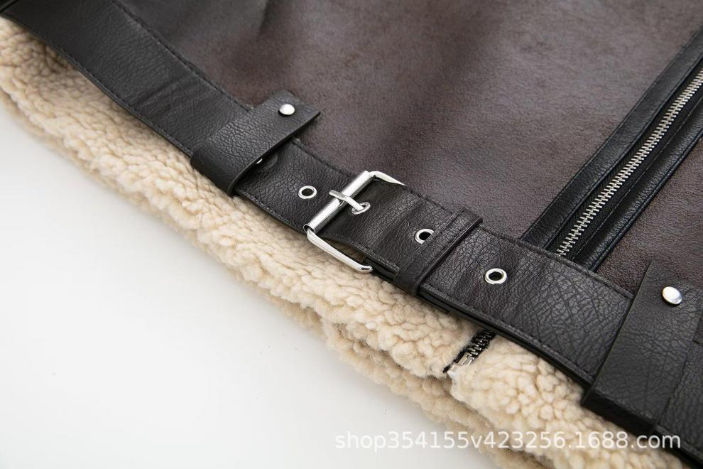 Abrigo de piel sintética compuesto con cremallera y cinturón cruzado para otoño e invierno 2024, comercio exterior transfronterizo, fabricantes de abrigos