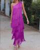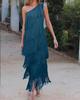 Vestido Asimétrico con Flecos de Moda Fuera del Hombro Productos Nuevos Primavera y Verano 2024