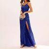 Vestido de mujer de comercio exterior europeo y americano, con costuras, hombros descubiertos, rojo, para banquete, dama de honor.