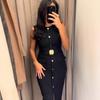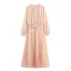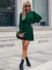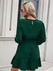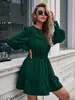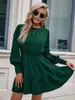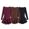 2025 Nuevo Estilo de Comercio Exterior Elegante Falda Línea A Europea y Americana Vestido Básico de Manga Larga con Puños