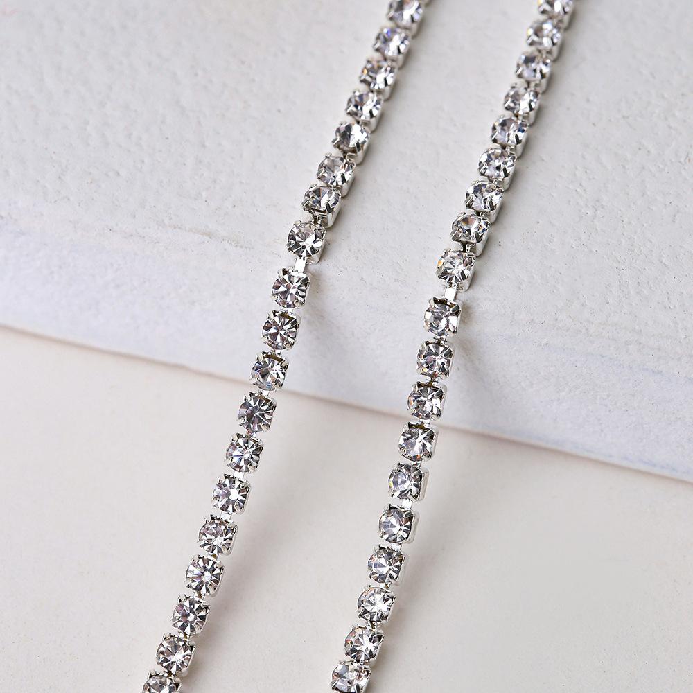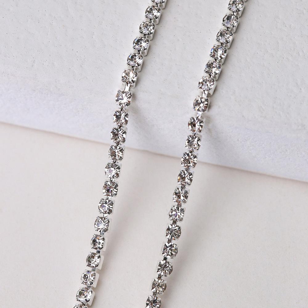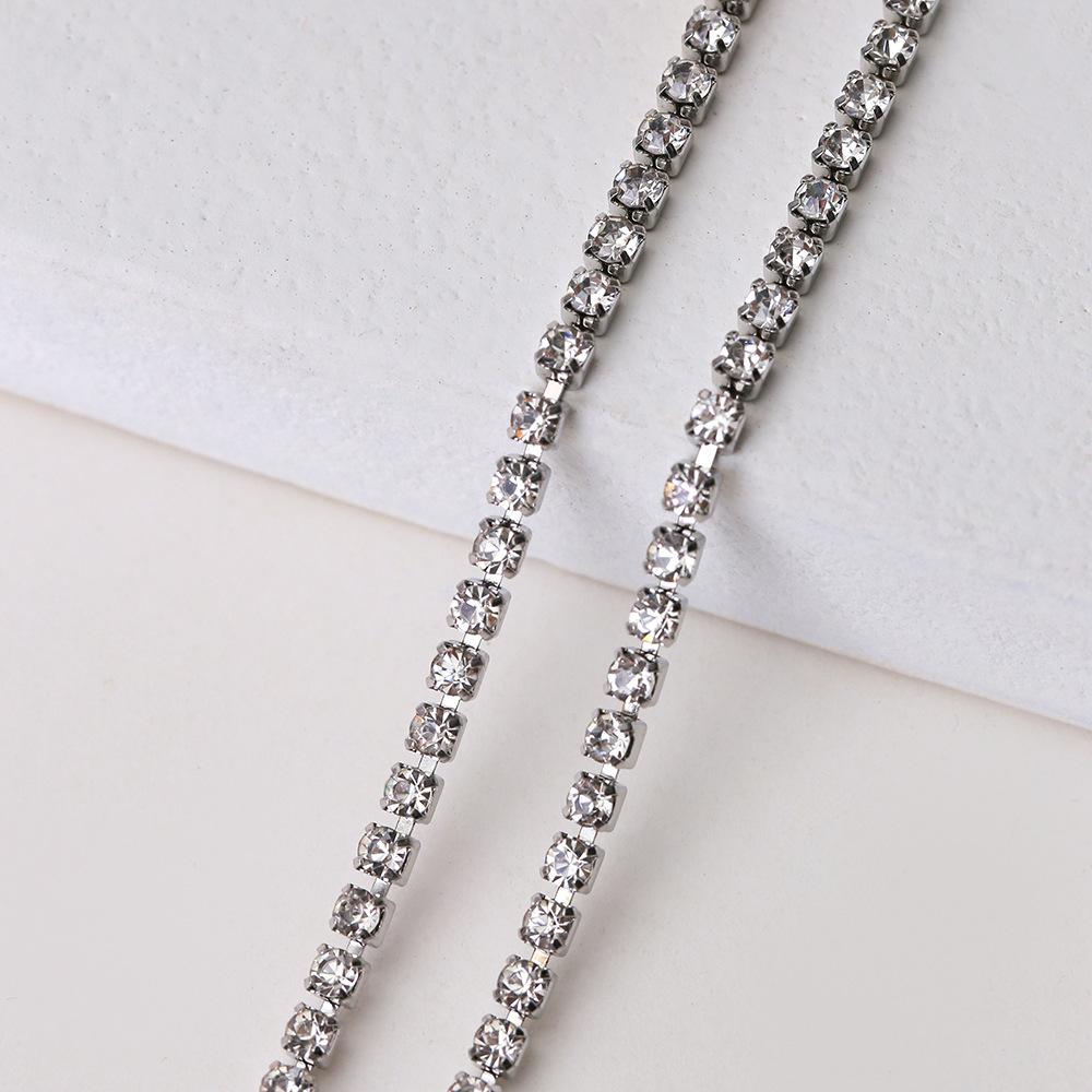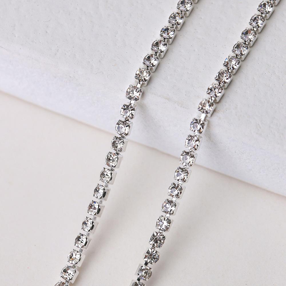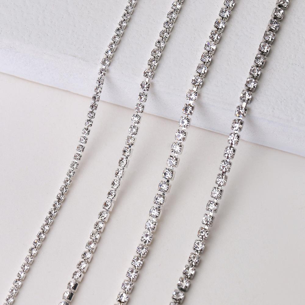 Cadena Clásica de Pedrería Grado A de una Sola Fila para Vestido de Novia, Accesorio de Cadena de Pedrería con Collar Hecho a Mano, Cadena de Garra Galvanizada, Decoración para Ropa