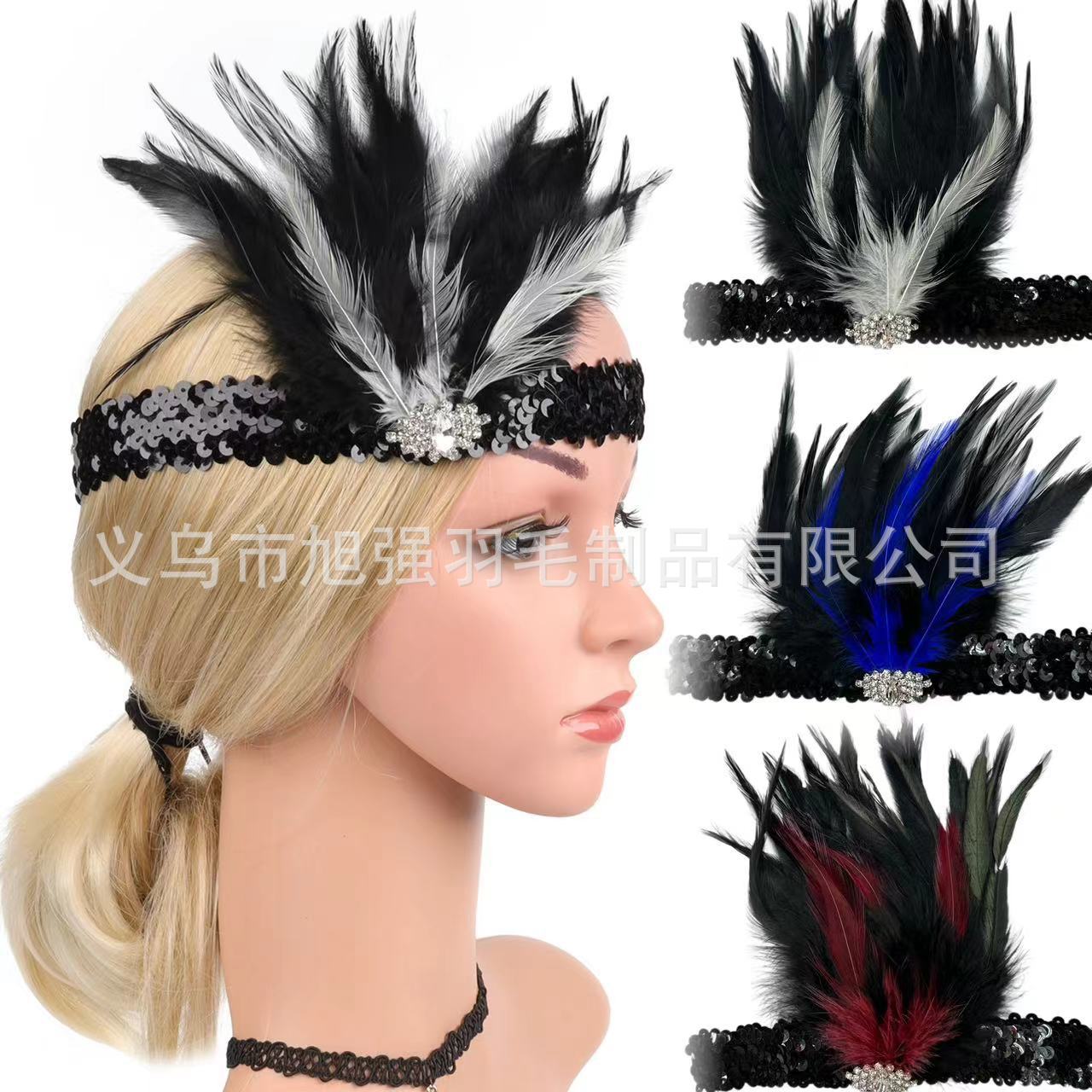 Tocado de Mascarada Tocado de Plumas Negras Tocado de Plumas Gatsby Europeo y Americano Despedida de Soltero Accesorios para el Cabello de Baile