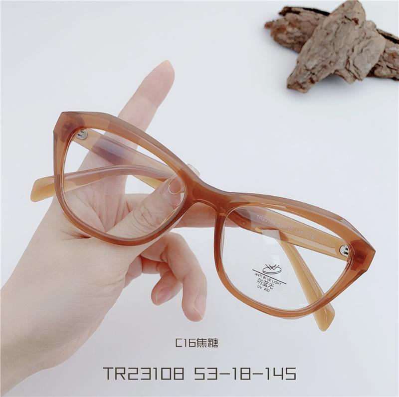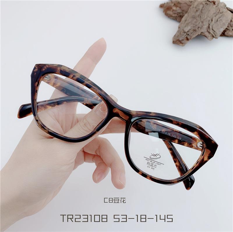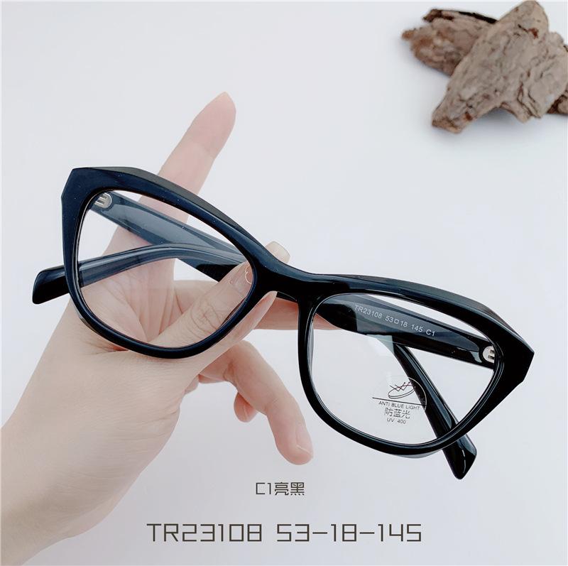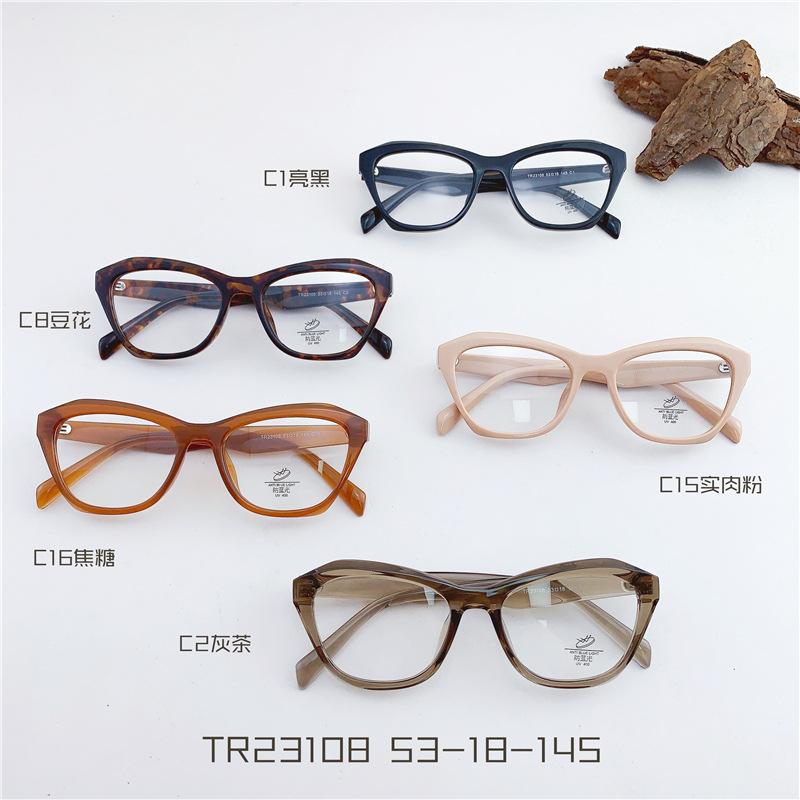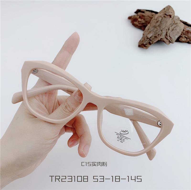 Gafas TR90 transparentes para estudiantes, montura de ojo de gato, con personalidad, para mujeres coreanas, venta al por mayor, montura de gafas planas TR23108