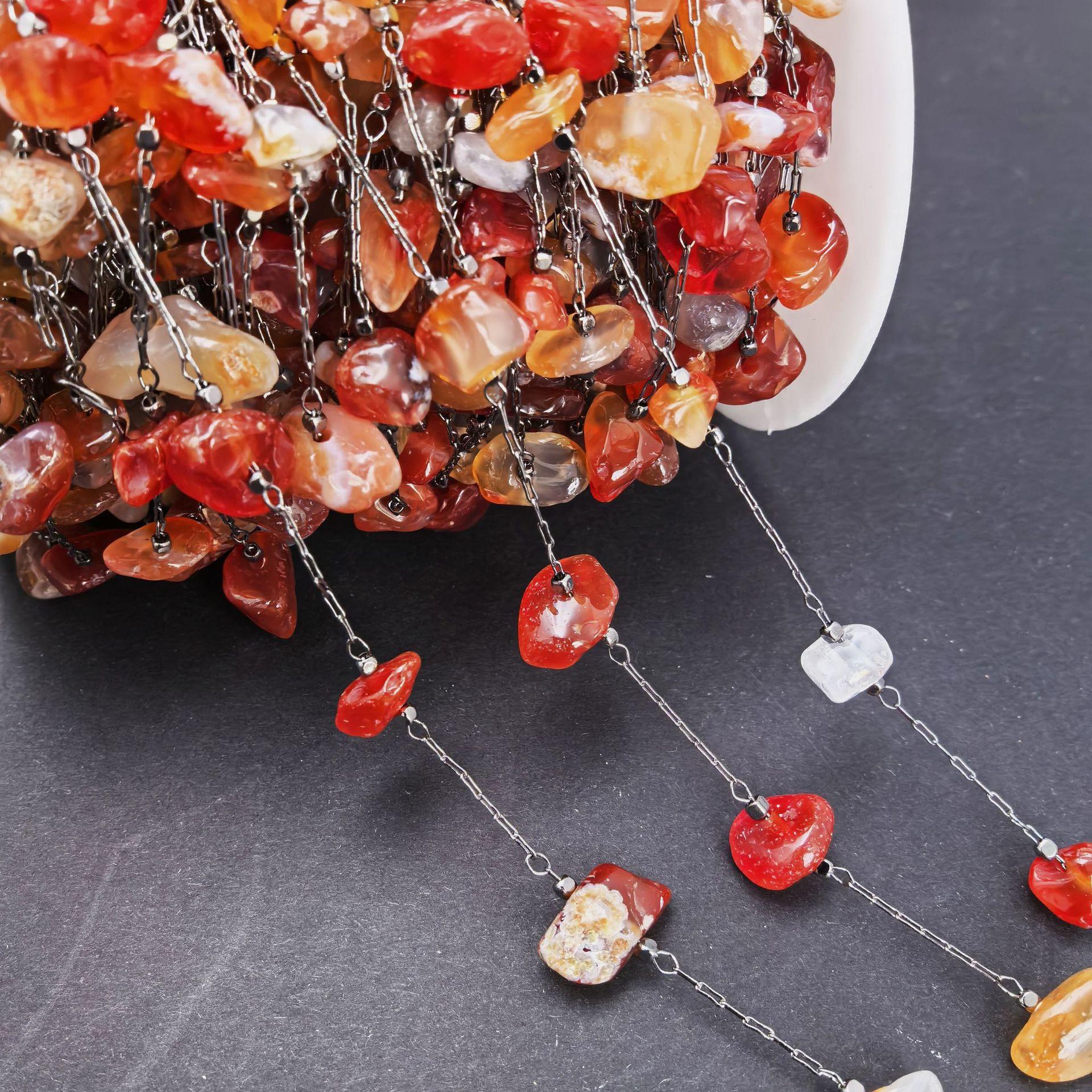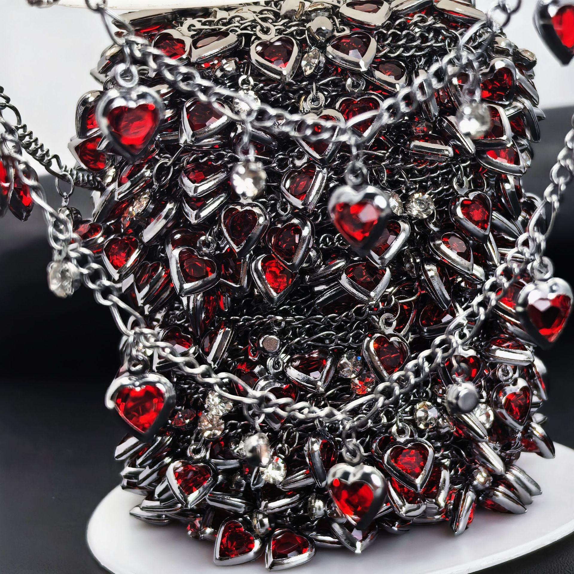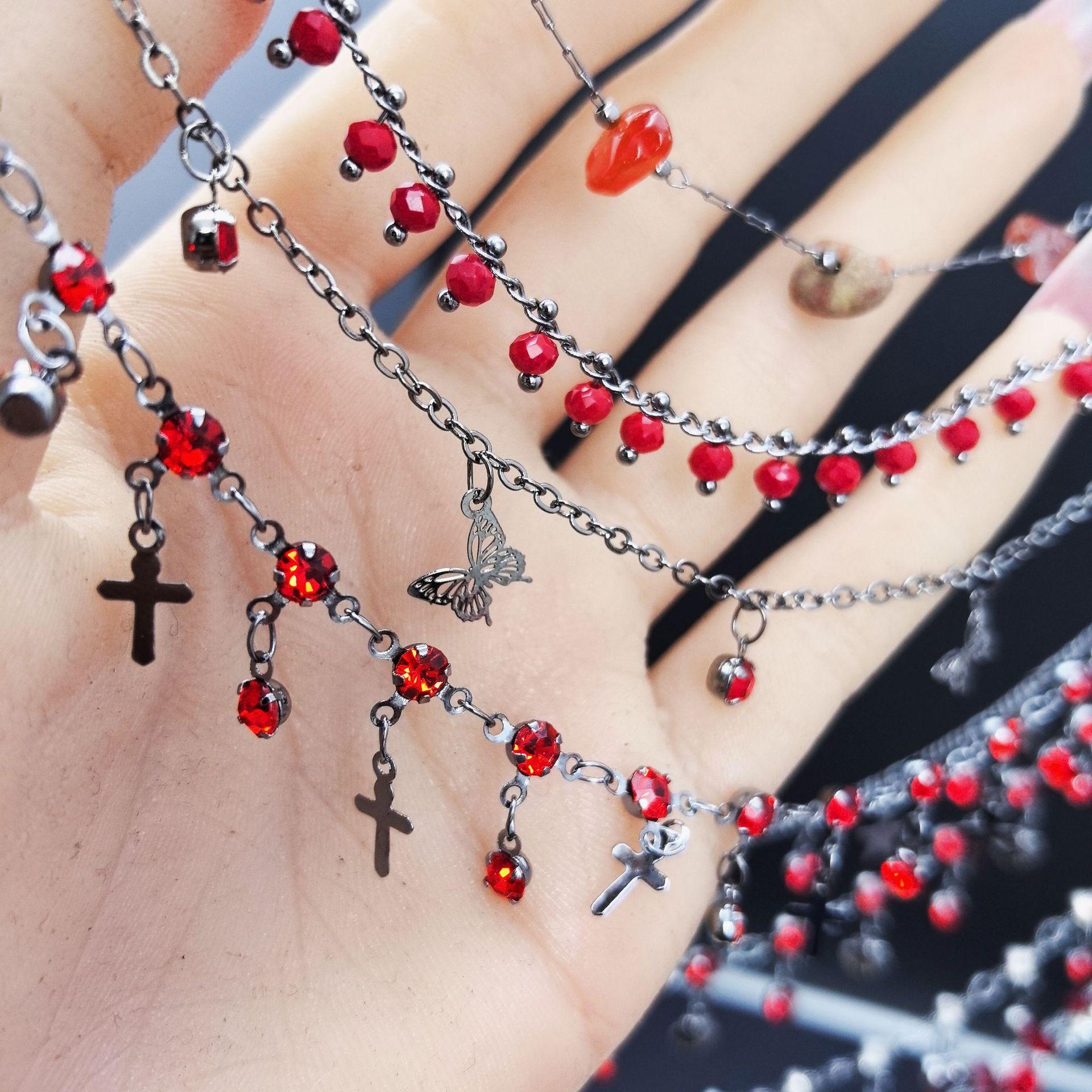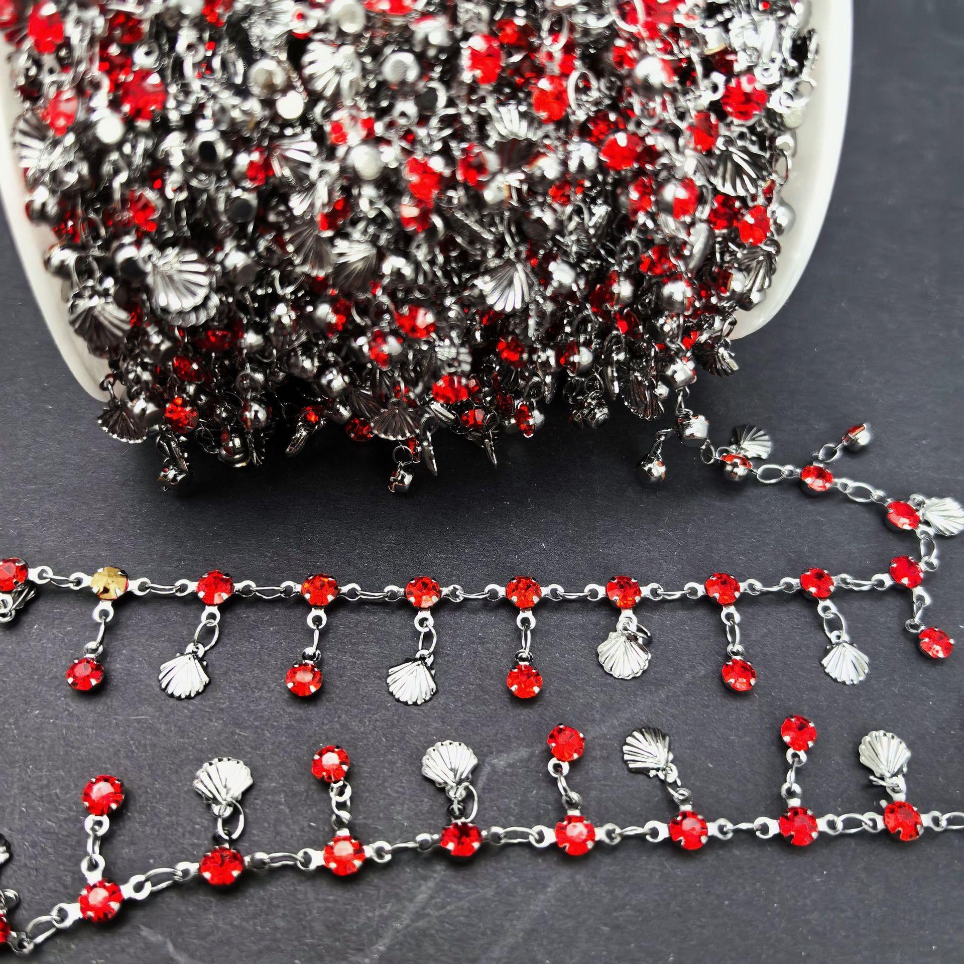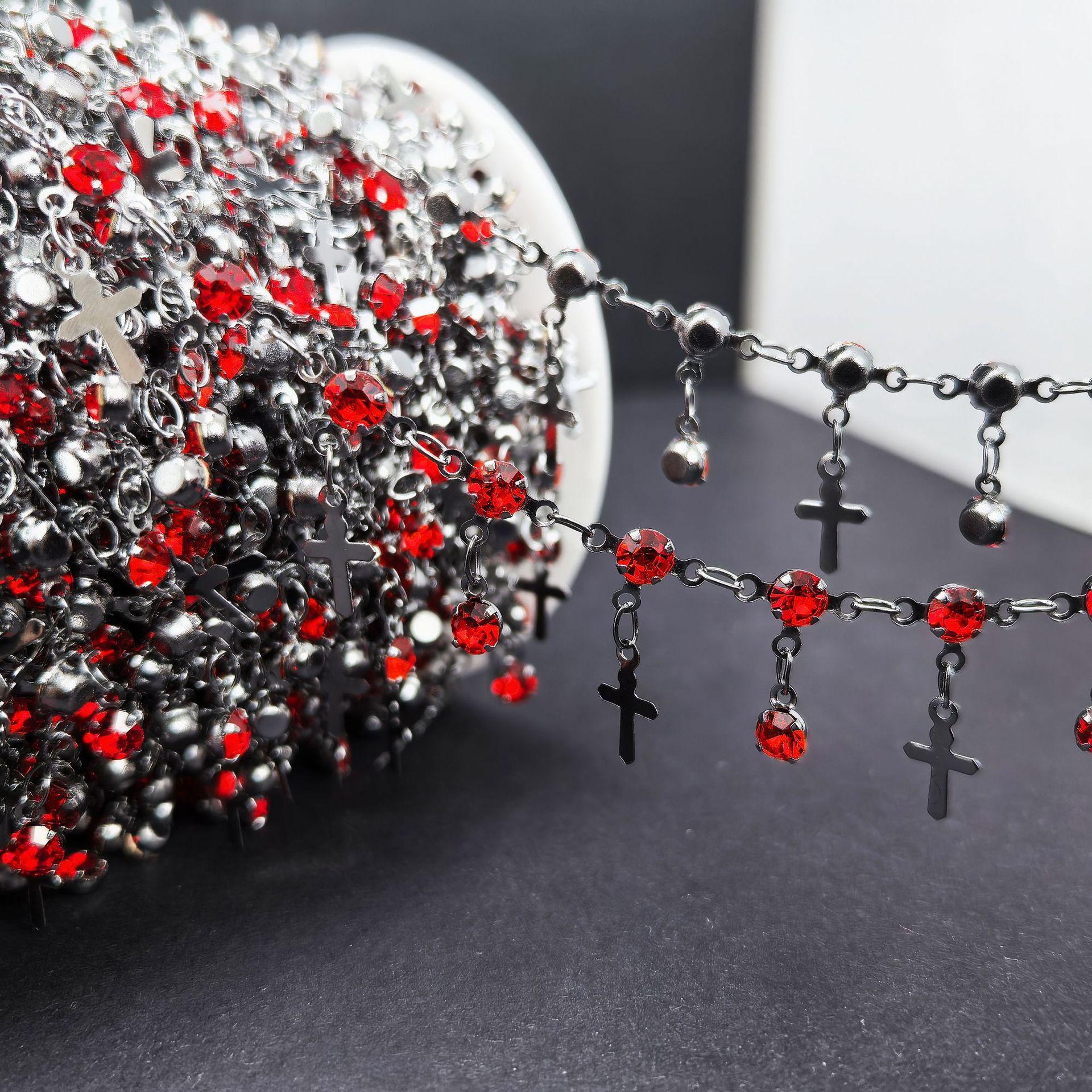 6mm red edged diamond + rhinestone chain, 6mm red triangular crystal chain, Red agate spacer chain, Red + whit...
