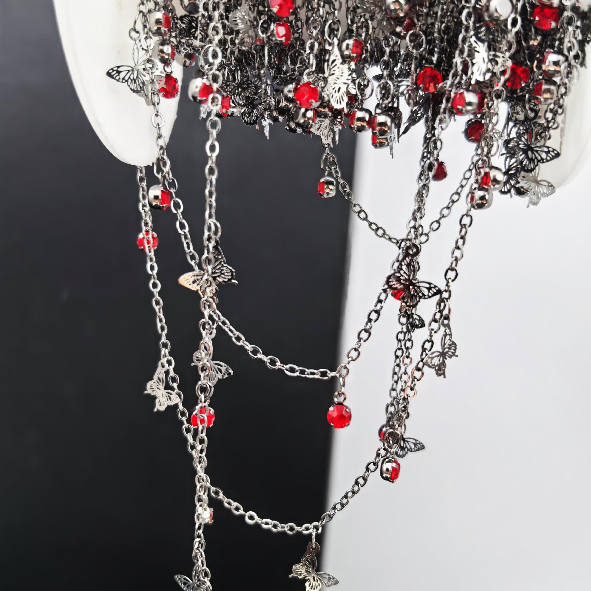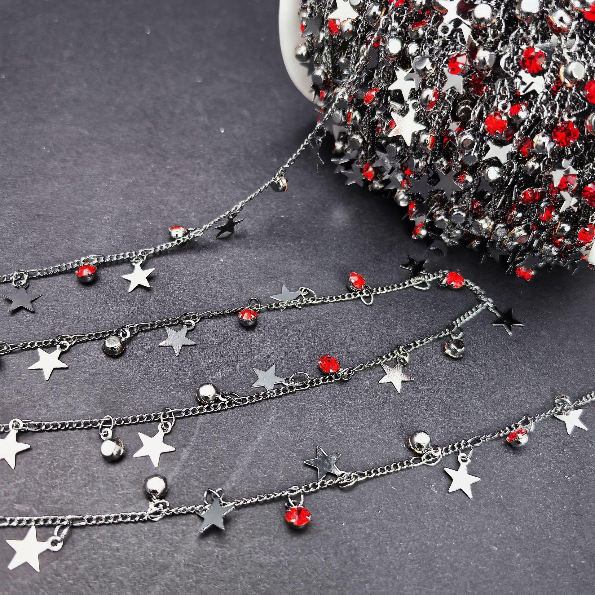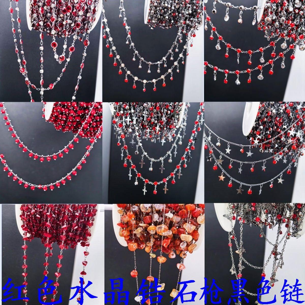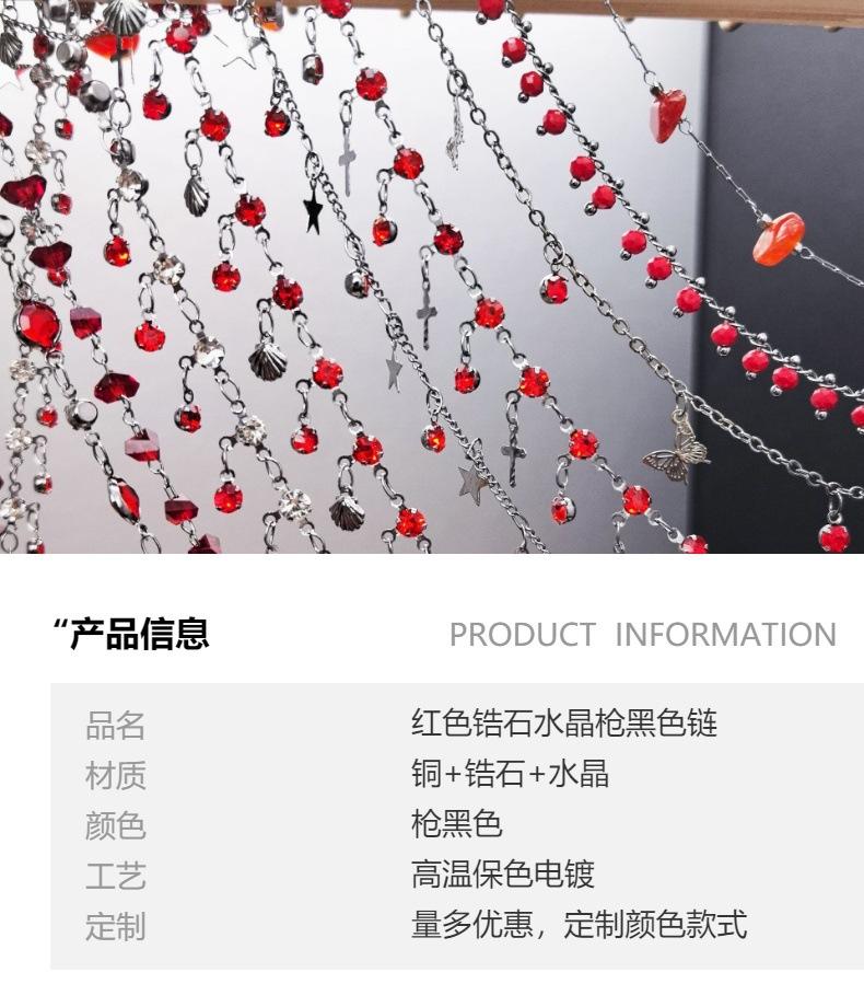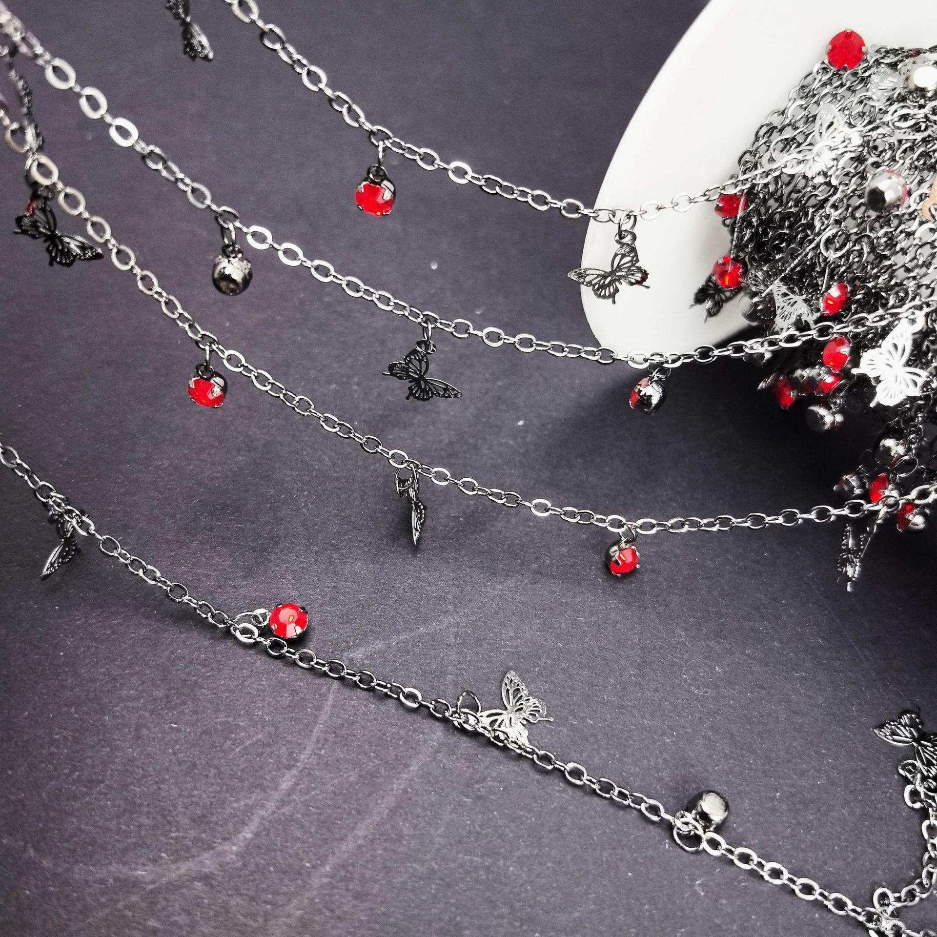 Cadena Negra Oscura DIY Cristal de Zircón Rojo Estrella Mariposa Cadena Todo Cobre Conservación de Color Antiguo Tocado Accesorios de Ropa