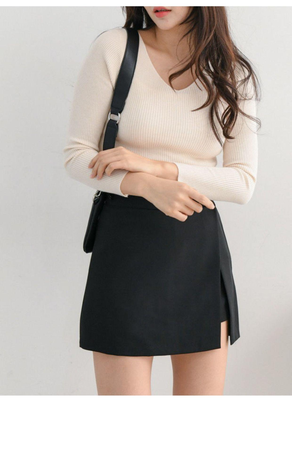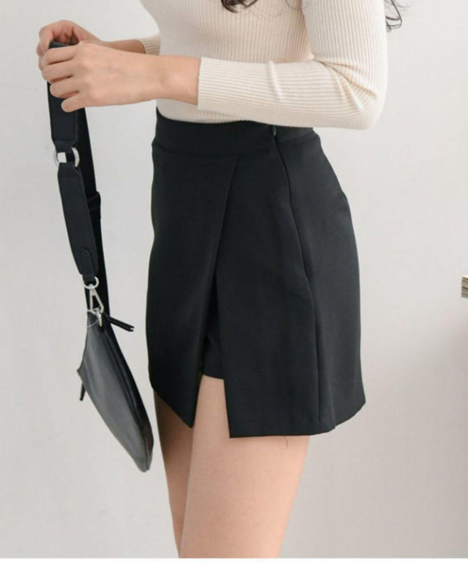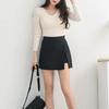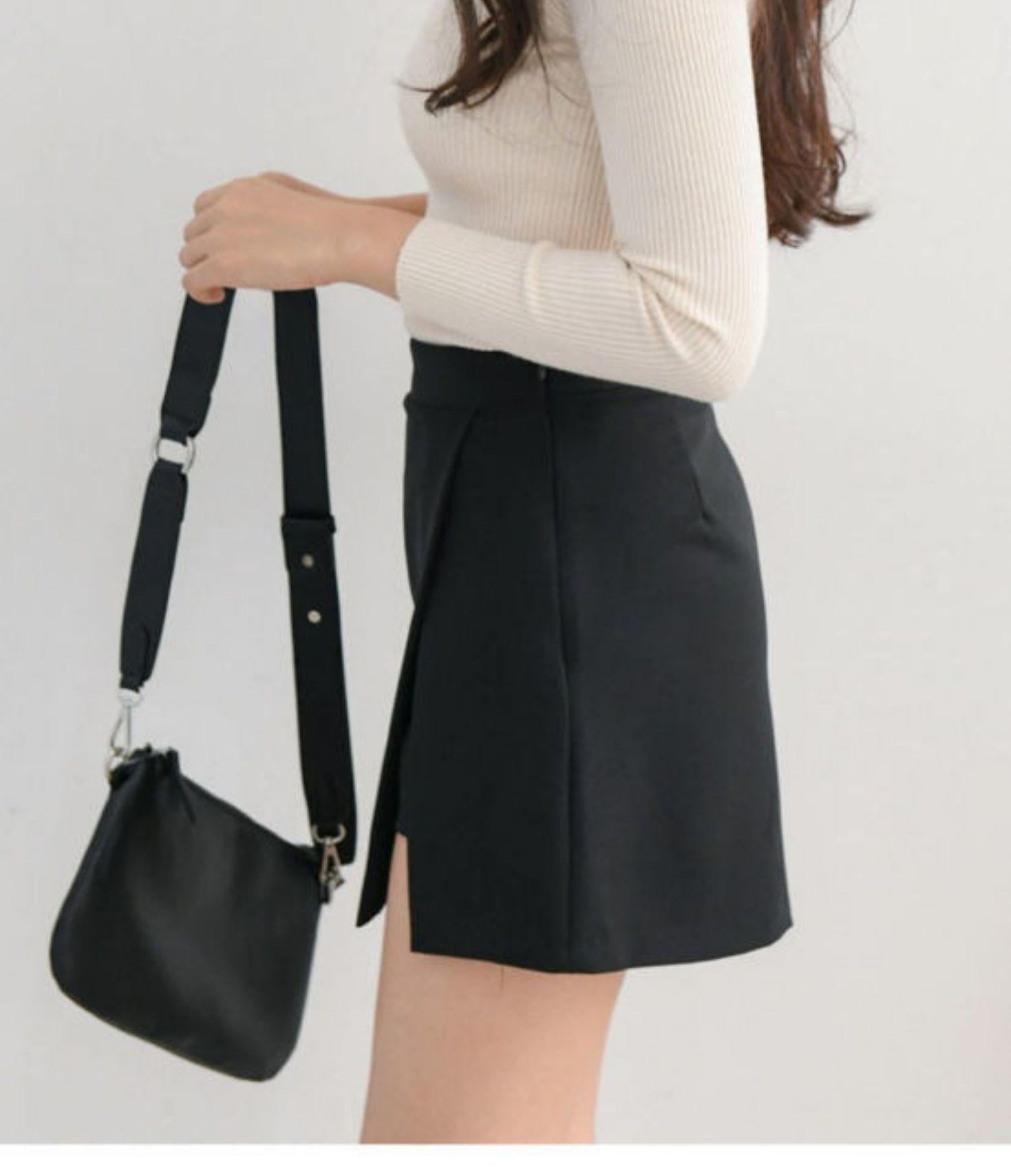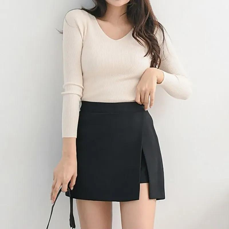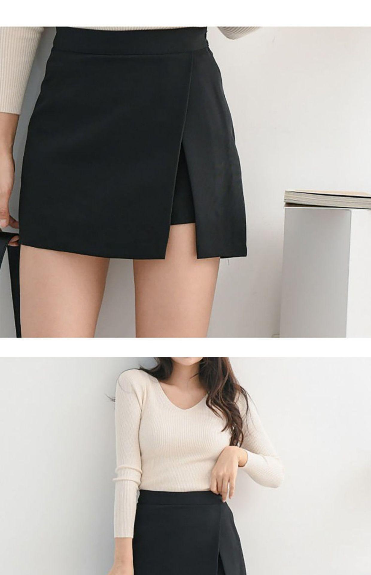 Falda de línea A antideslumbrante, de cintura alta, adelgazante, con abertura en la cadera, color caqui, pequeña, gordita, que cubre la carne, falda de un solo paso.