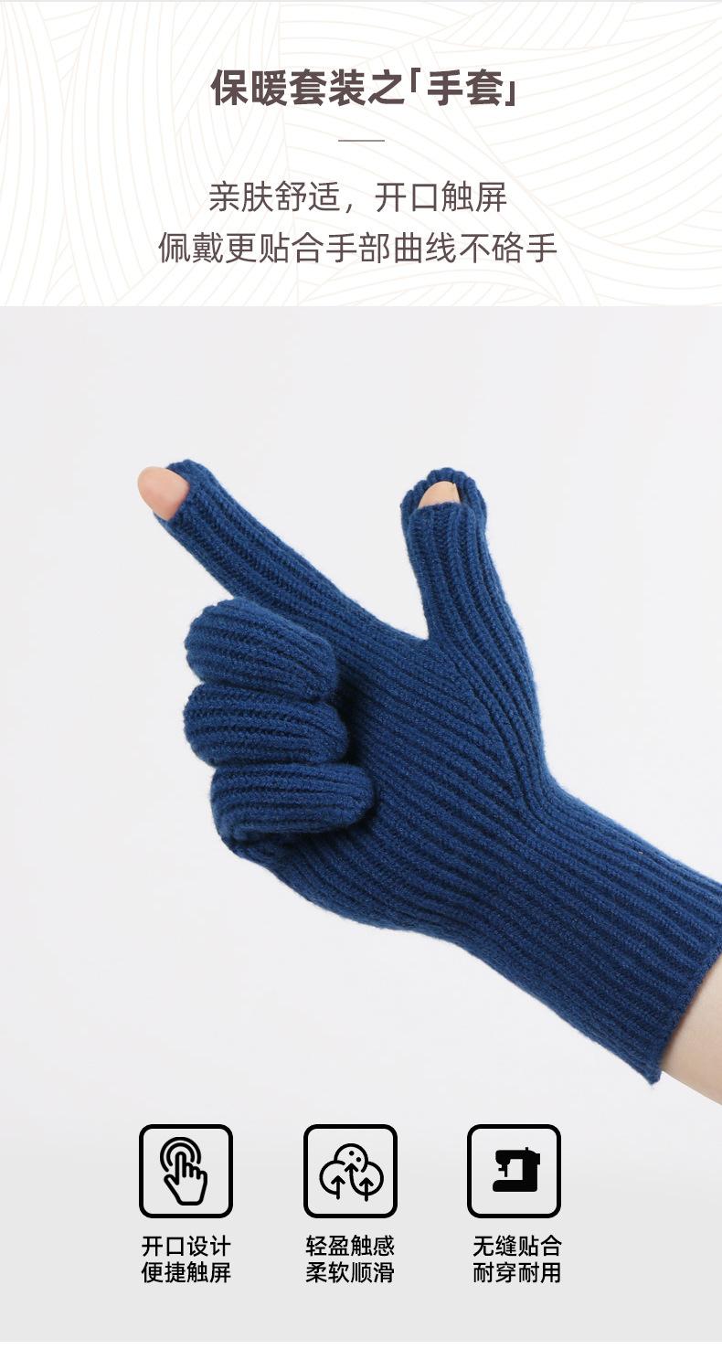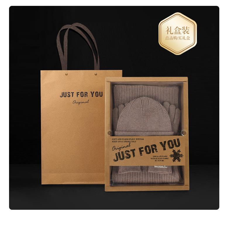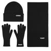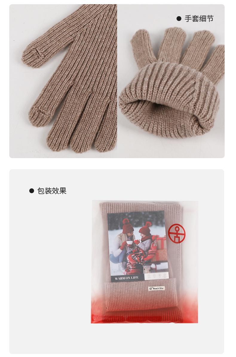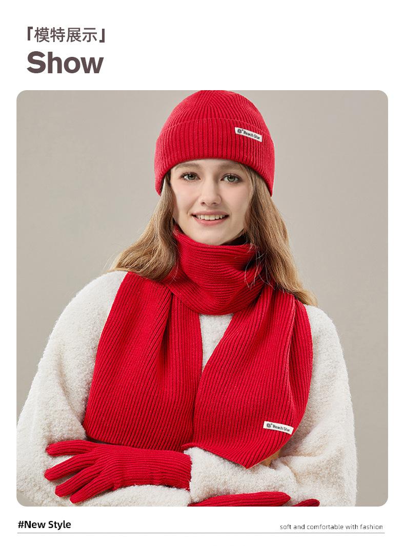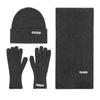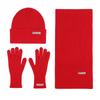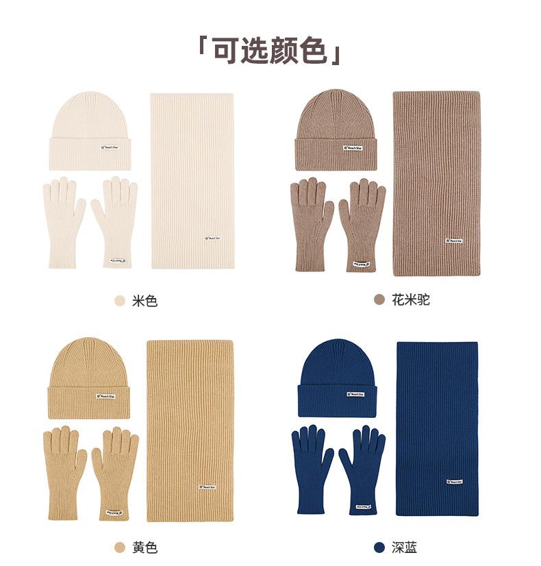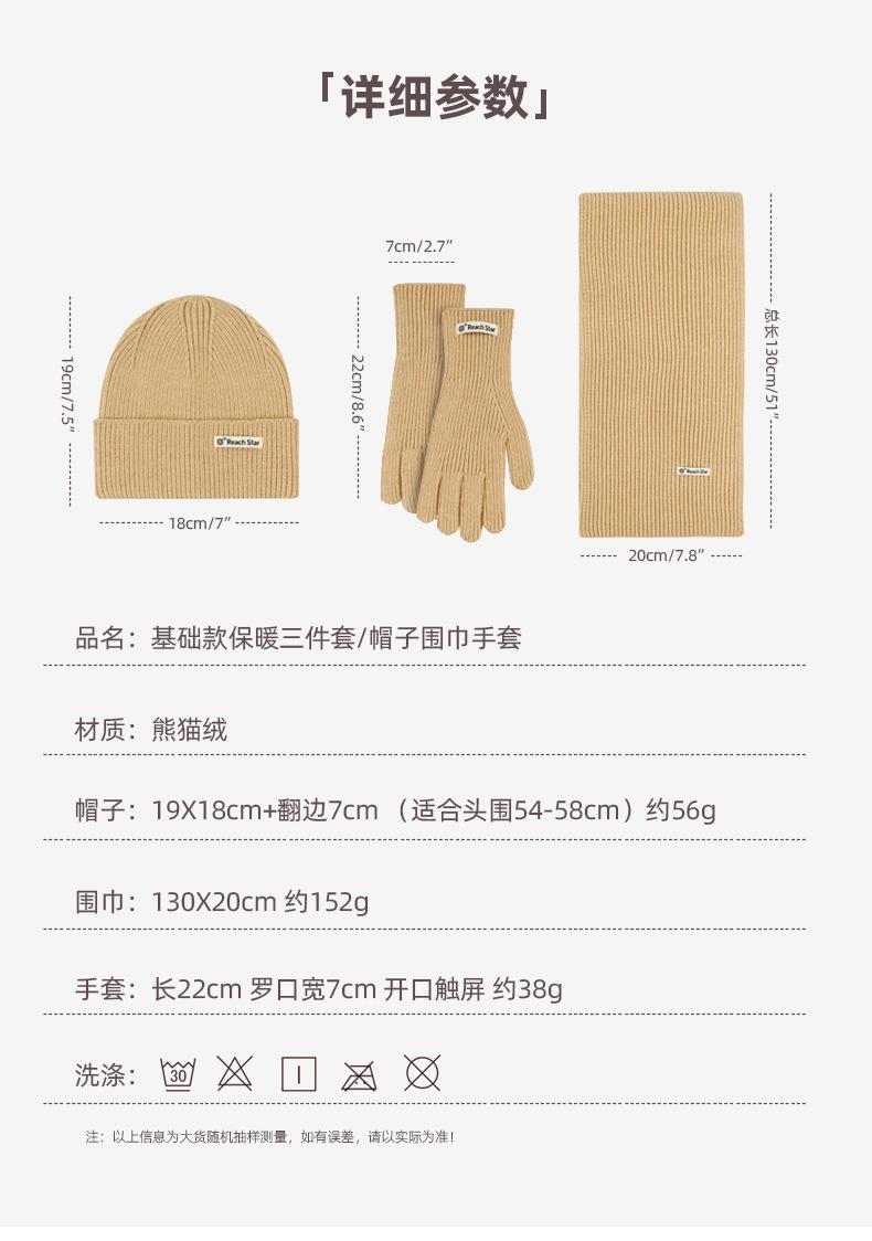 Conjunto de tres piezas de gorro de punto de color liso, cálido, resistente al frío, grueso, de lana para exteriores, bufanda y guantes.