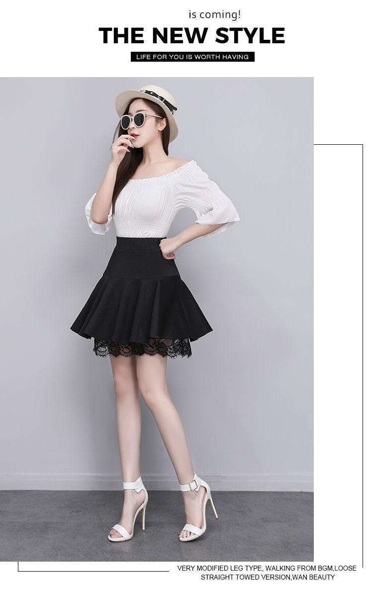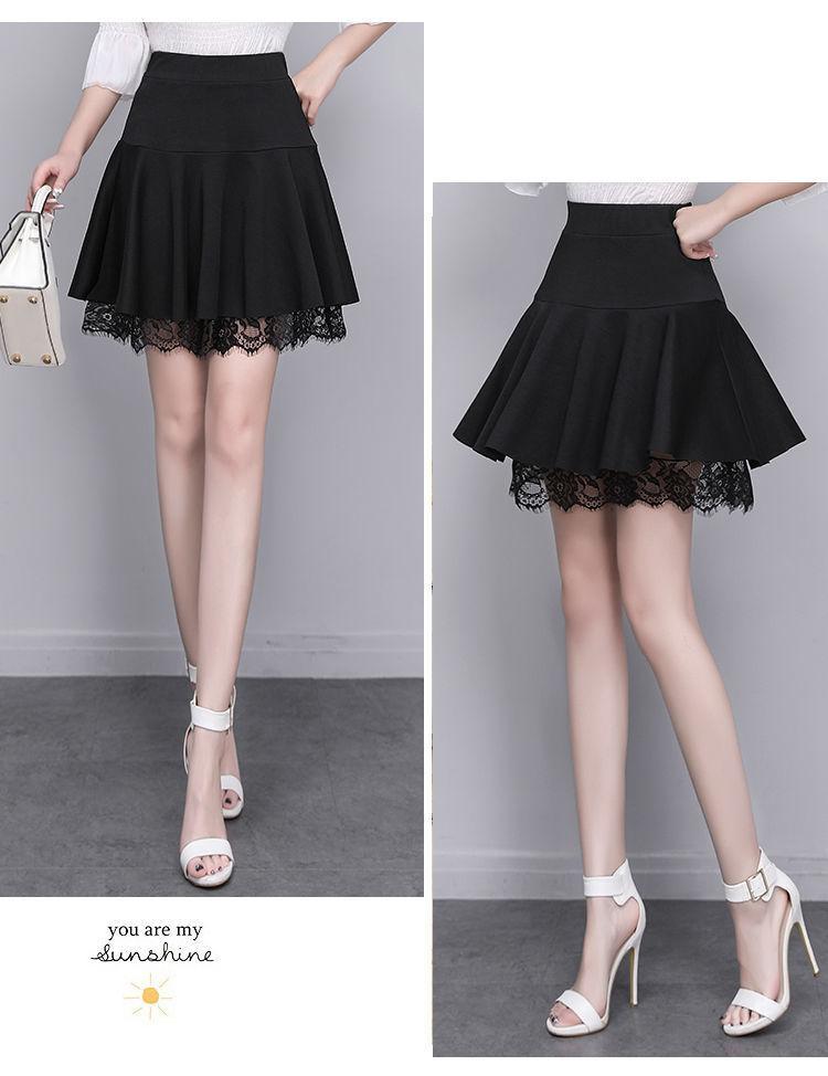 Falda con Encaje para Mujer Falda Corta Primavera y Verano 2024 Nueva Falda Línea A de Cintura Alta Look Adelgazante Falda Paraguas Plisada