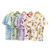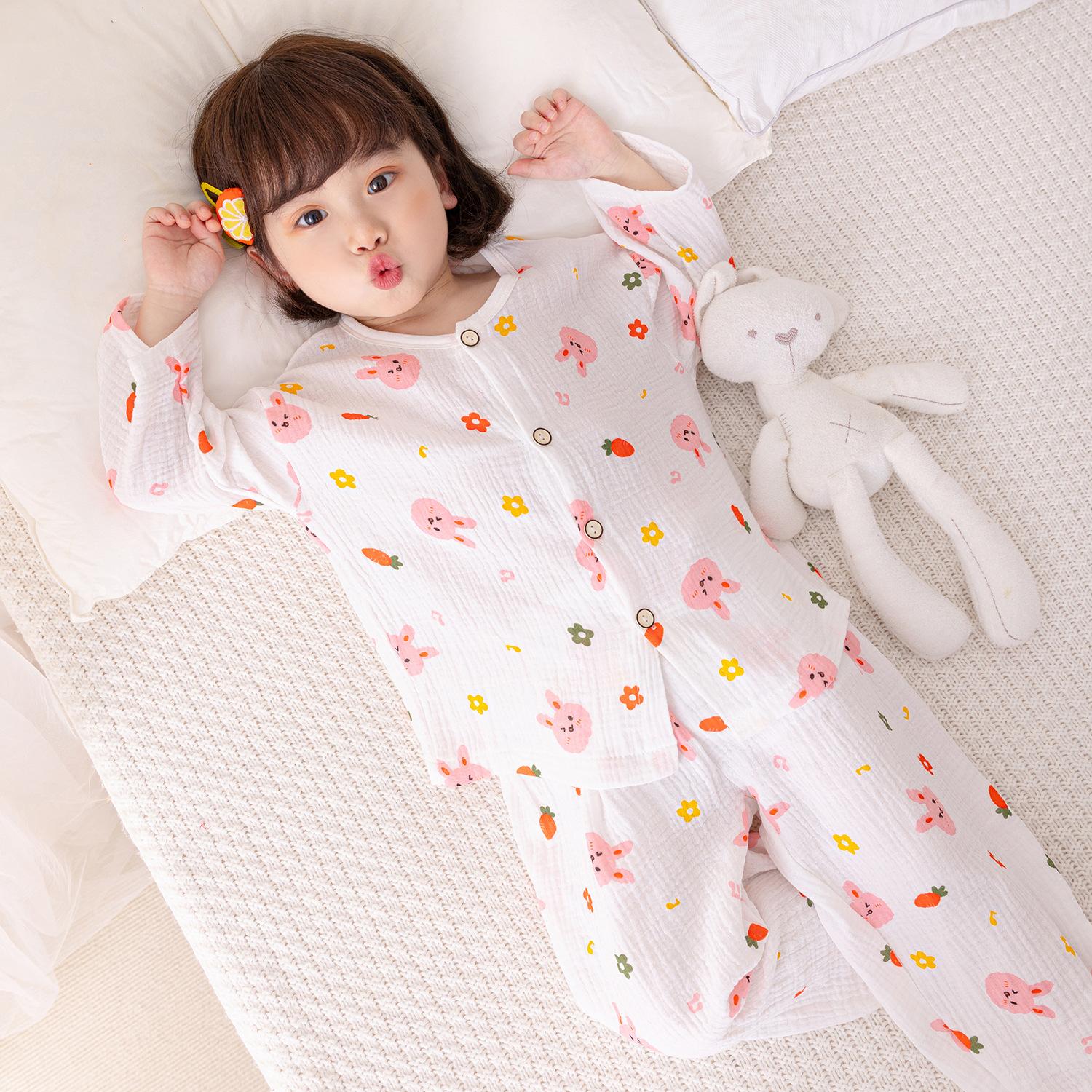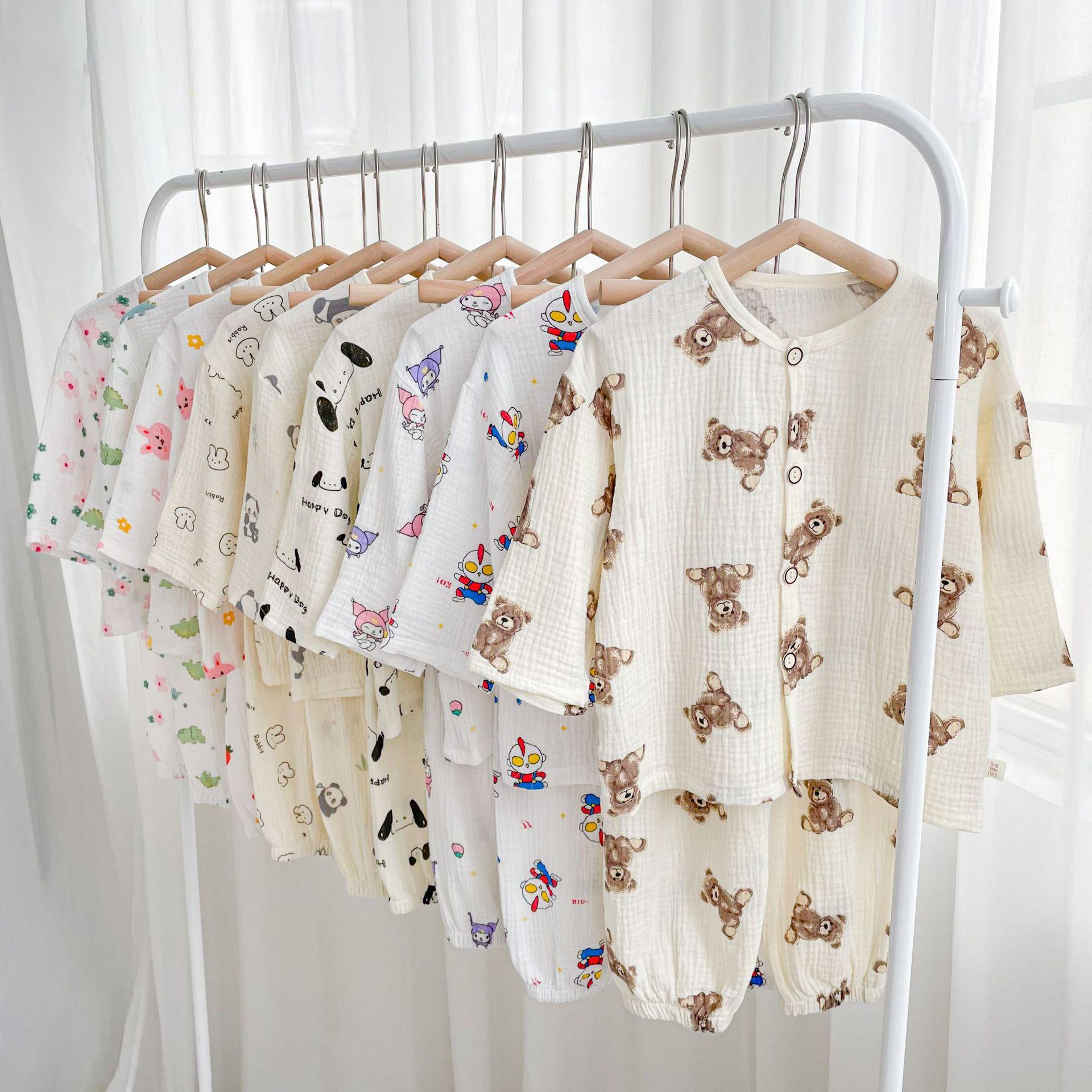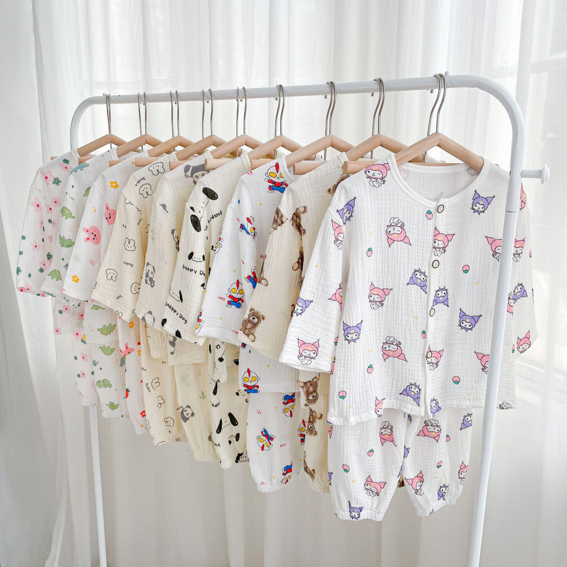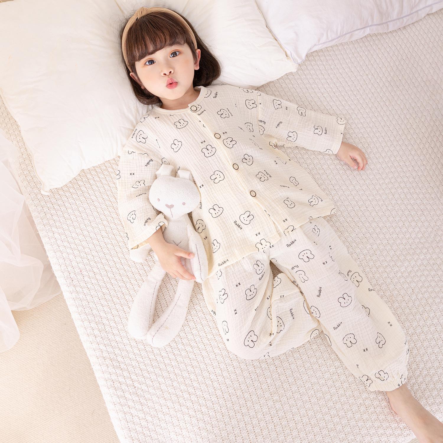 Omiocong Ropa de Verano de Gasa Doble para Niños para Aire Acondicionado para Niños y Niñas Algodón Puro Manga Nueve Cuartos Ropa para el Hogar Conjunto de Pijama