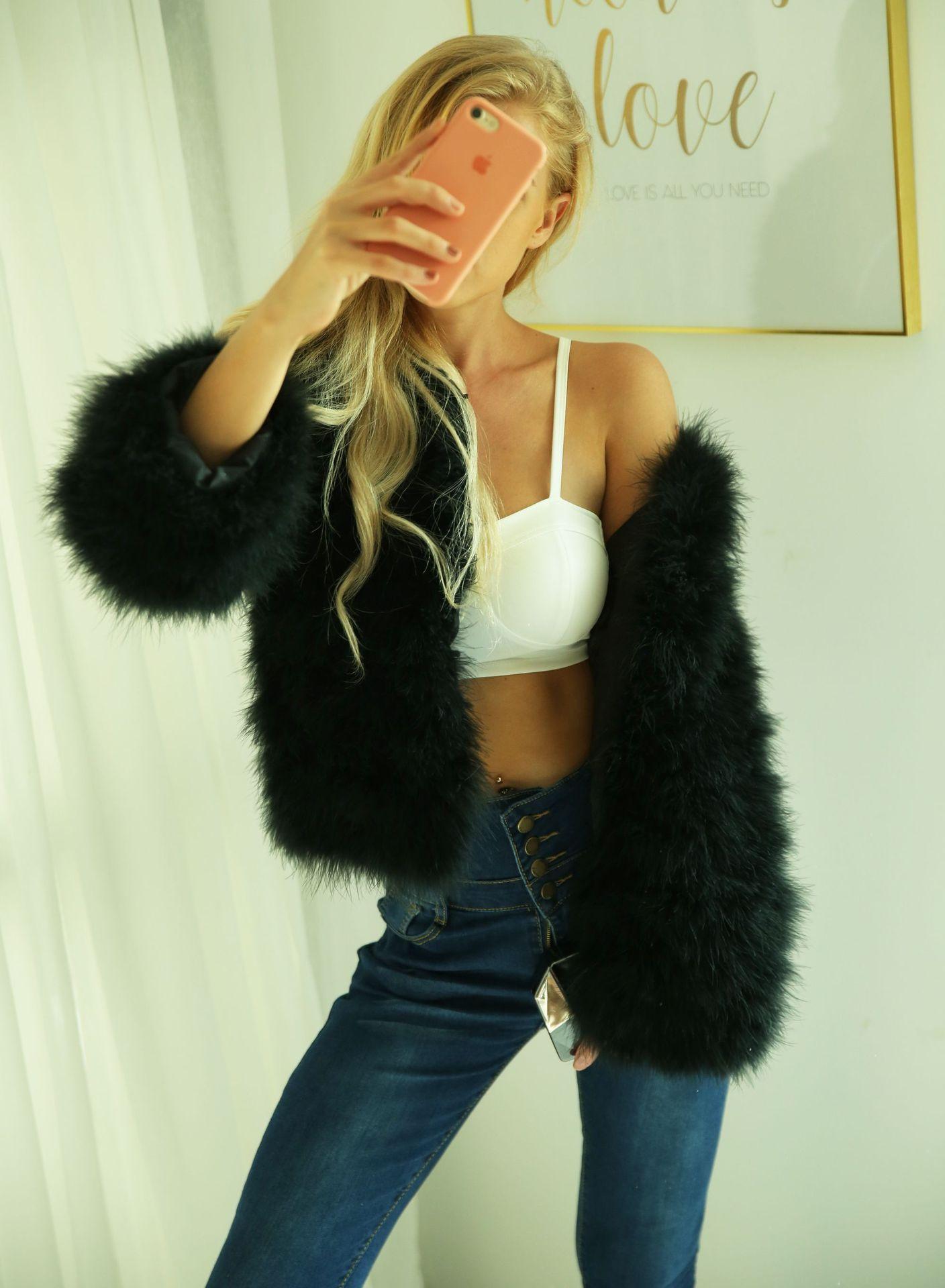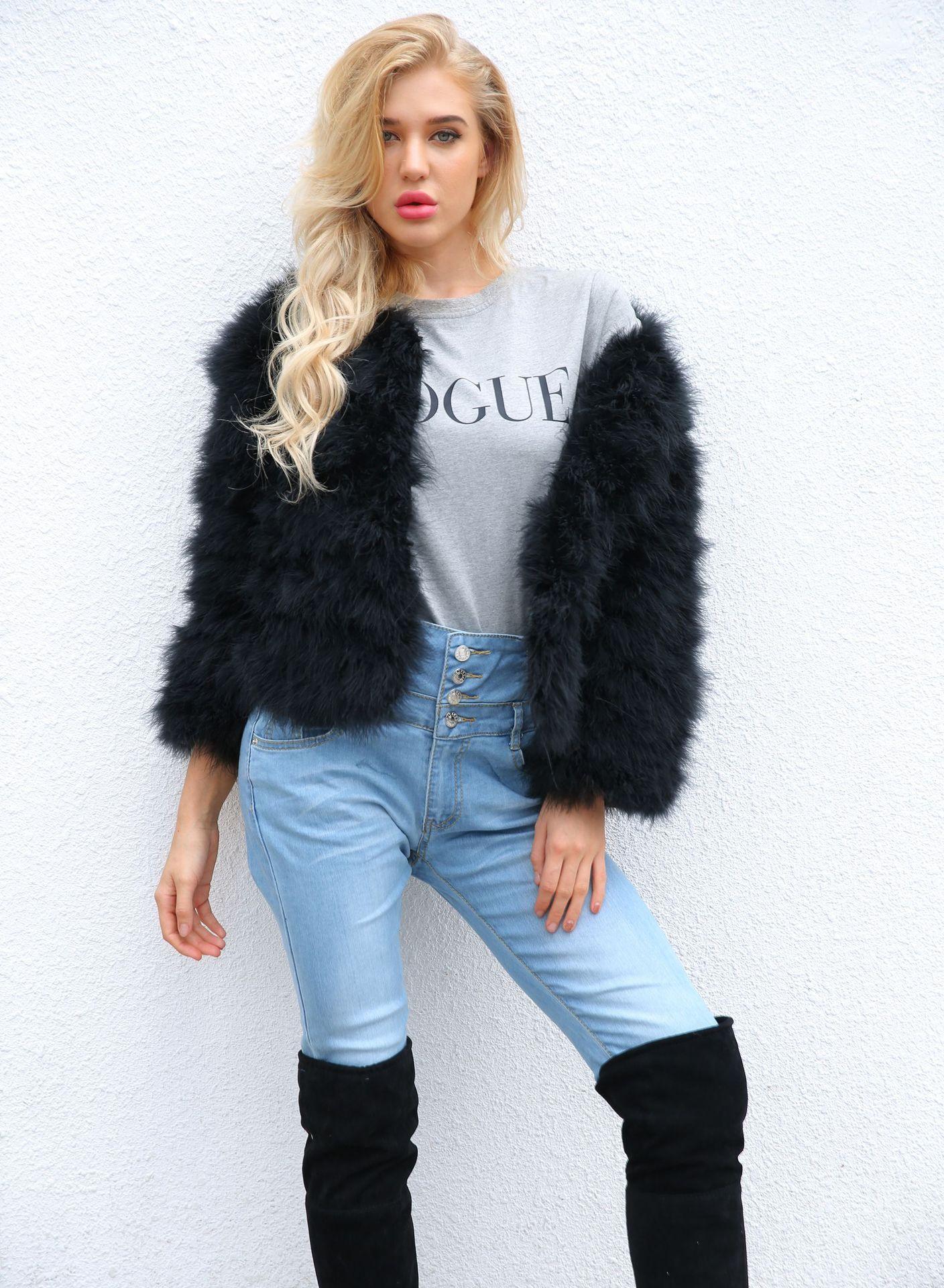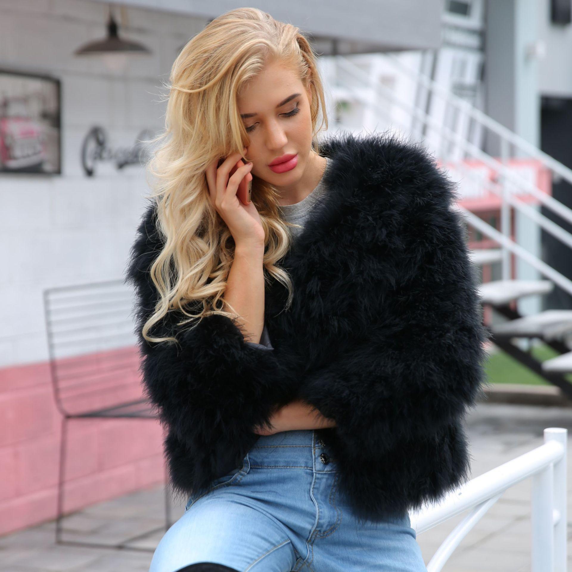 T0925 Punto Exportación Popular Ropa Casual de Exterior para Mujer Otoño e Invierno Nuevo Abrigo Corto de Imitación de Piel Pluma de Avestruz