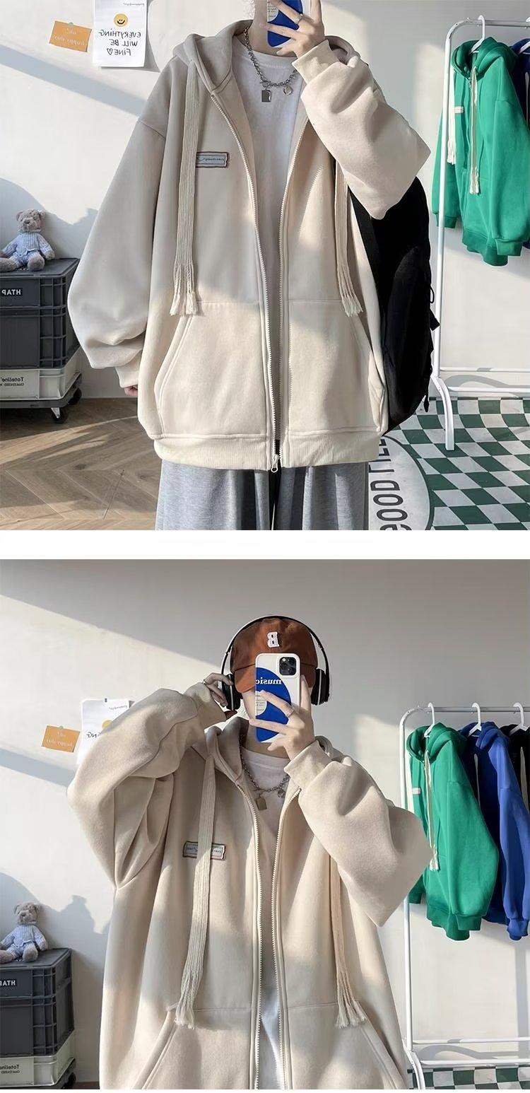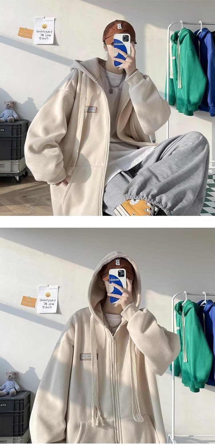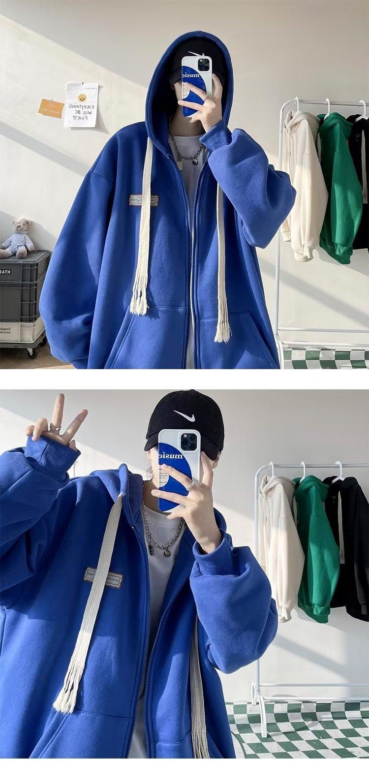 Suéter tipo cárdigan con cremallera americana para hombre, marca de moda de calle alta, chaqueta polar informal para pareja, sudadera con capucha holgada de otoño e invierno