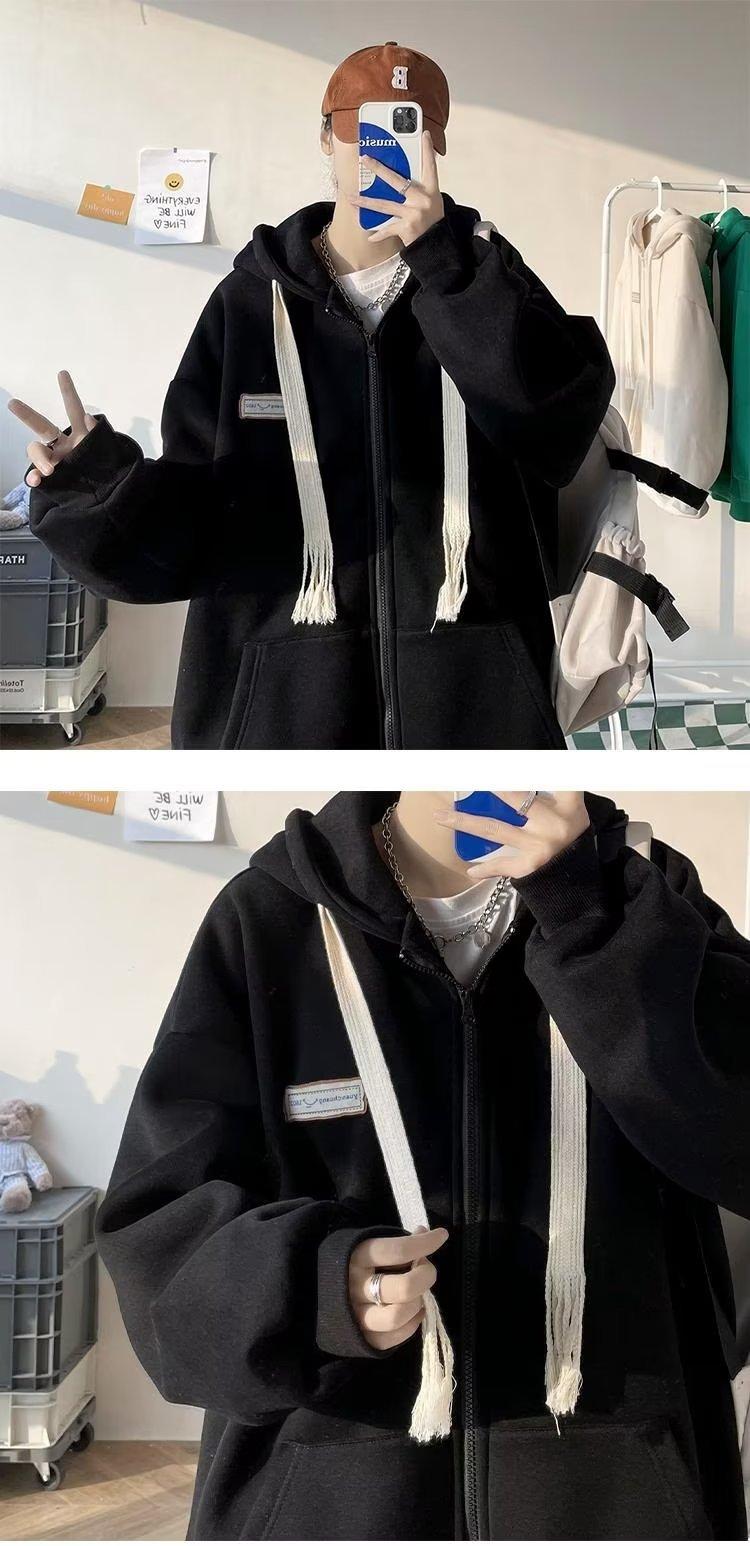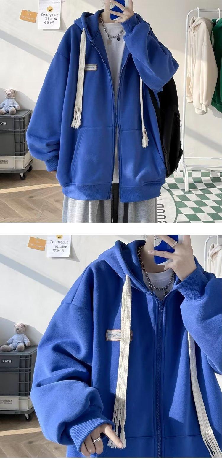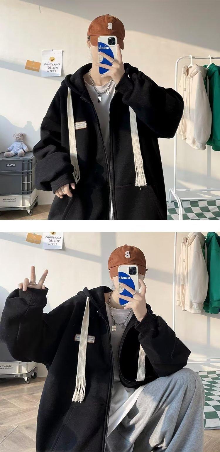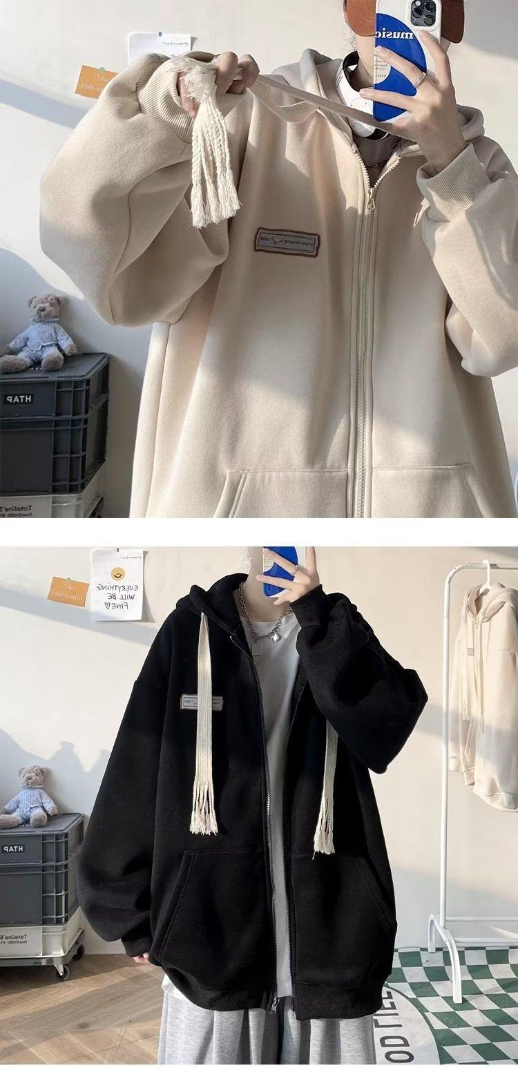 Suéter tipo cárdigan con cremallera americana para hombre, marca de moda de calle alta, chaqueta polar informal para pareja, sudadera con capucha holgada de otoño e invierno