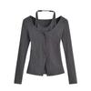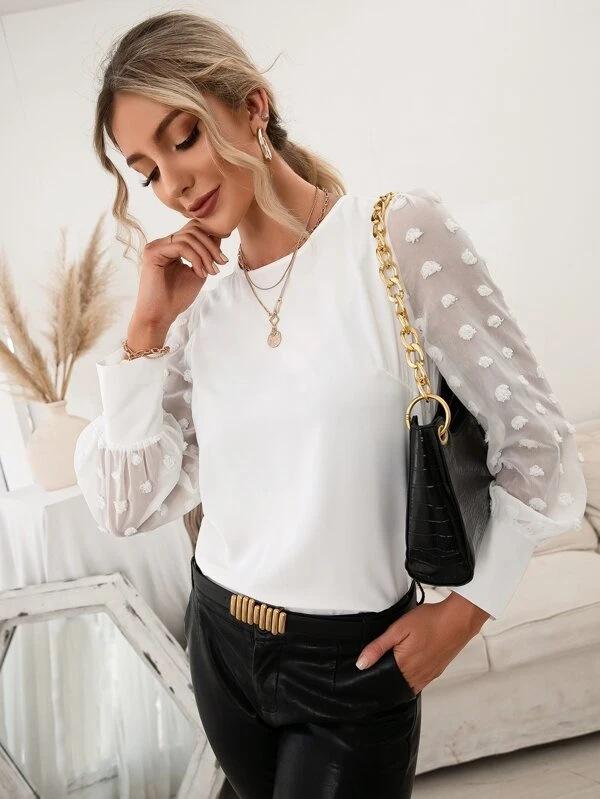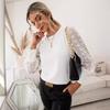 2023 Deseo de mujer Amazon ebay otoño e invierno Nuevo costuras cuello redondo color sólido jacquard lunares camisa manga larga ahora