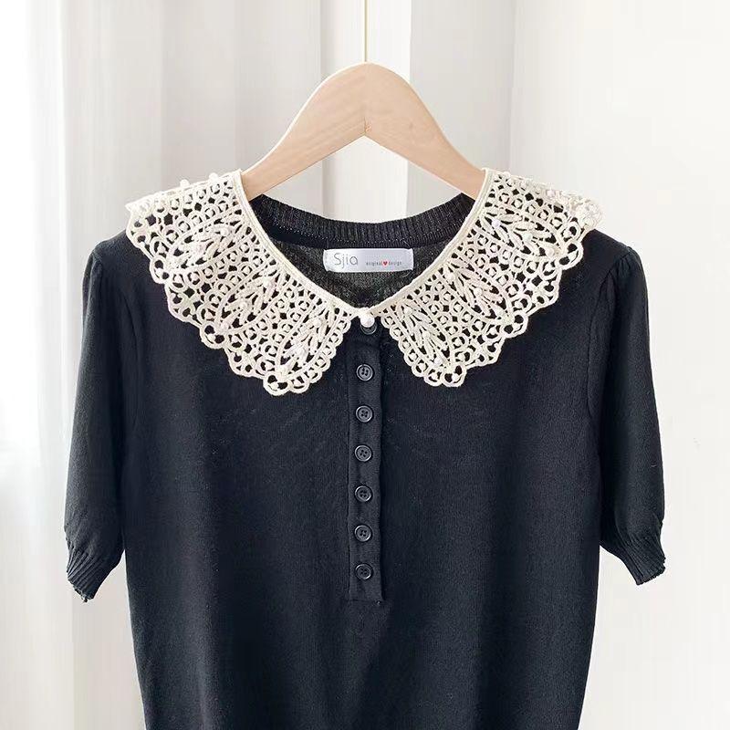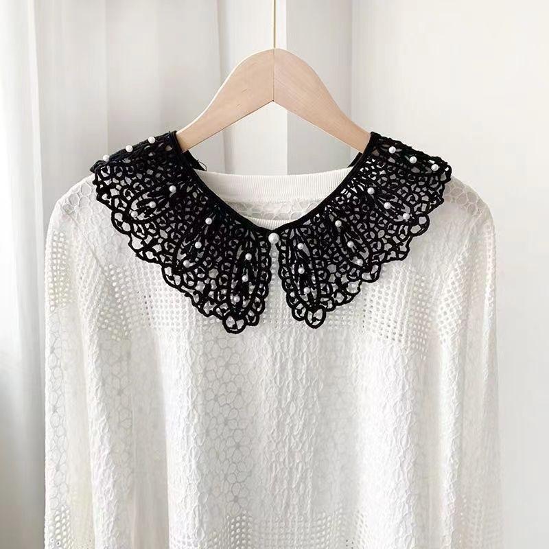 Encaje con cuentas hueco fino reductor de edad estilo coreano Cuello falso Verano Protector solar Chal pequeño Bufanda para mujer combinable con todo