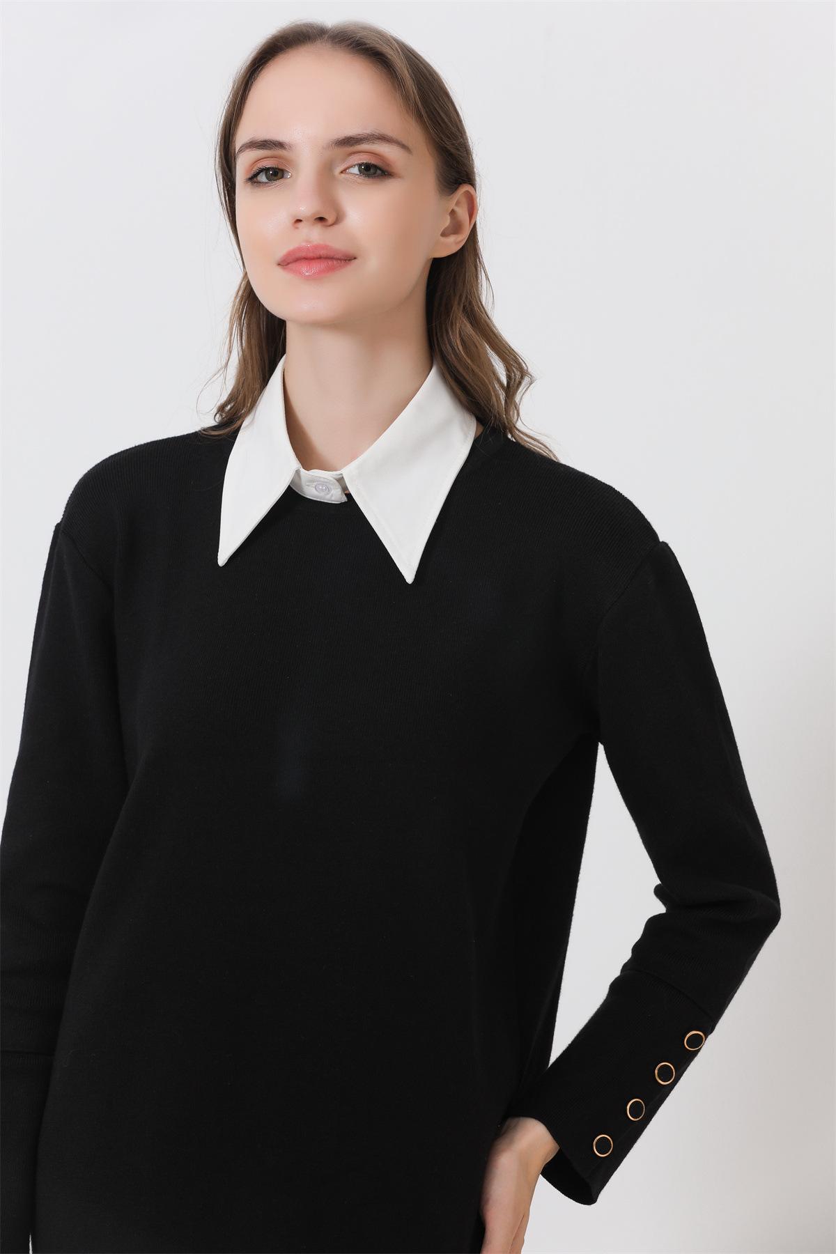 Estilo Coreano Chifón Versátil Moderno Cuello Falso Decorativo Cuello de Camisa Cuello Individual Cuello Falso para Mujer Blanco y Negro Transfronterizo