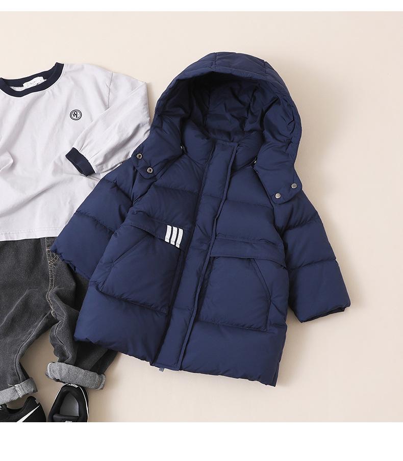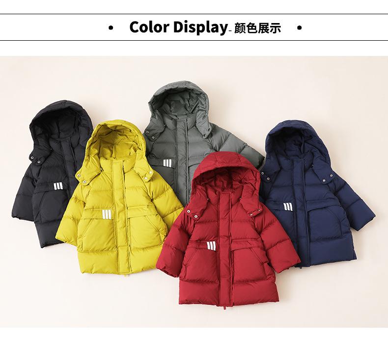Chaqueta de plumón larga para niños, invierno 2024, nueva chaqueta de plumón gruesa para niños y niñas, chaqueta de terciopelo 90, 23049