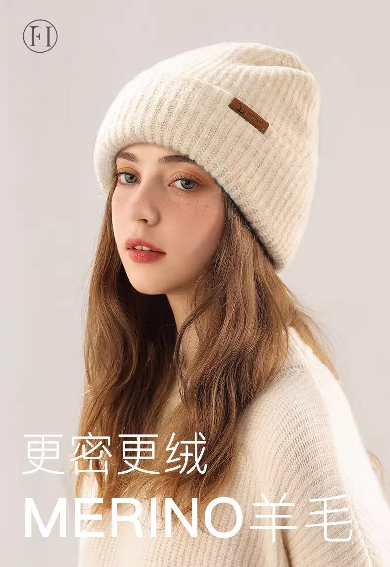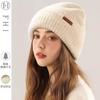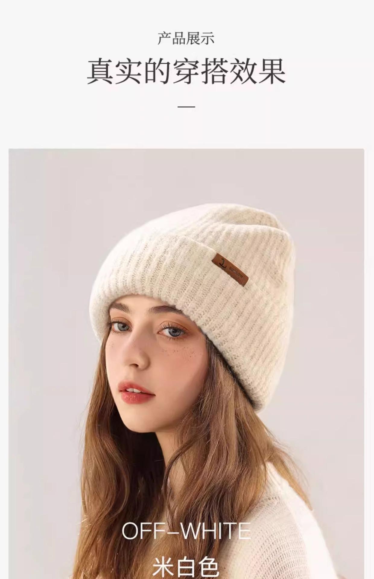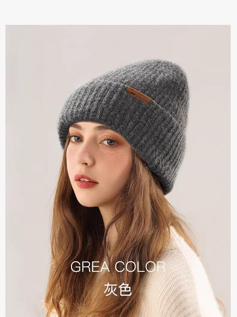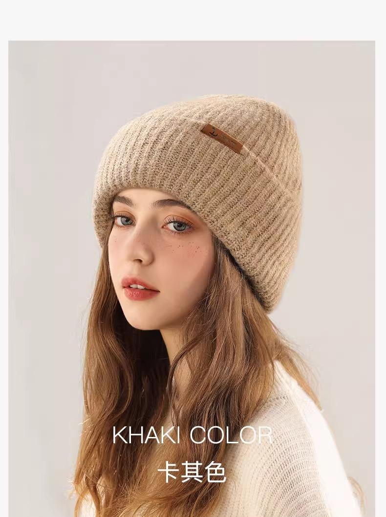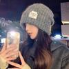 Gorro de lana para mujer, de otoño e invierno, grueso y cálido, de punto, grande, con cara de Wai, pequeño, resistente al frío y combinable.